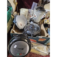 GLASS AND CERAMICS JOB LOT including chef utensil holder, dessert bowl and dishes, decorated wine glasses, soup bowls and much more
