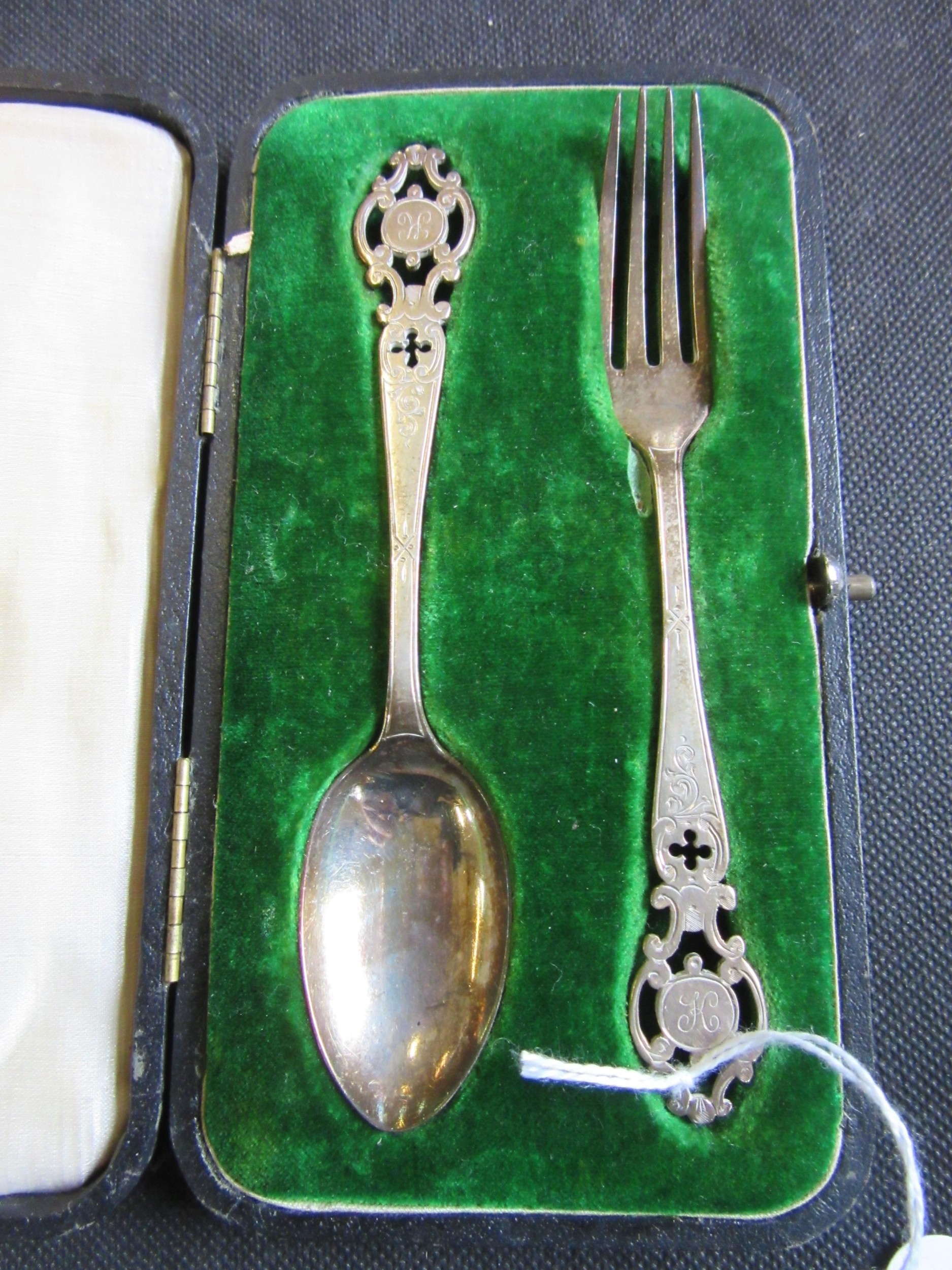 CASED SILVER CHRISTENING SPOON AND FORK - 43G TOTAL