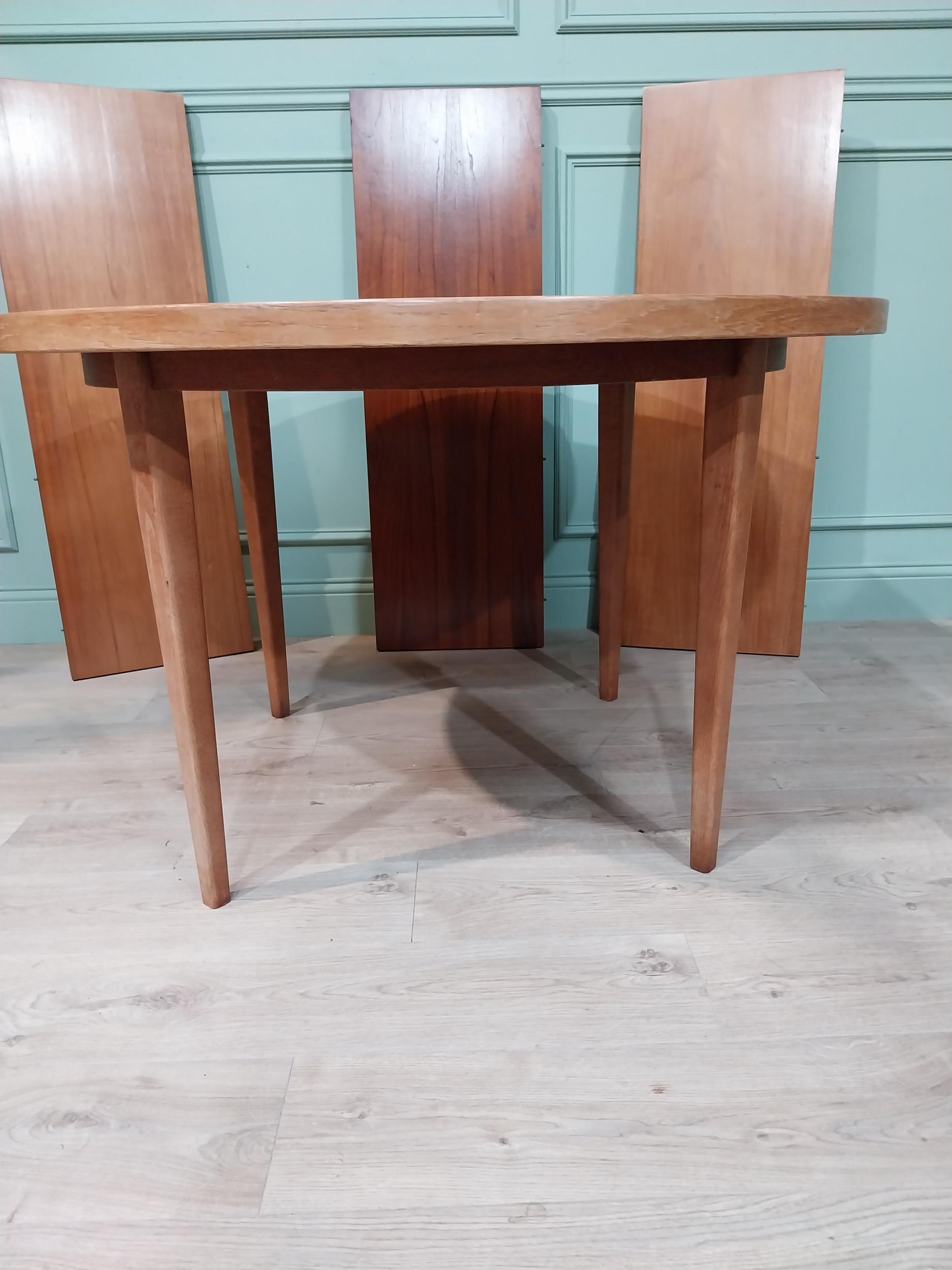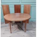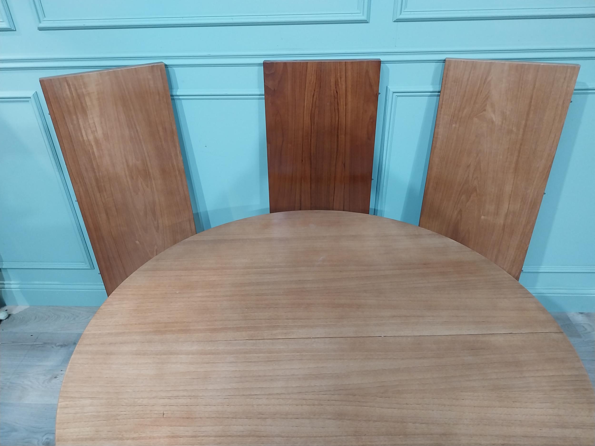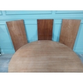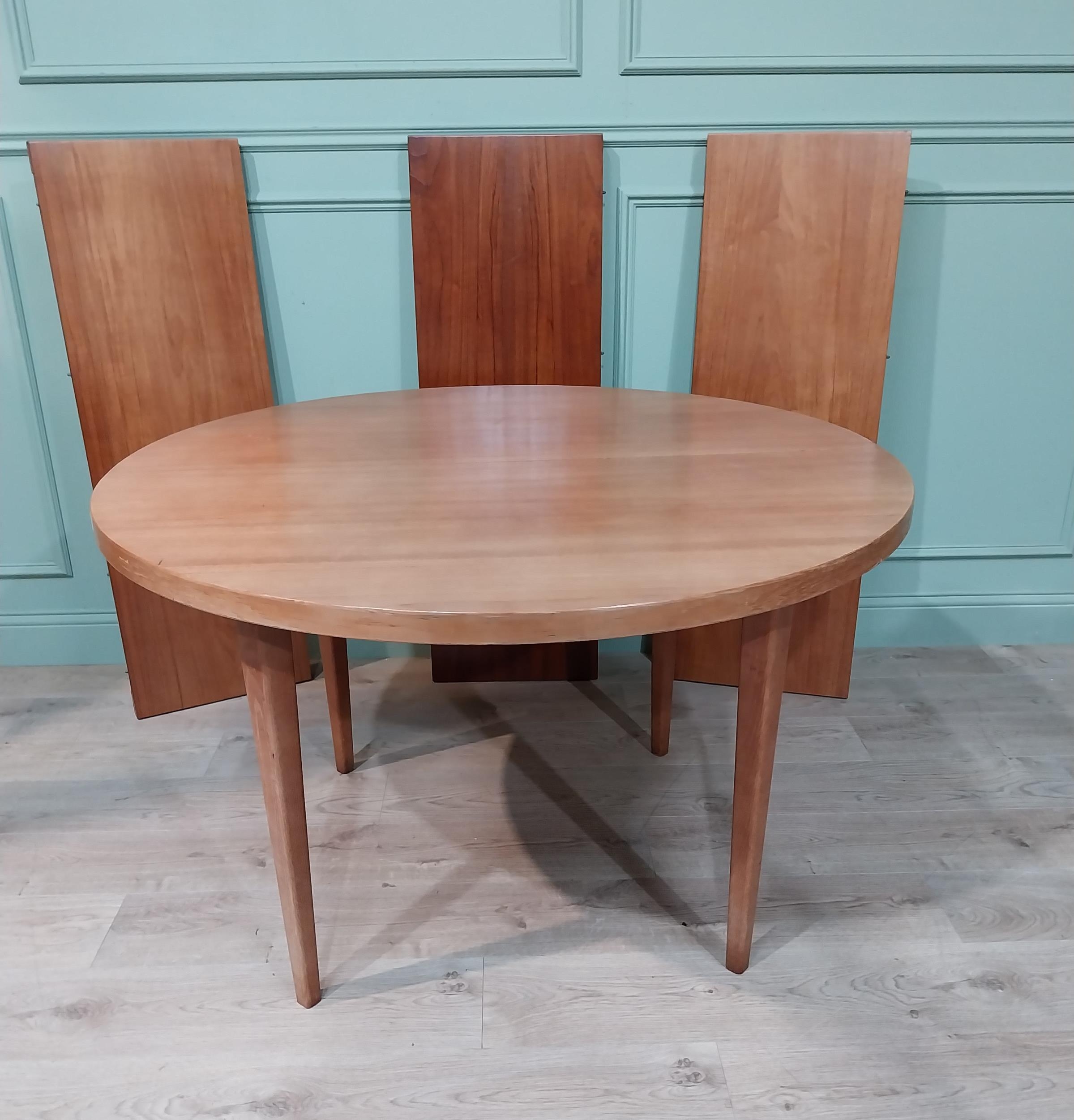 Mid century dining table on square tapered legs. {73 cm H x 240 cm Dia} fully extended and {73 cm H x 120 cm W}.