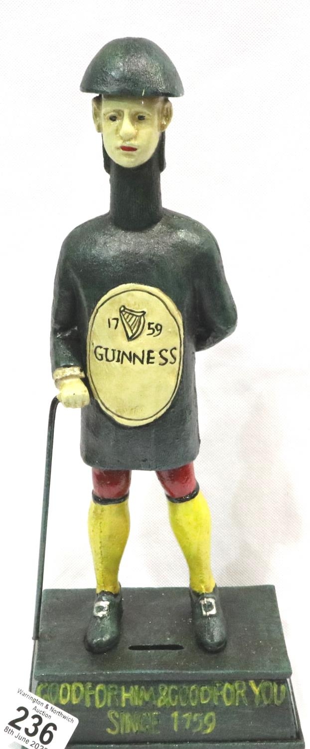 Large cast iron novelty Guinness figural money box, H: 30 cm. P&P Group 2 (£18+VAT for the first lot and £3+VAT for subsequent lots)