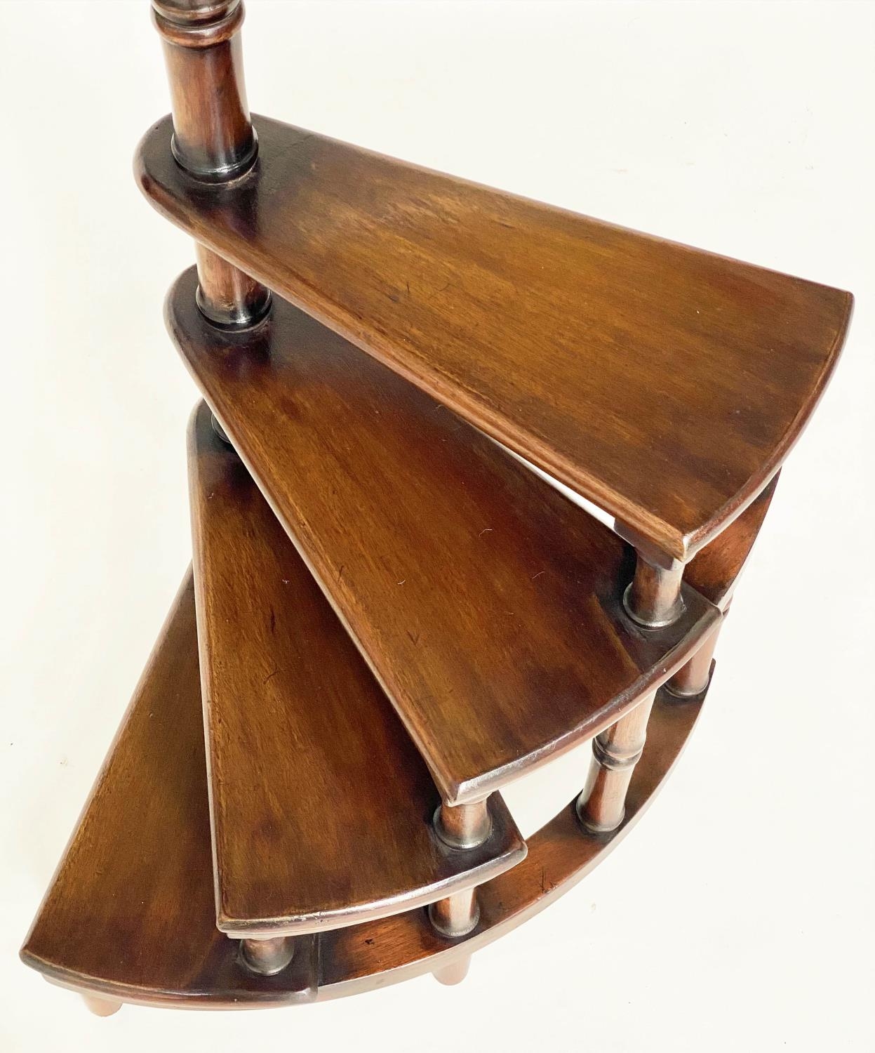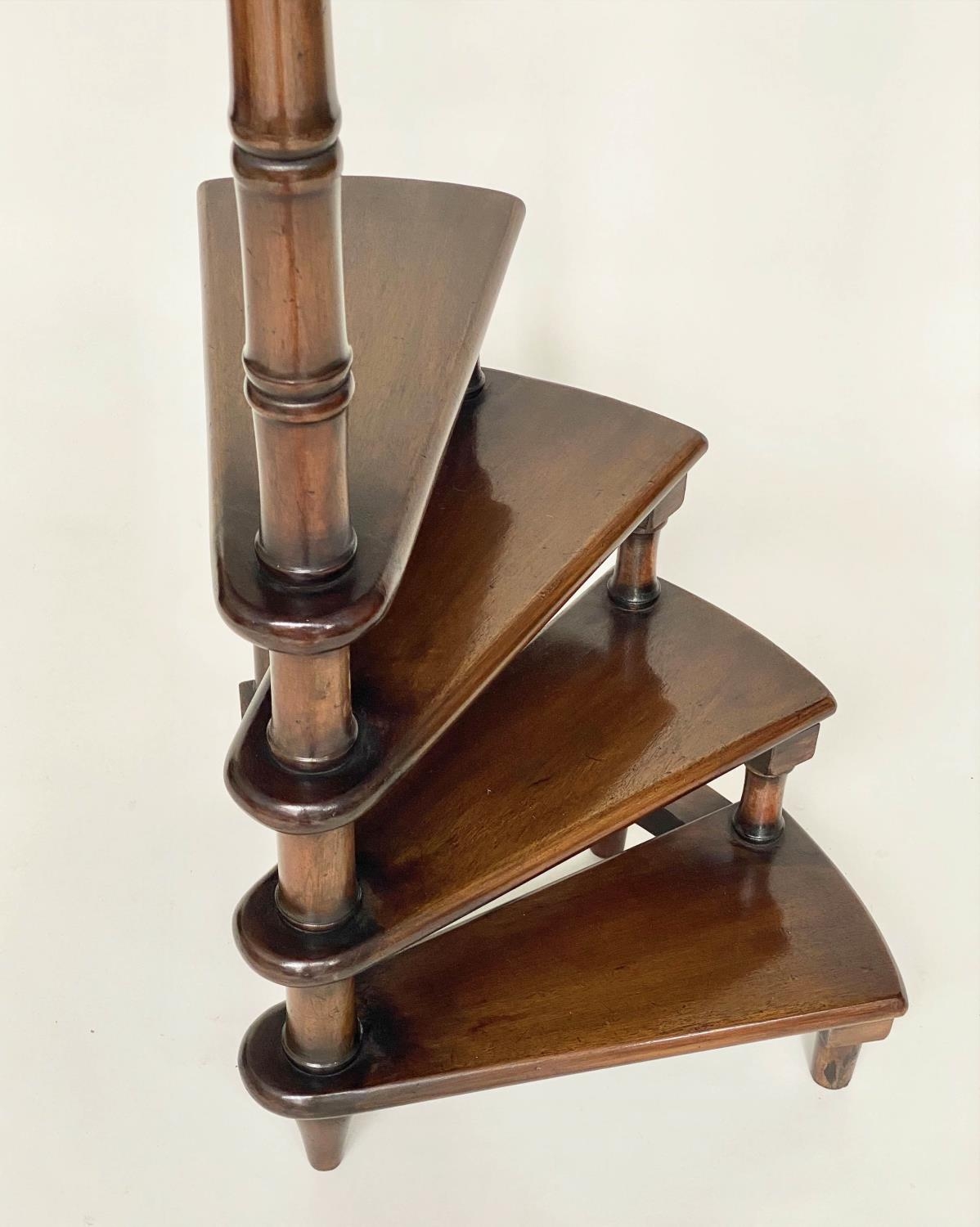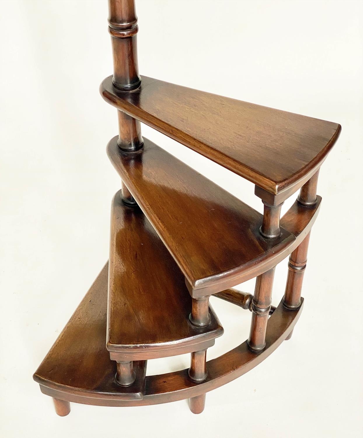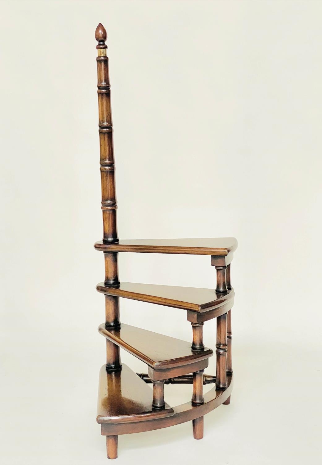 LIBRARY STEPS, a set, Georgian style mahogany with four spiral steps and pole, 114cm H.