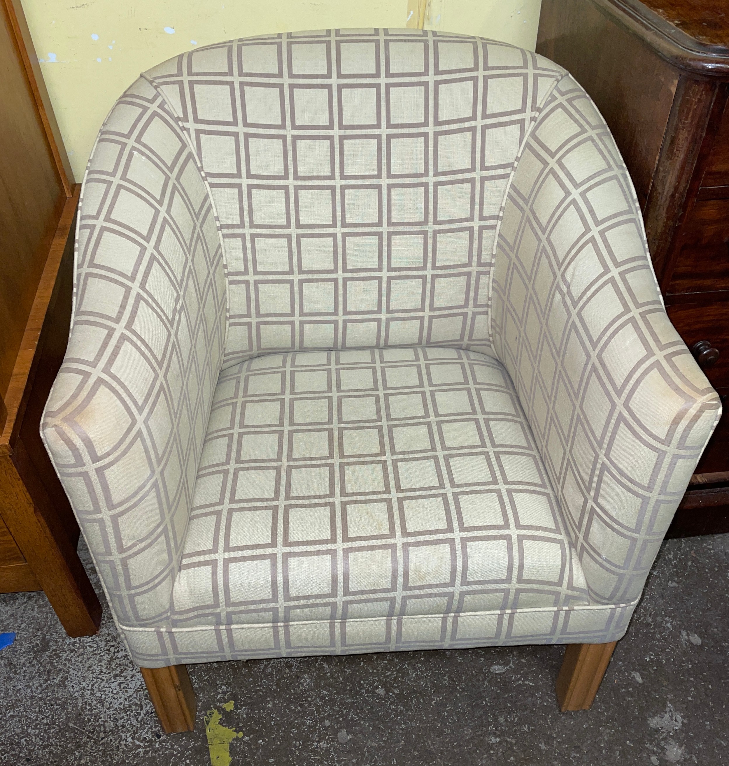 GEOMETRIC PATTERN FABRIC UPHOLSTERED TUB ARMCHAIR