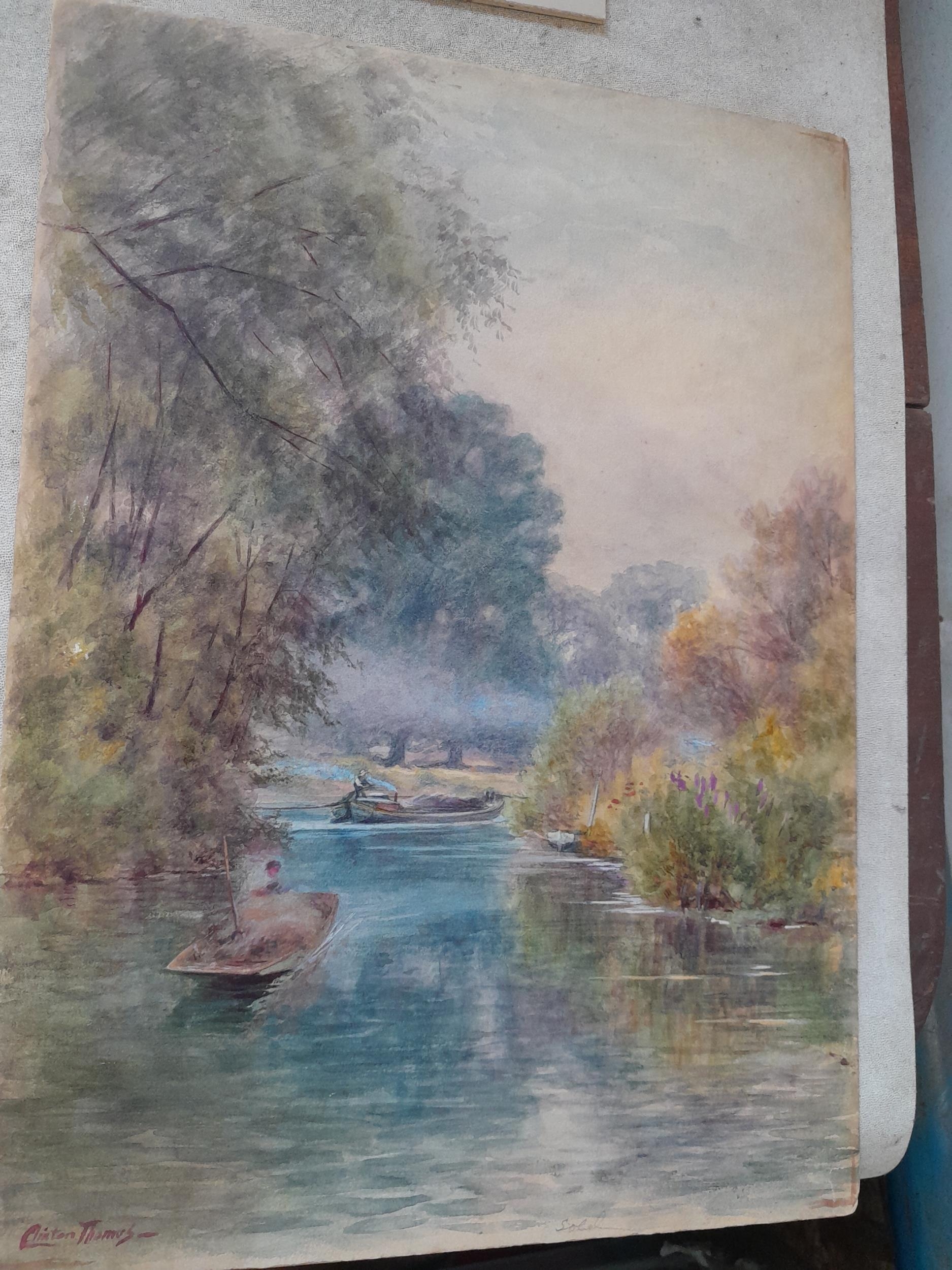 3 x early 20th century watercolours : 1 x Clinton Thomas river scene
