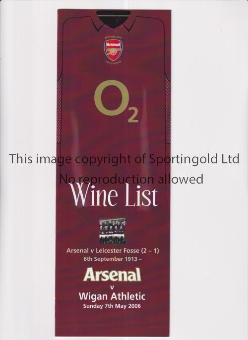 ARSENAL V WIGAN ATHLETIC 2006 / FINAL LEAGUE MATCH AT HIGHBURY Wine List for the match at Highbury 7/5/2006. Good