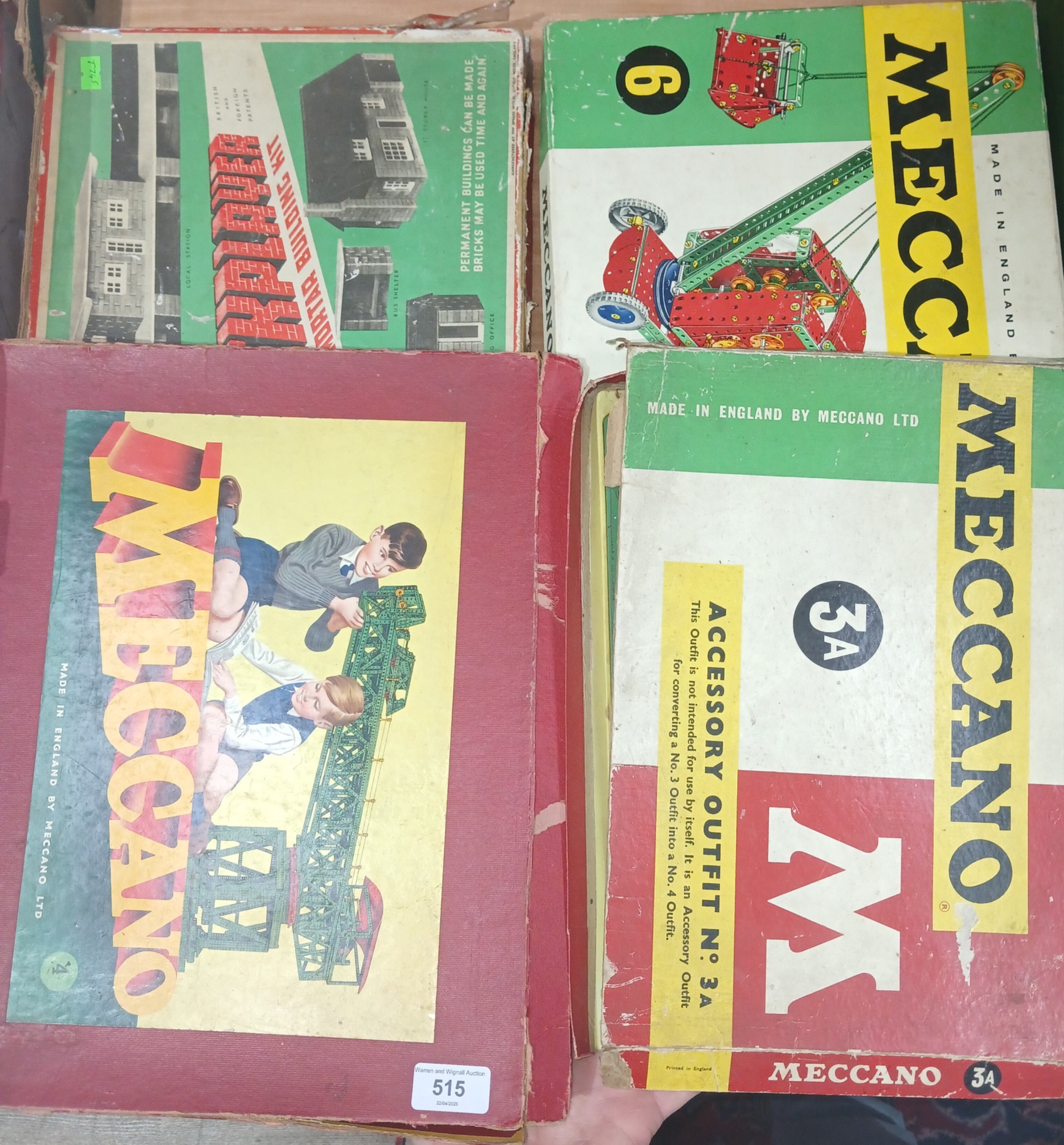 Three Meccano sets; 3A, 4 and 6, together with a Brickplayer set.