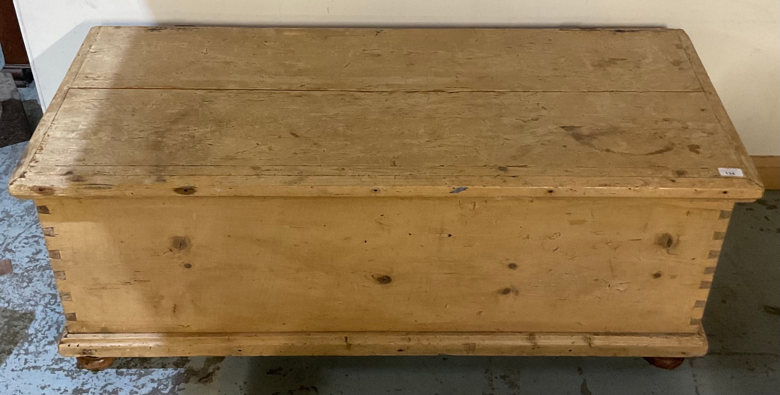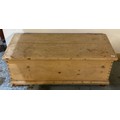 19th century pin blanket box on bun feet, interior fitted with candle box. W126cm
