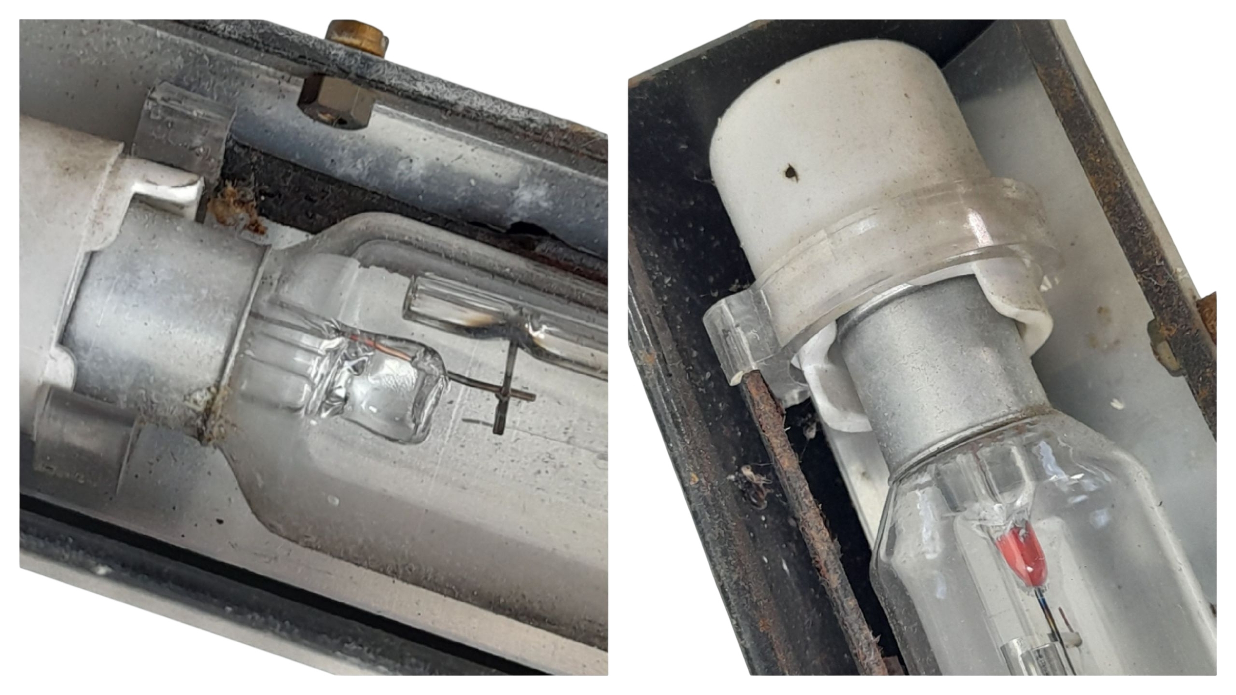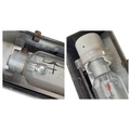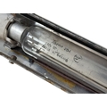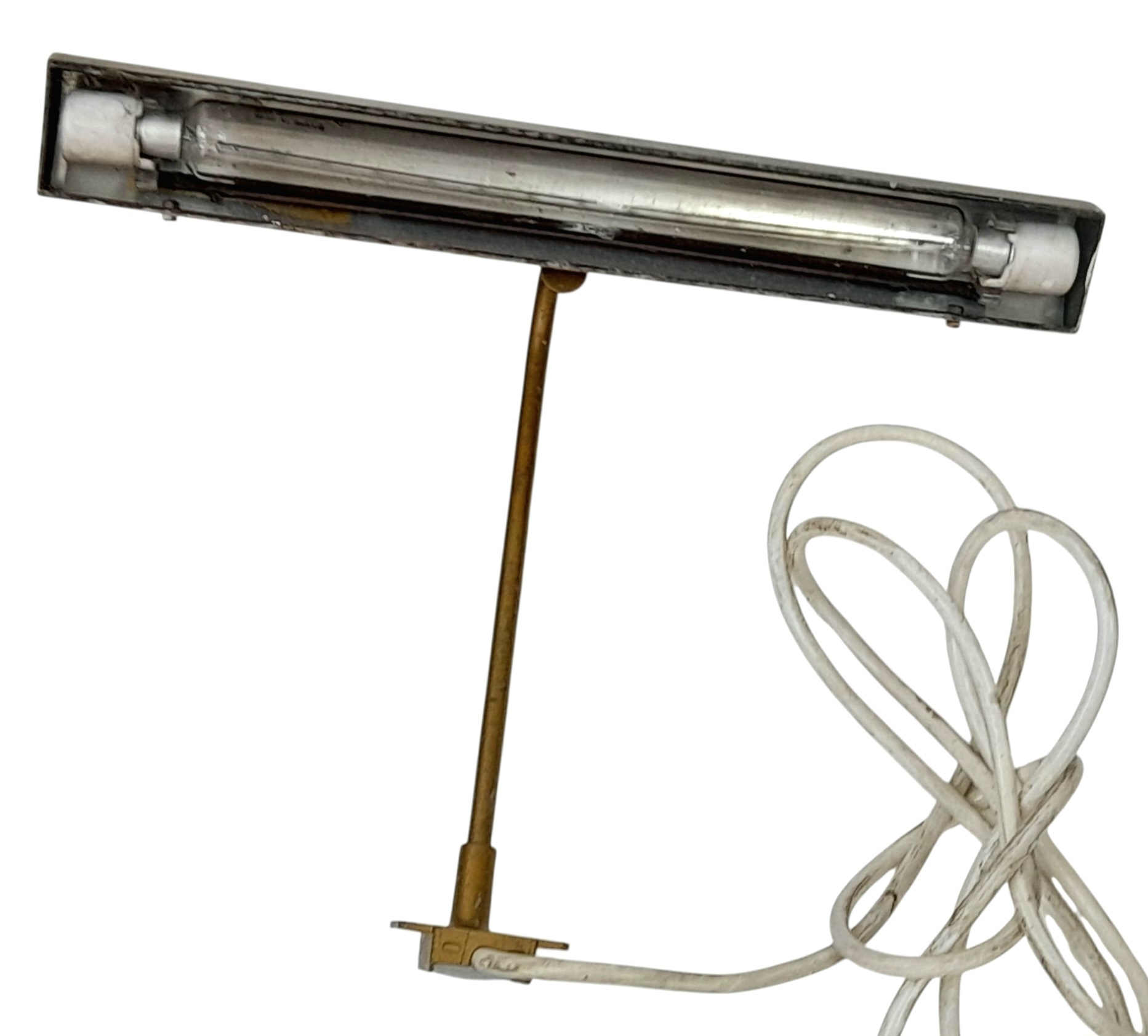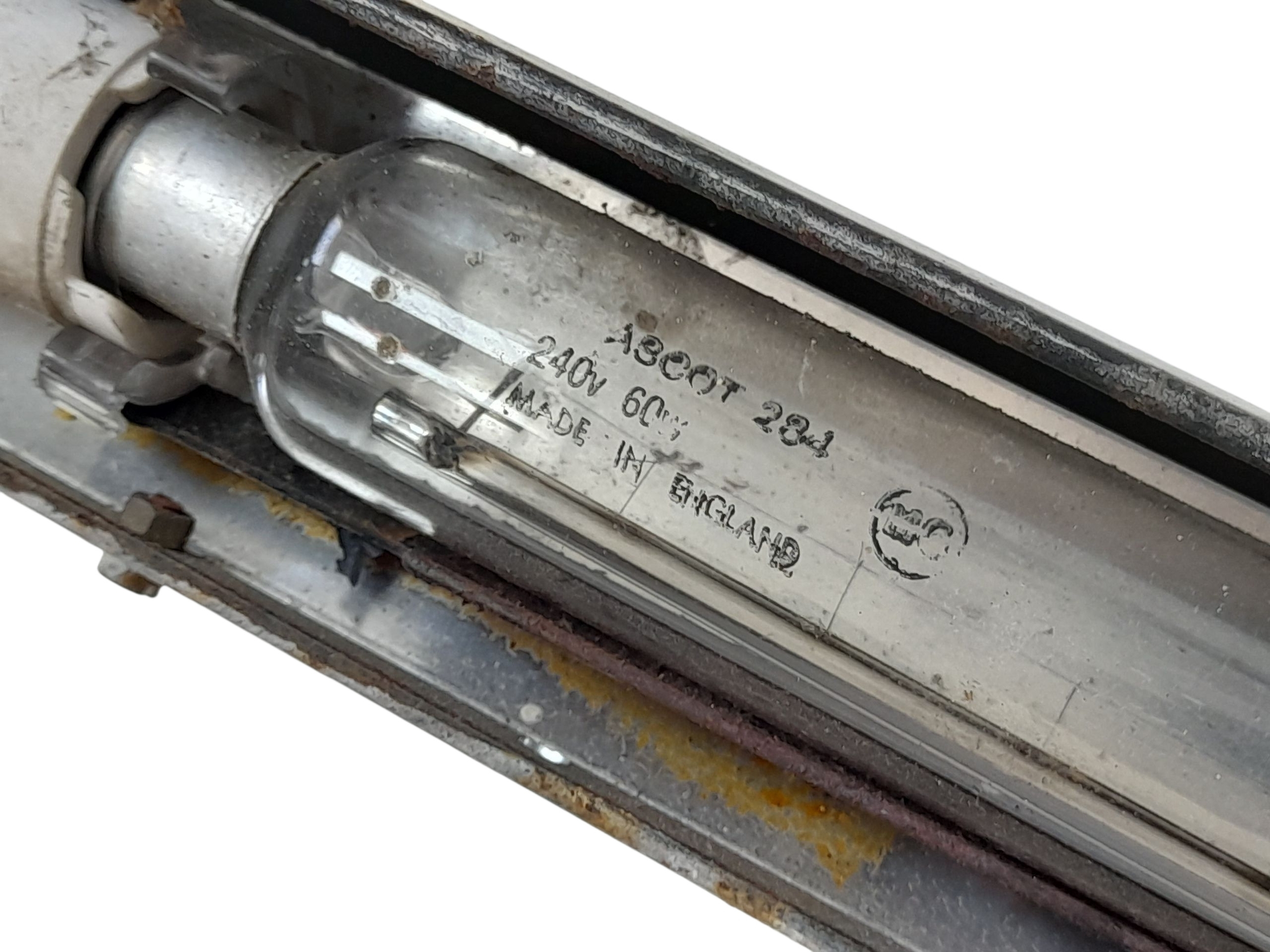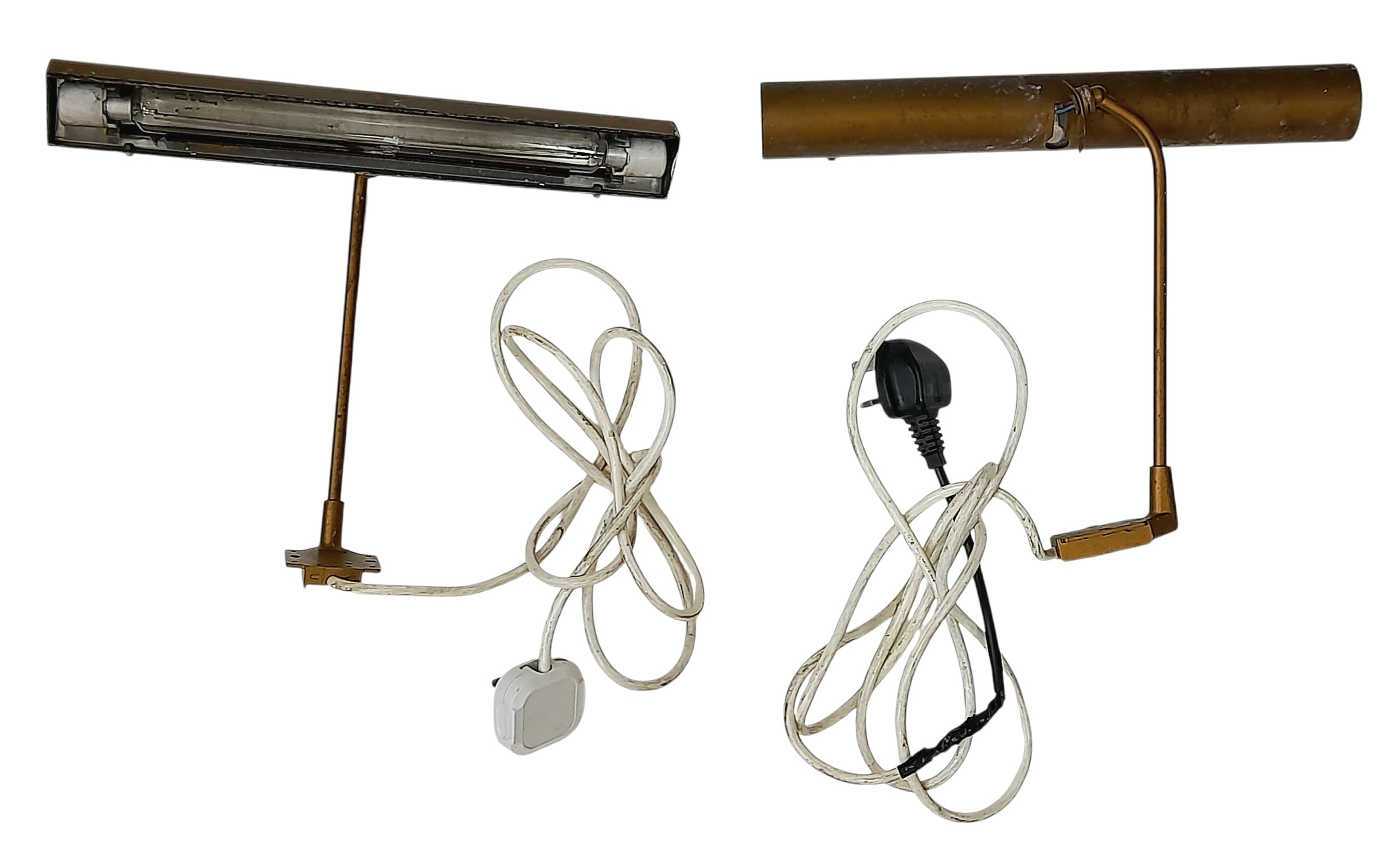 Two vintage wall mounted industrial lights. Both work but will need pat testing. 28cm long. 33cm wide. Please see photos.