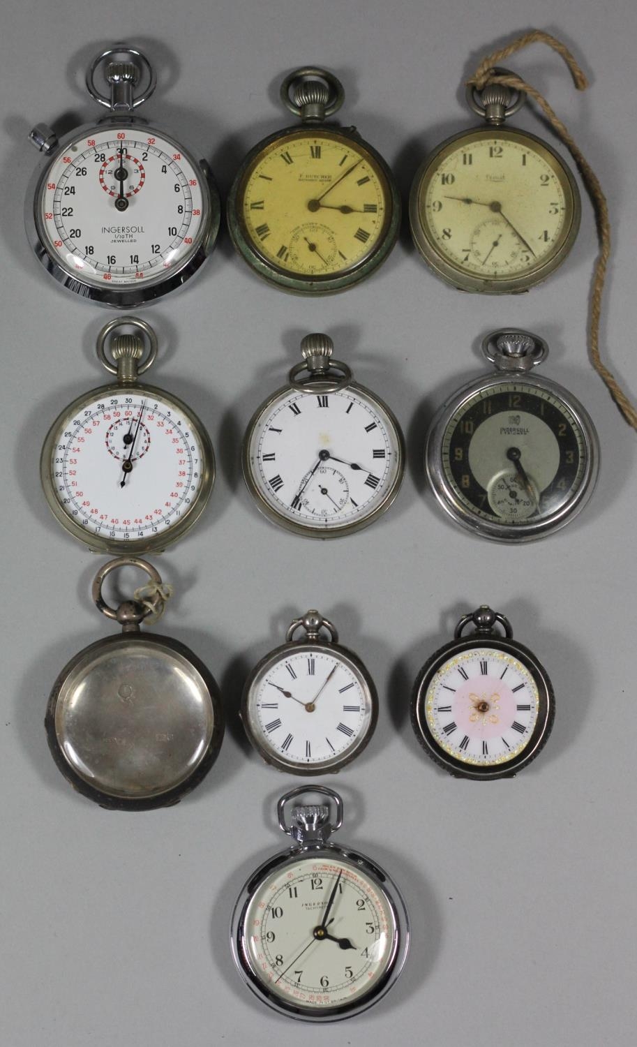 A Military issue stop watch, Broad Arrow, T.P., 1/10, 3103/60, 6B/9101002, two Ingersoll stop watches and other watches