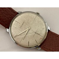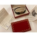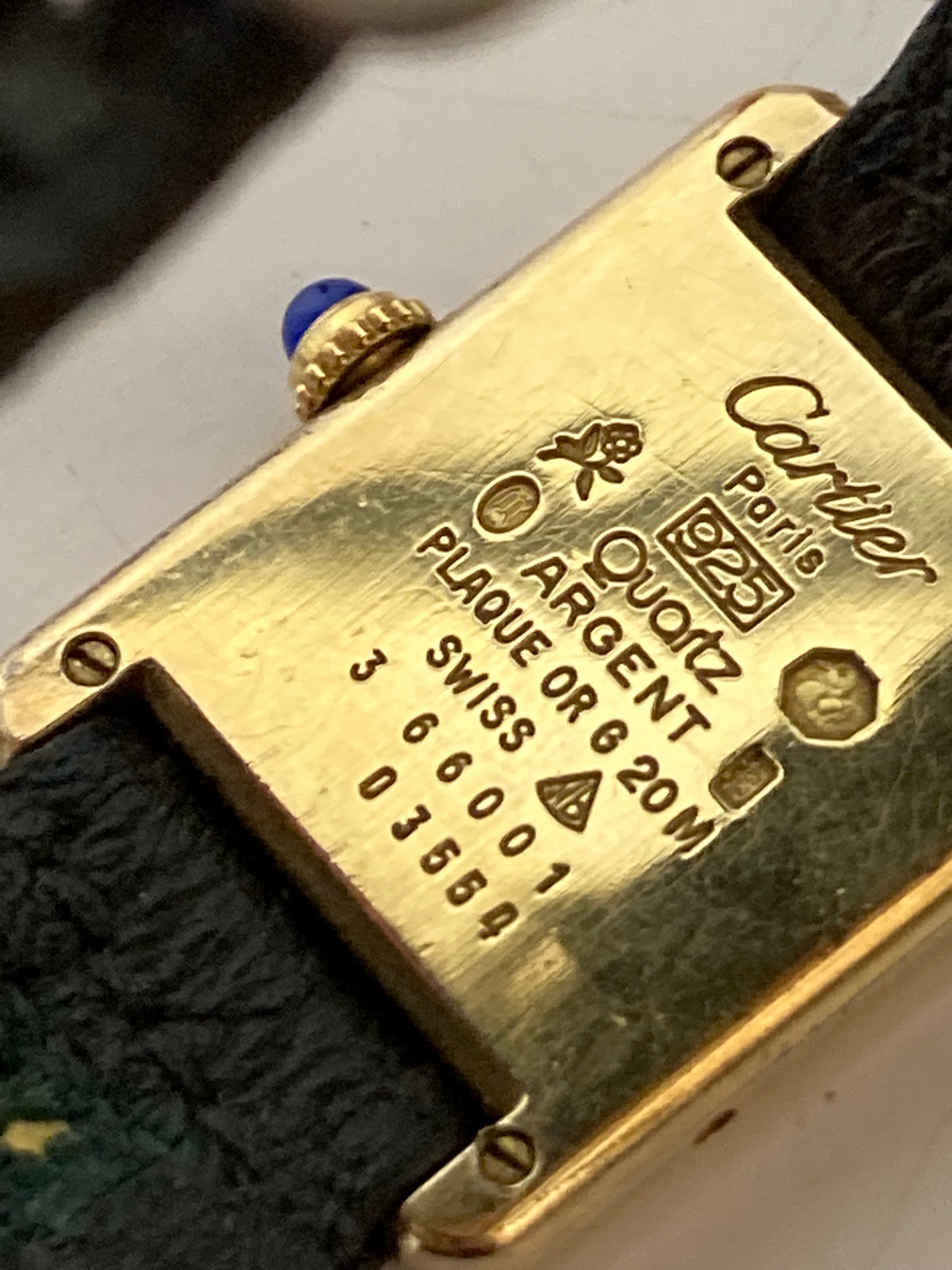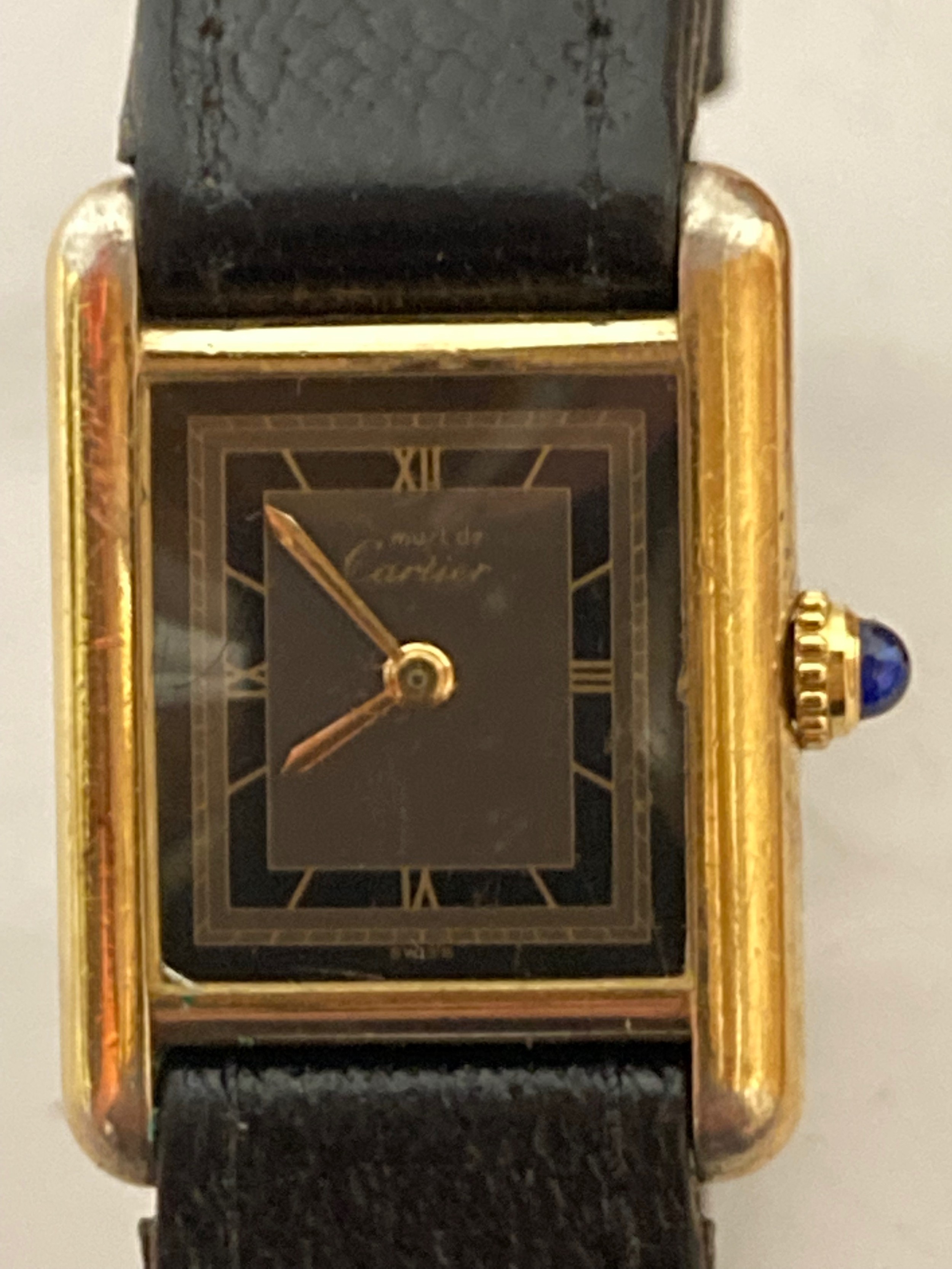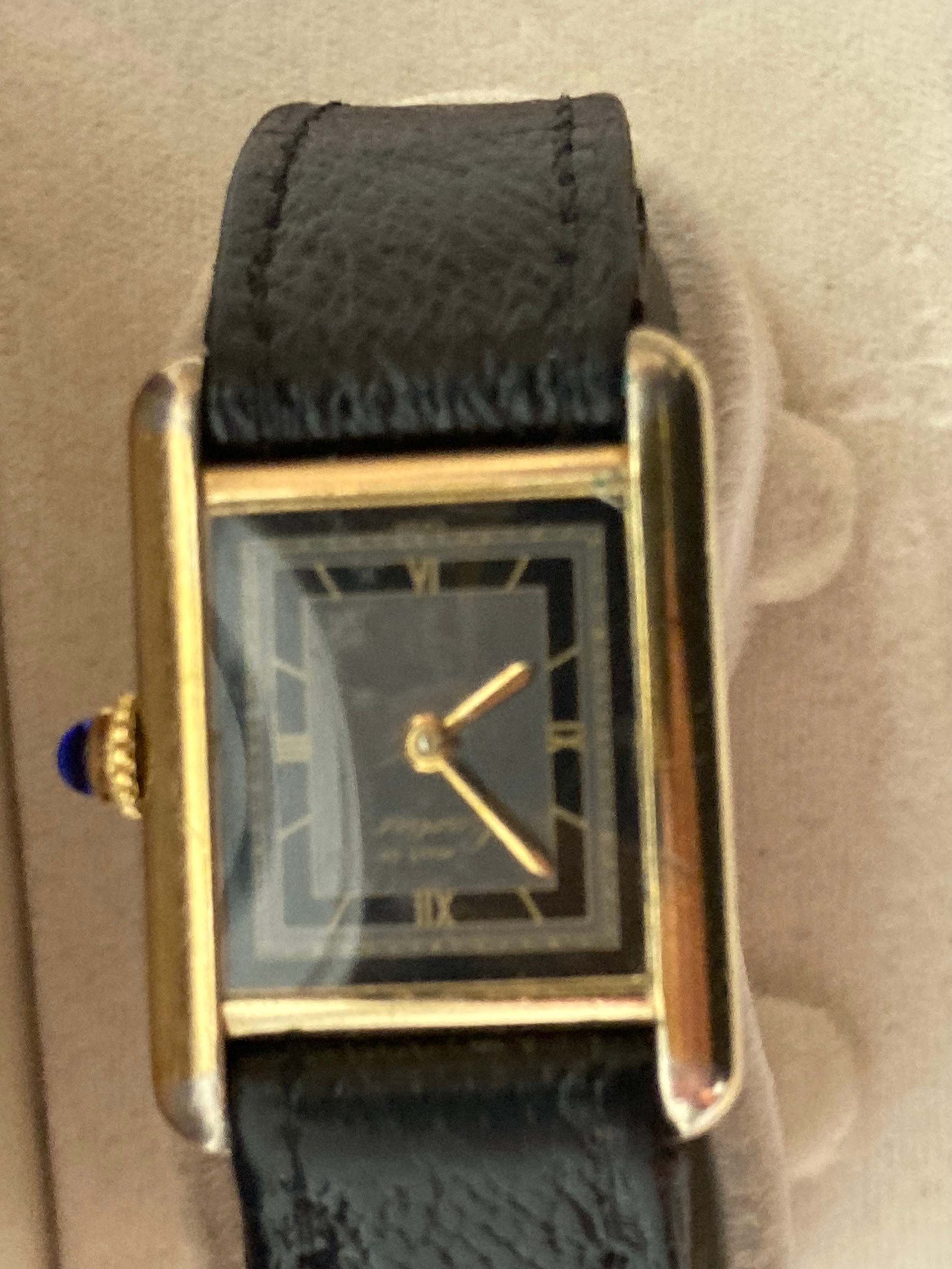 Ladies Wristwatch, an electroplated Cartier movement on a leather strap, boxed with accompanying documentation