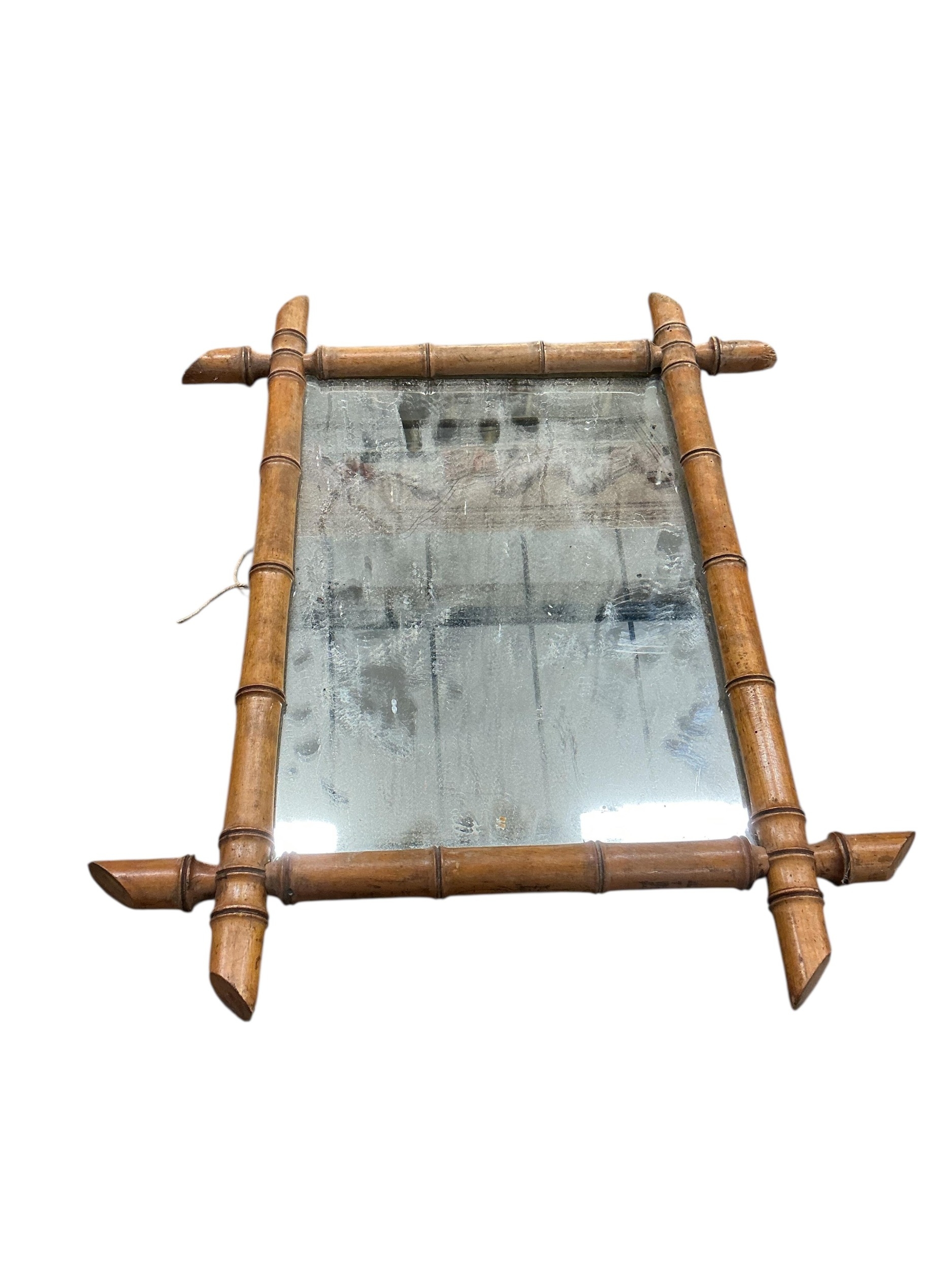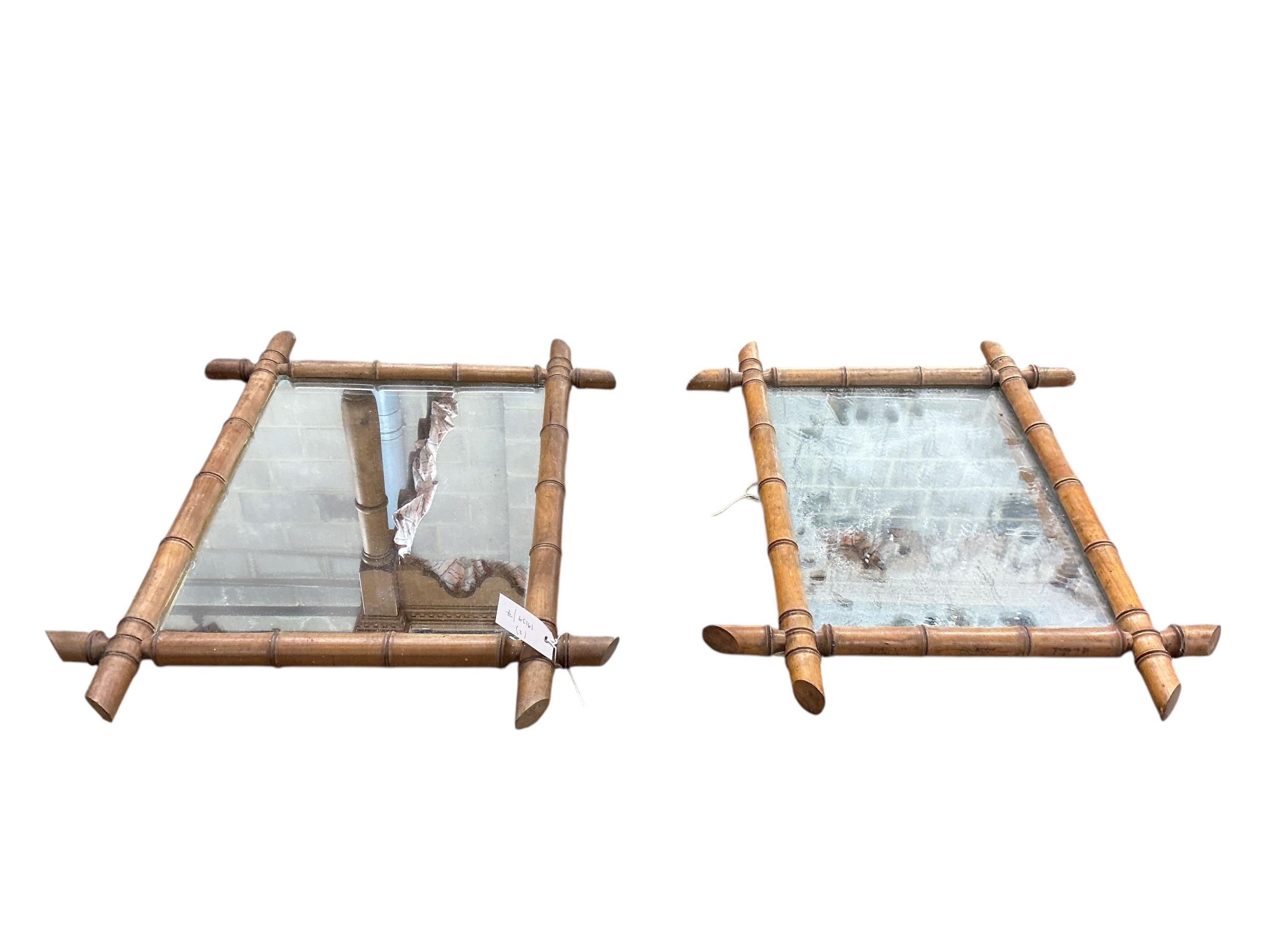 Two French faux bamboo wall mirrors, larger width 53cm, height 65cm