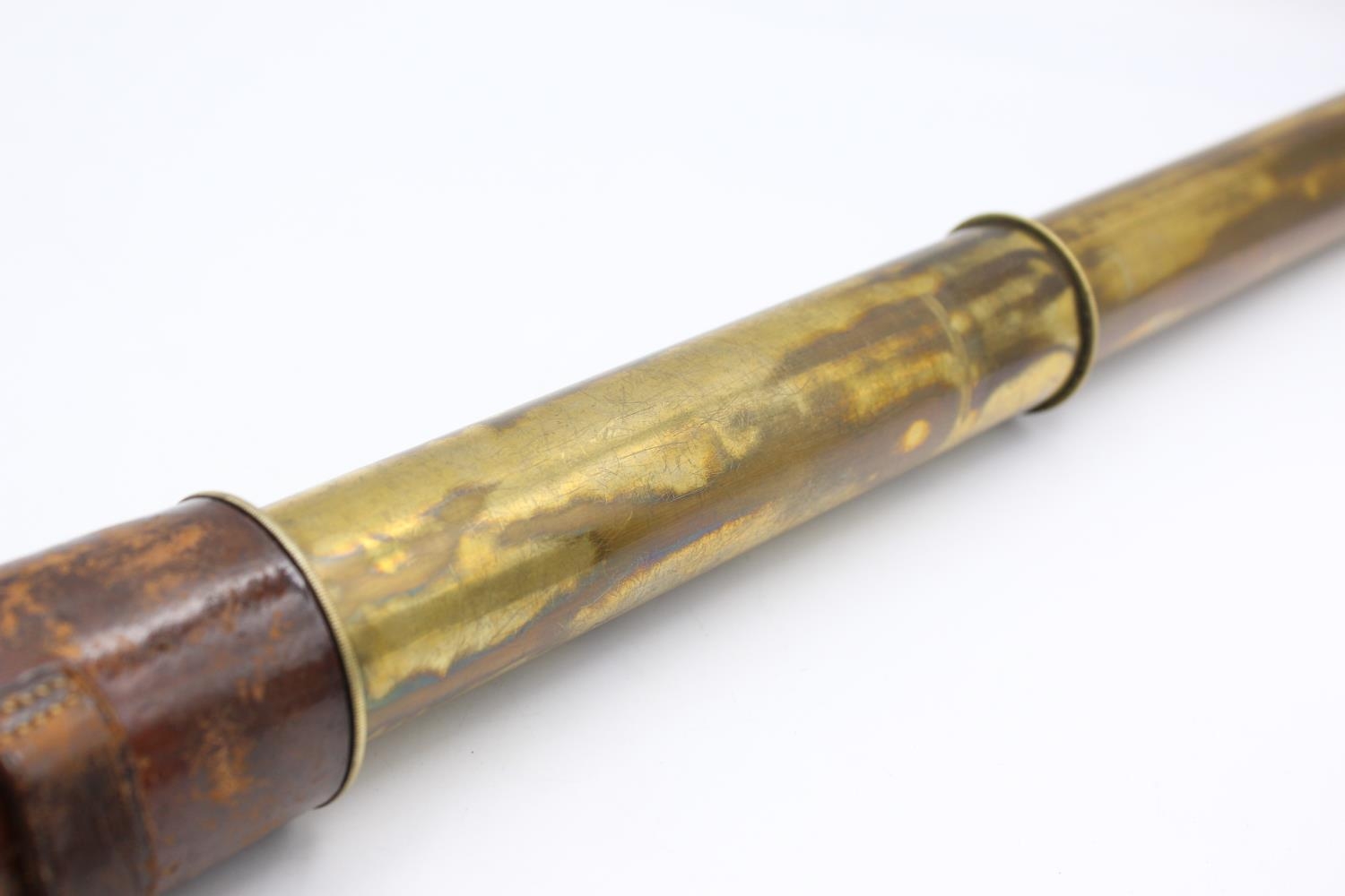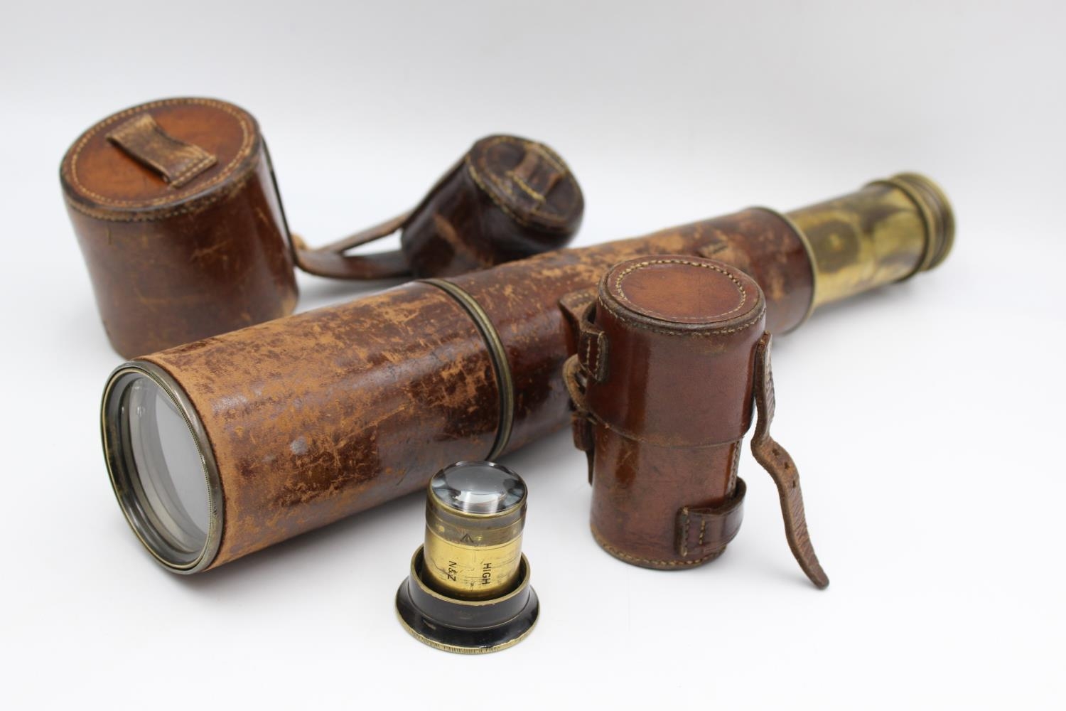 WW1 1914 Dated 3-Draw Military Brass TELESCOPE w/ Leather Case, Spare Lens