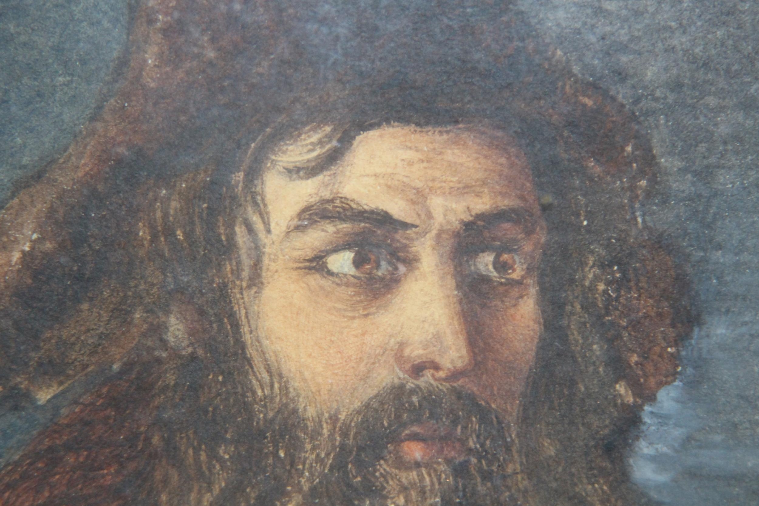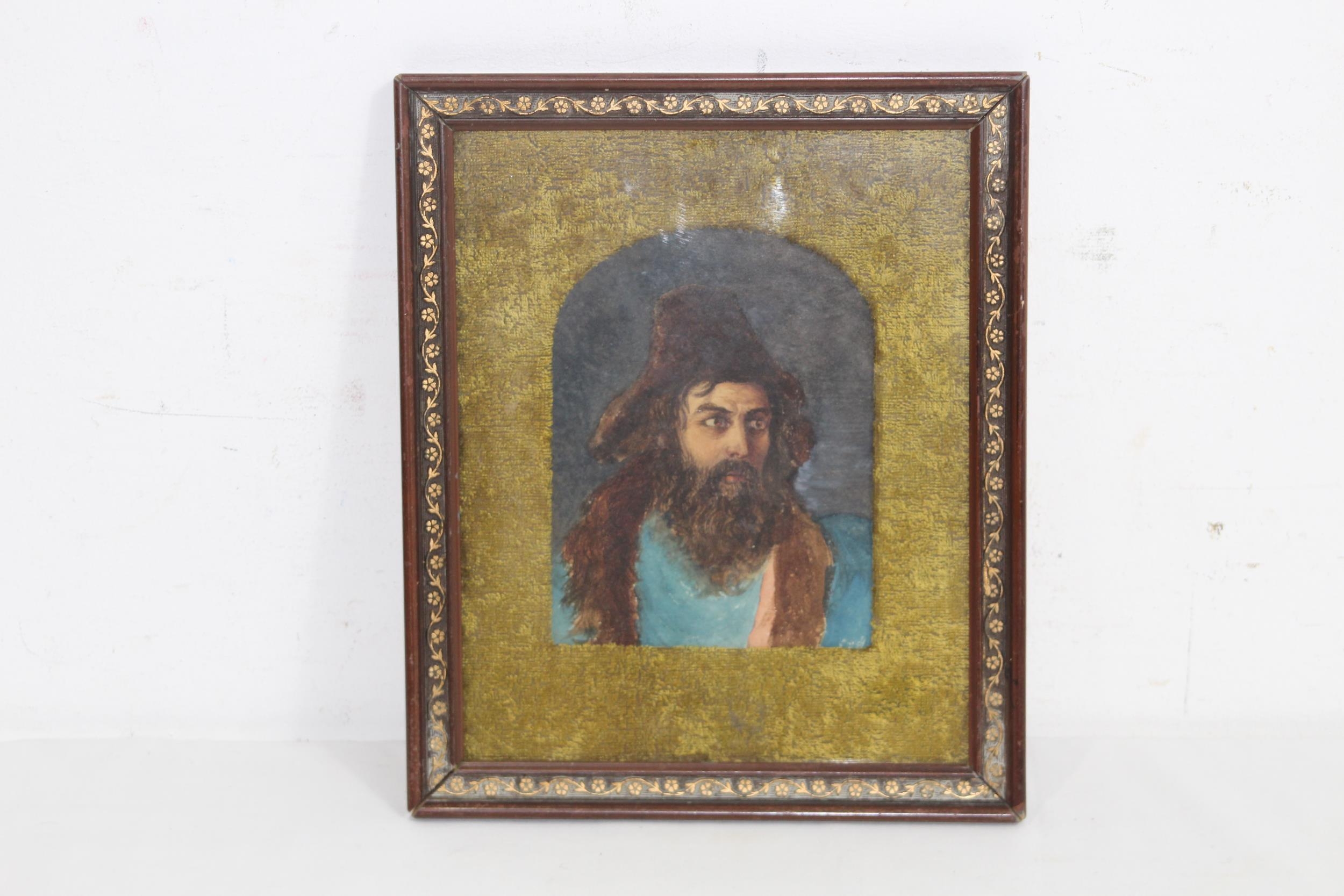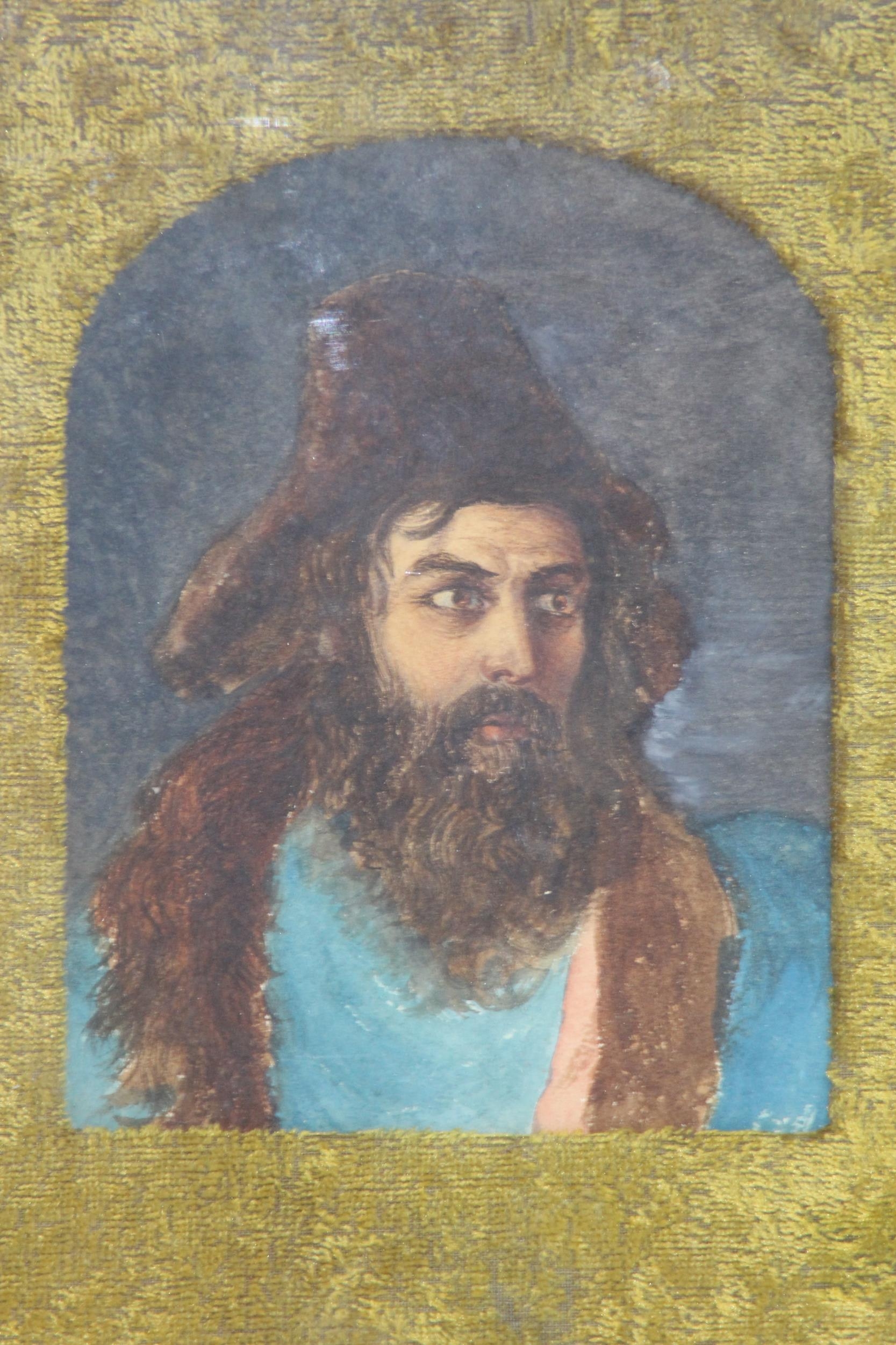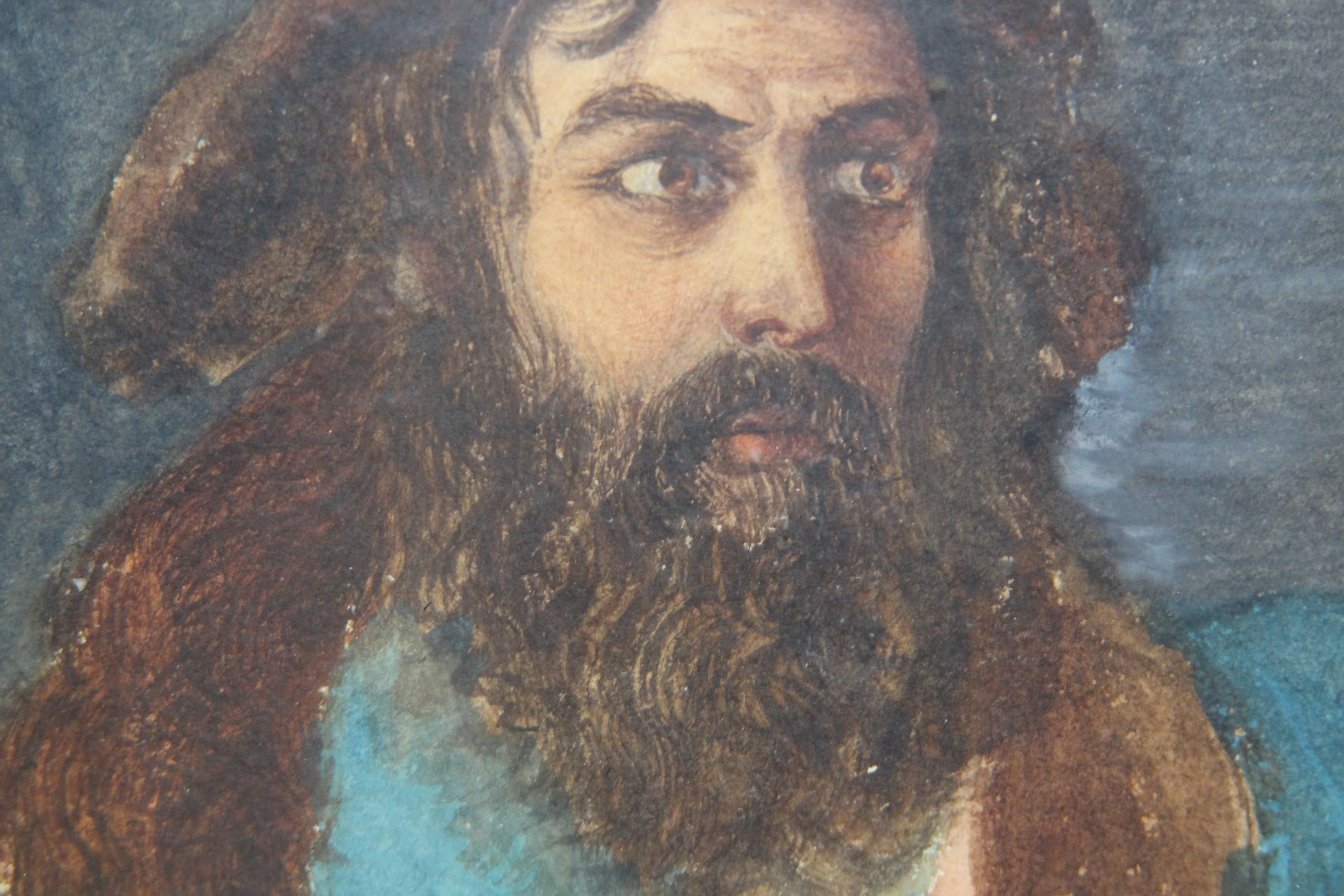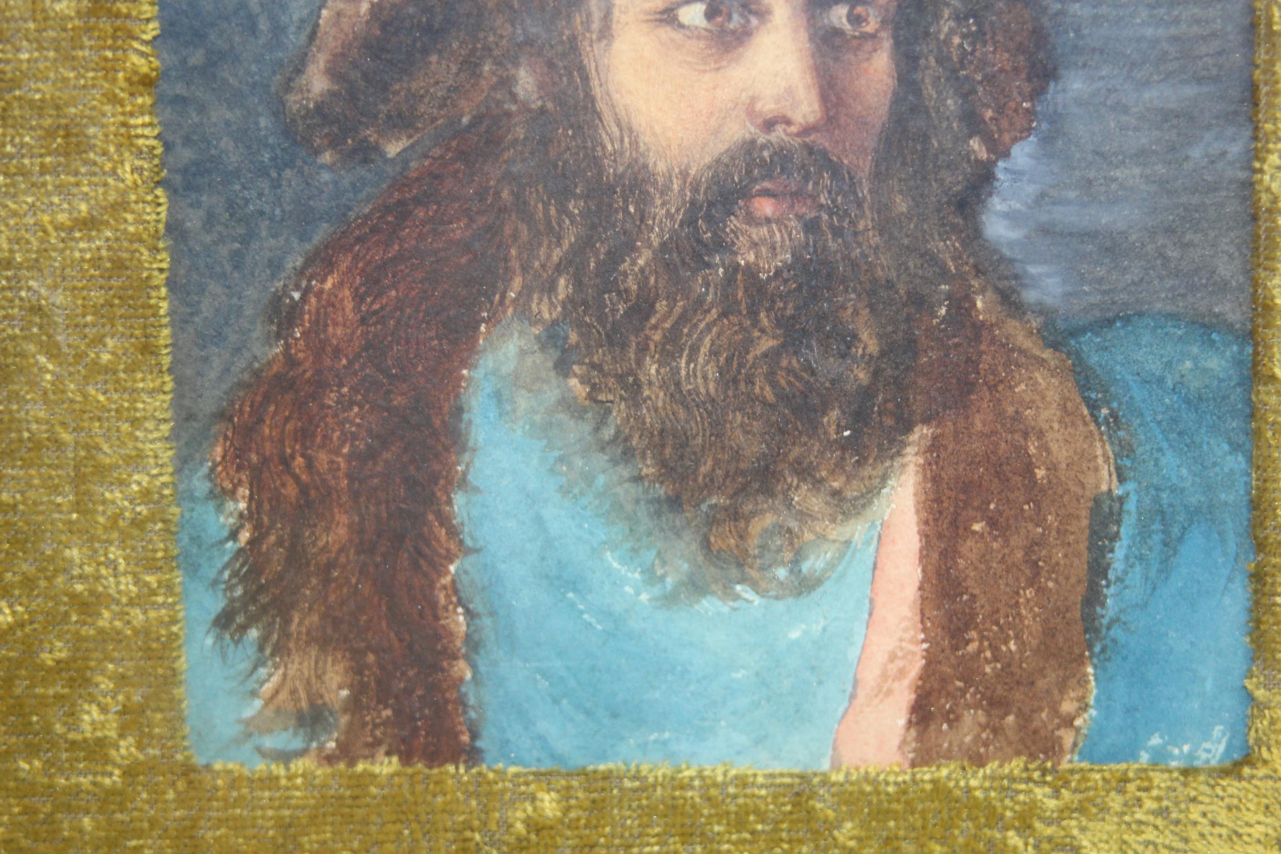 STARE-Y ODD PORTRAIT IN WATERCOLOUR OF BREADED ASIAN MAN 29 X 24CM