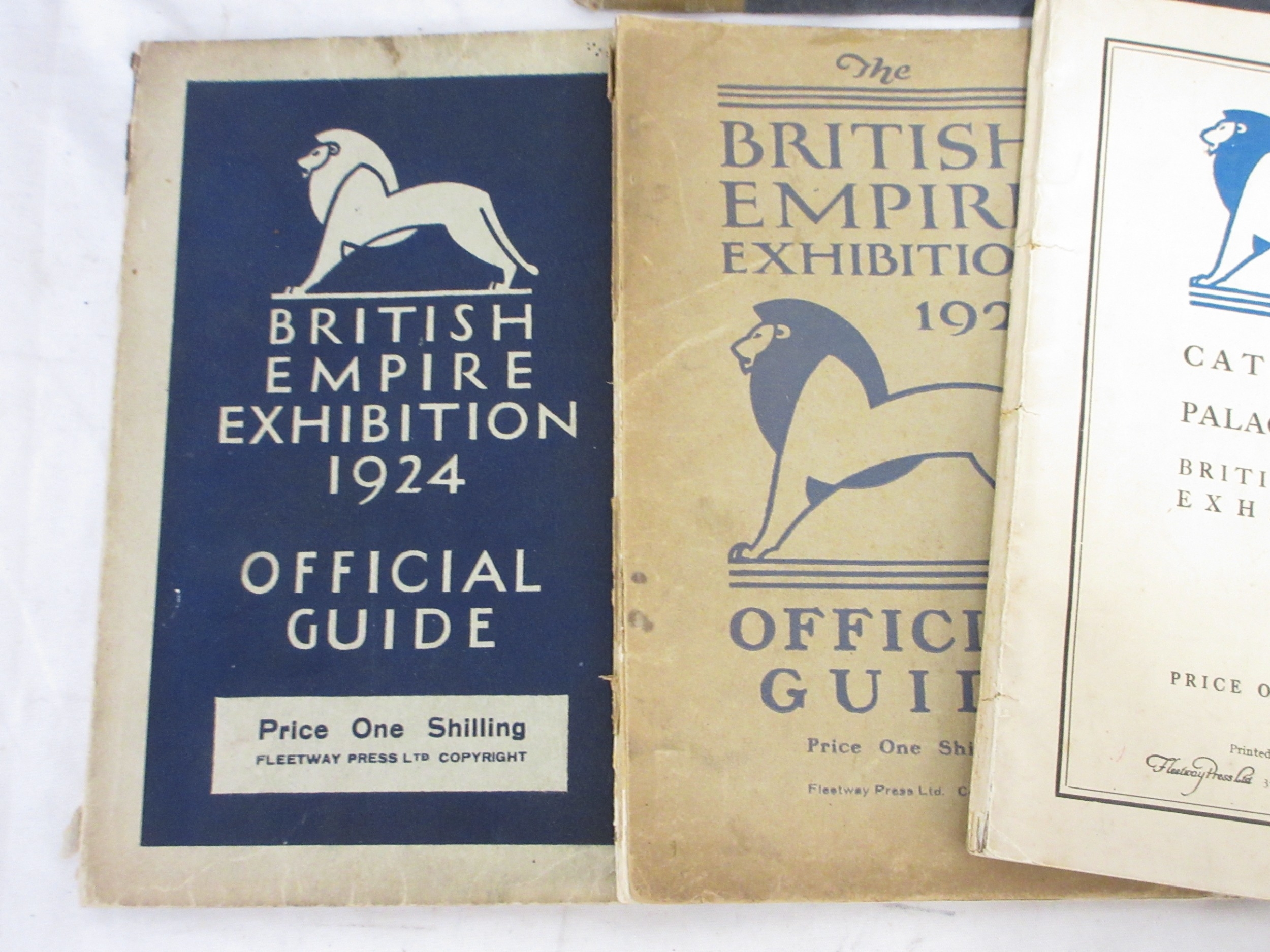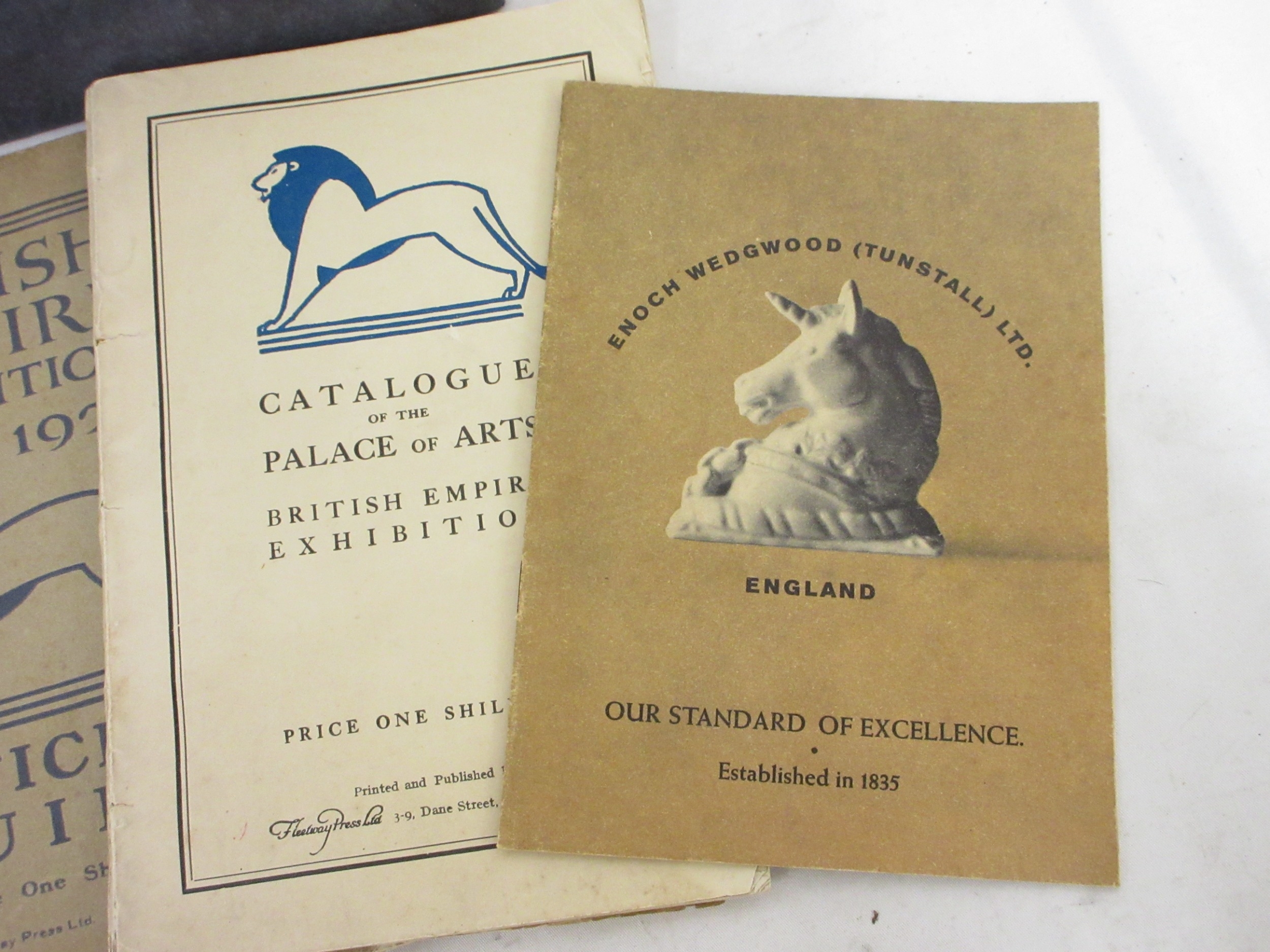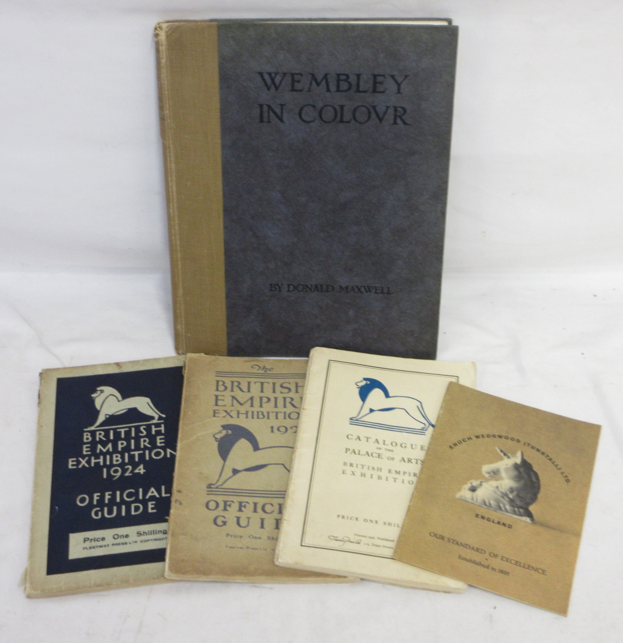 British Empire Exhibition 1924 - Maxwell (Donald): Wembley in Colour. 1924. Longmans Green and Co; Catalogue of the Palace of Arts; two Official Guide books, both with large folding plan and one with Map of the World; and Enoch Wedgwood booklet (5)