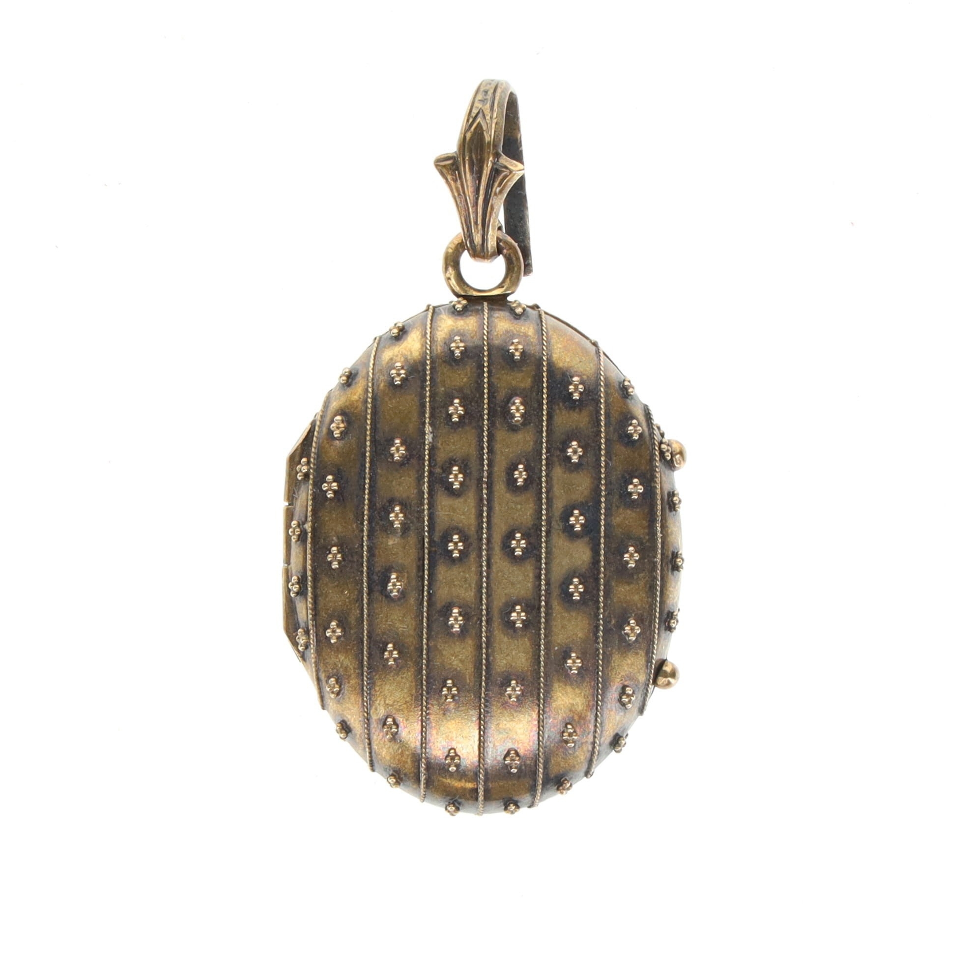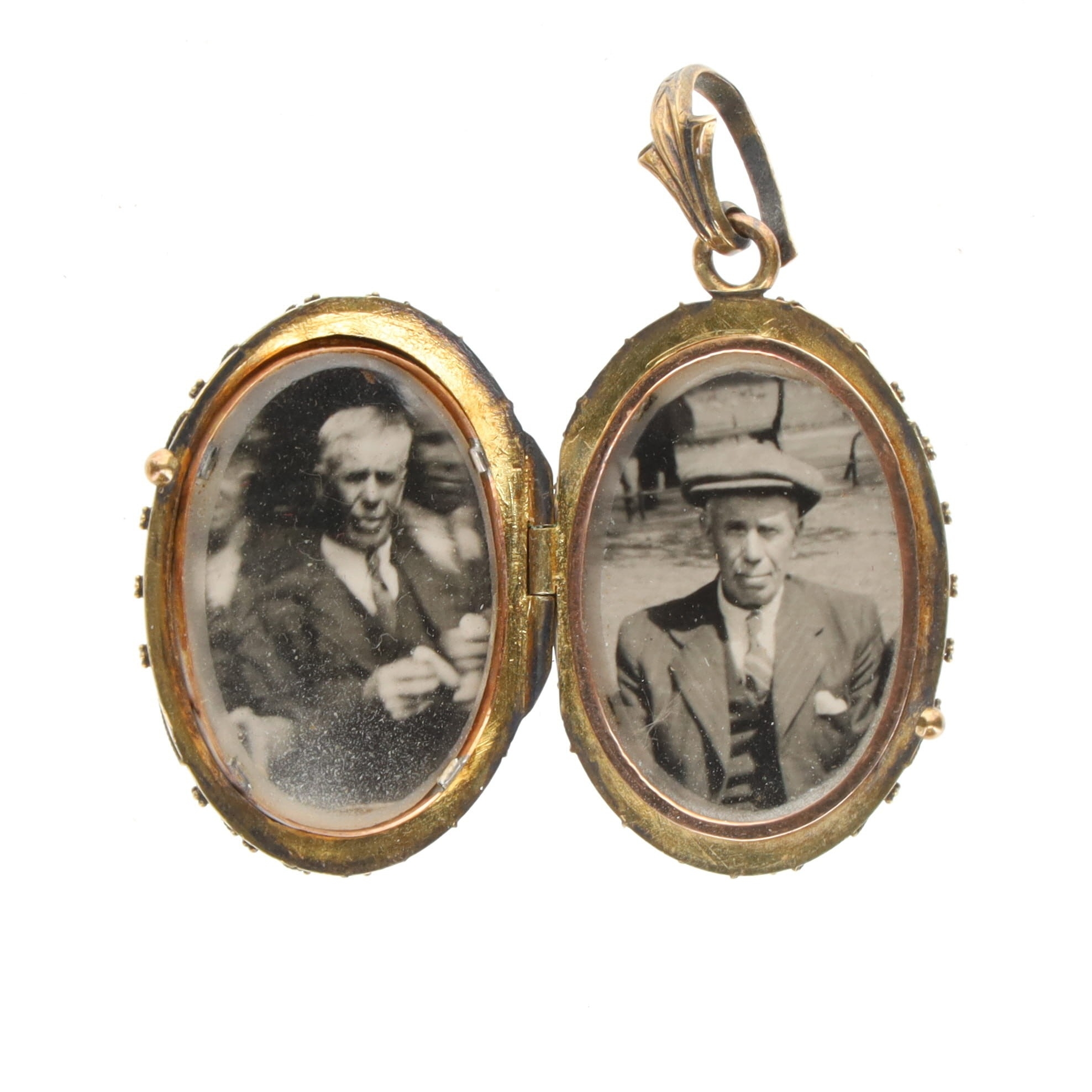 Victorian Gold Locket Pendant. Tested as 15ct gold. Areas of tarnish, minor surface scratches, closure is in working order. Measures approximately 4.5 x 2.9cm including bail. Weighs in total 9.1g.