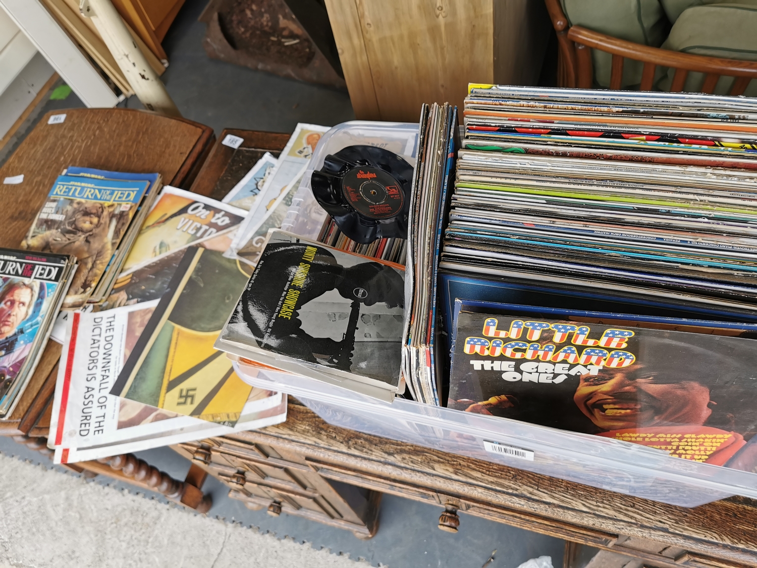 Box of Vinyl LPs & 7" Singles, Star Wars Comics & WWII Posters