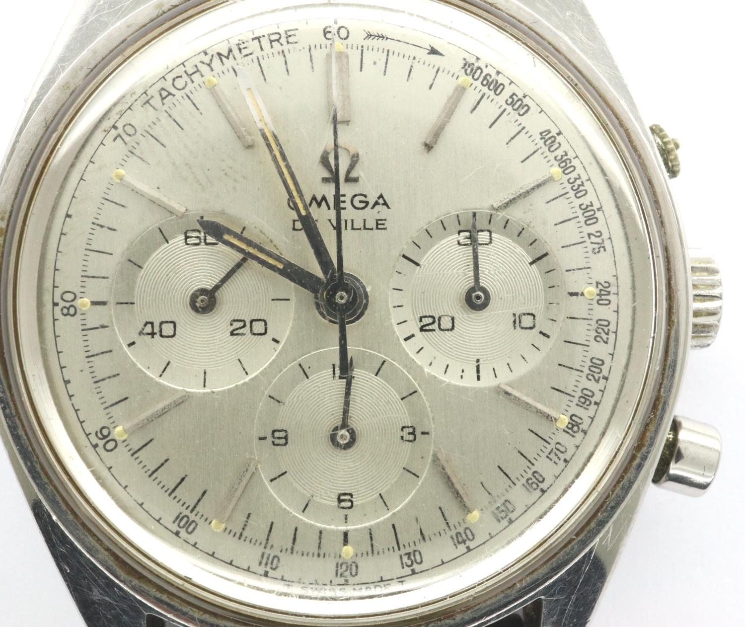 Omega: Deville wristwatch, circa 1965, serial number 27326191, top button is absent, but working at lotting. P&P Group 1 (£14+VAT for the first lot and £1+VAT for subsequent lots)