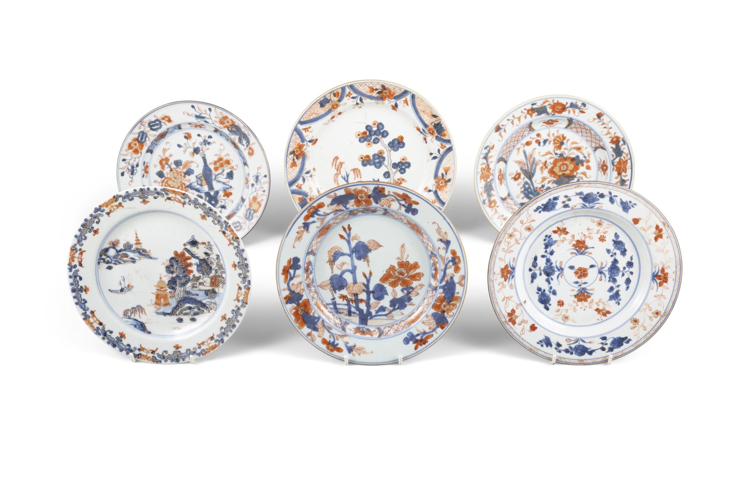 SIX CHINESE IMARI DISHES WITH FLOWERS AND LANDSCAPE ??? ???????????? China, 18th century D: 23 - 25cm (6)