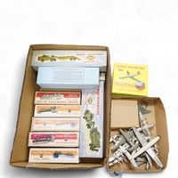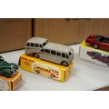 Thirty-two Dinky Toys, all playworn, restored, repainted or overpainted examples in reproduction boxes, including cars and light commercial vehicles