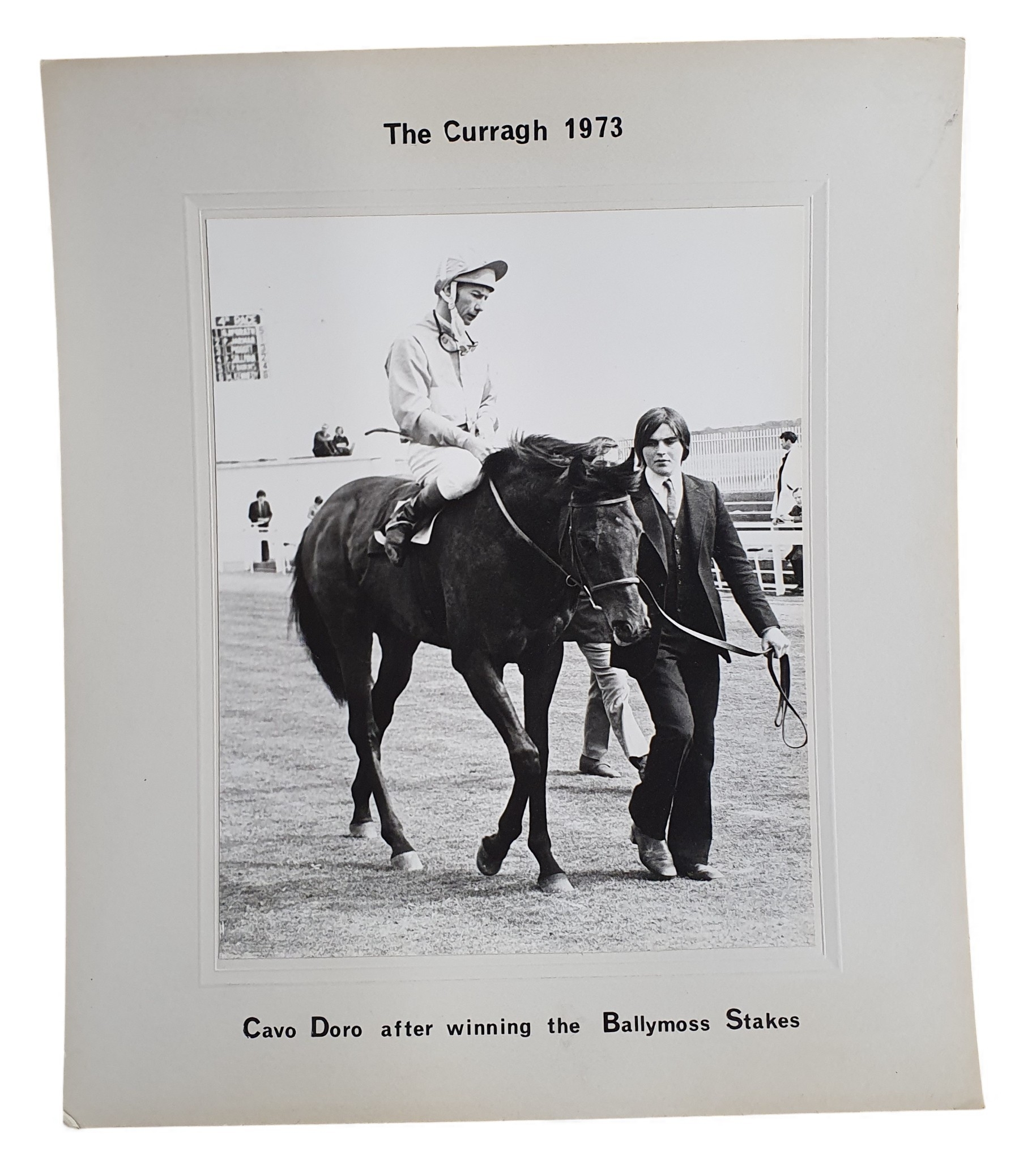 Three vintage mopunted Photographs of Lester Piggott up. Two of Cavo Doro and Commanche Run.