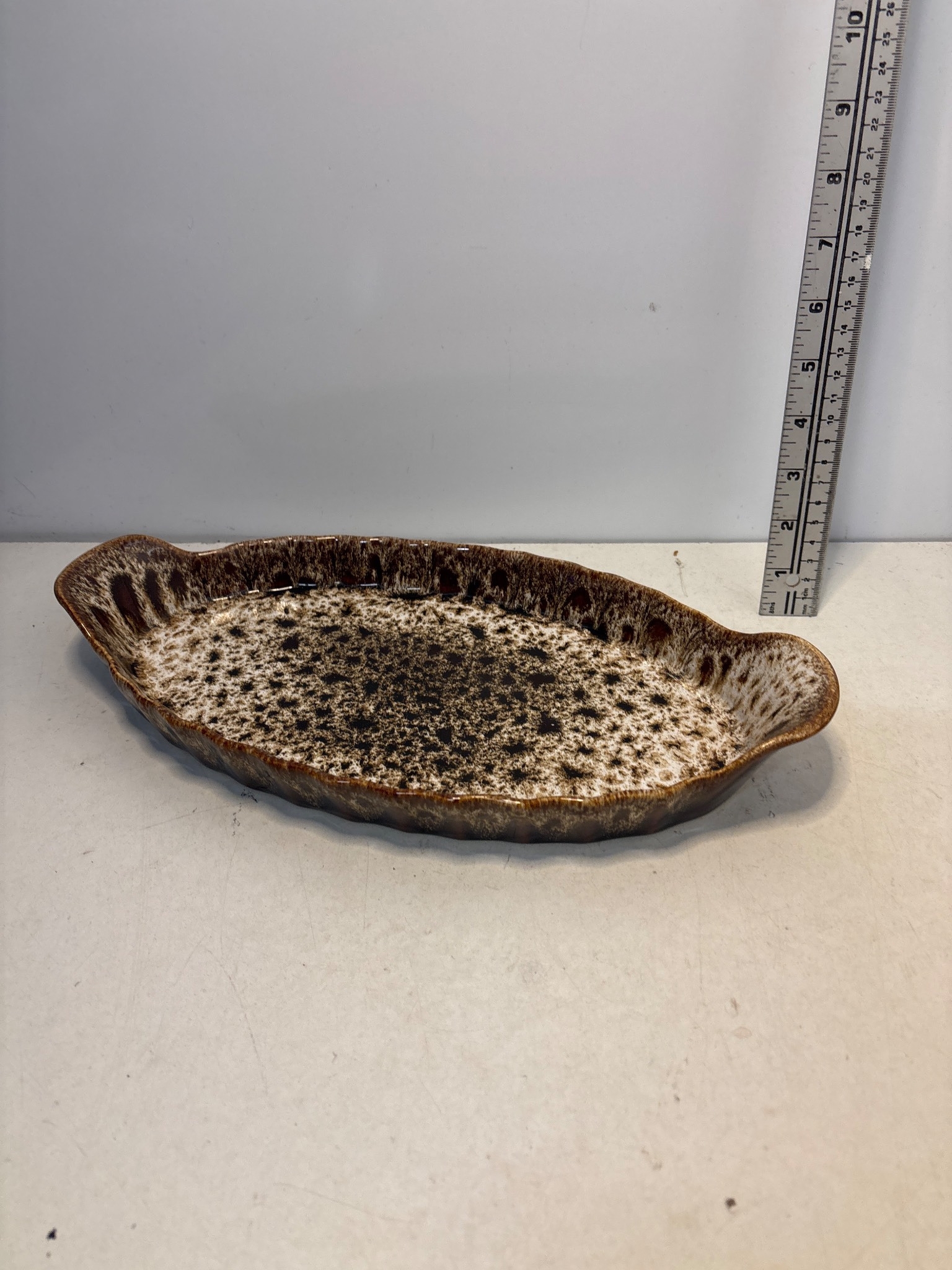 Fosters Pottery ceramic dish with speckled glaze, in good co...