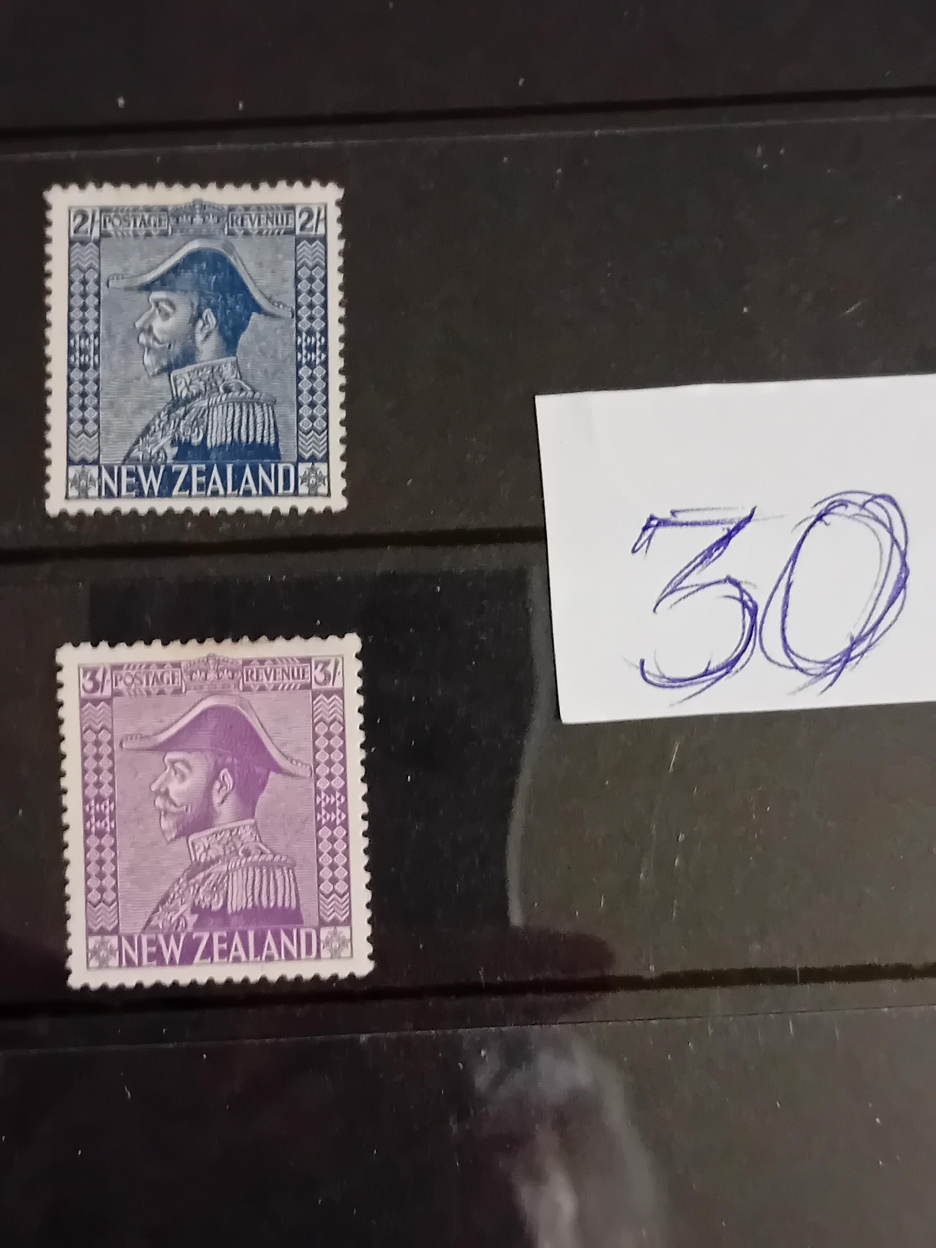 Stamps : New Zealand 1927 2/- Blue and 3/- Mauve fine mint white gum, sg 469/70, Cat v £200+.