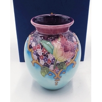 OLD TUPTON WARE TUBELINED 10cm VASE IN THE AMETHYST BOUQUET DESIGN (Product Code No TW7972) (As New , Original Box)