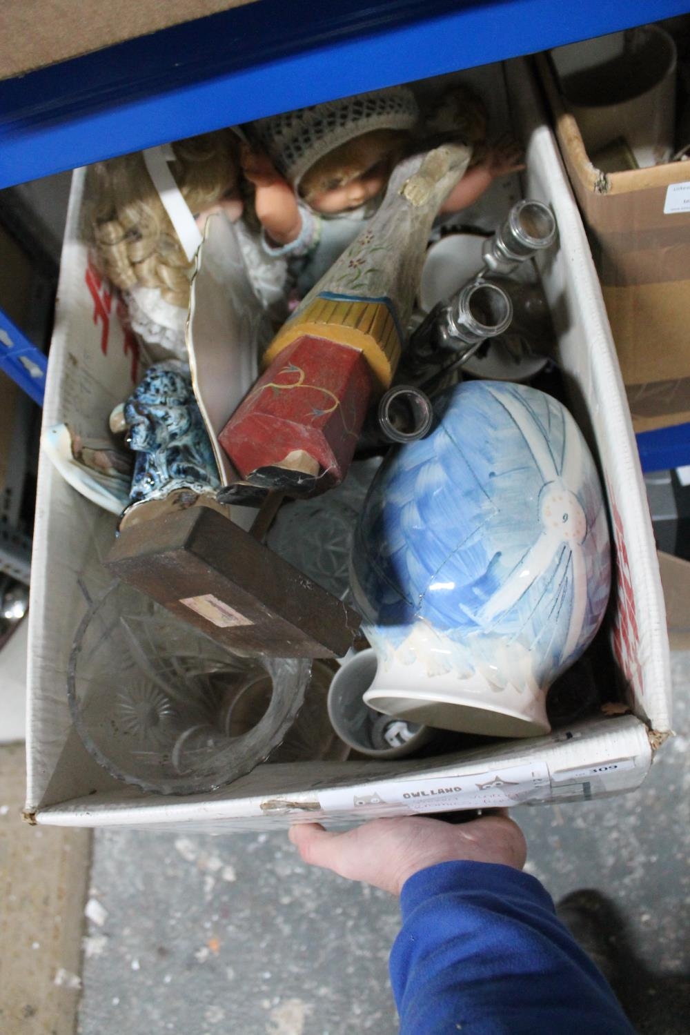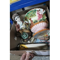 BOX OF MIXED VINTAGE CHINA INC FIGURINES AND DOLLS