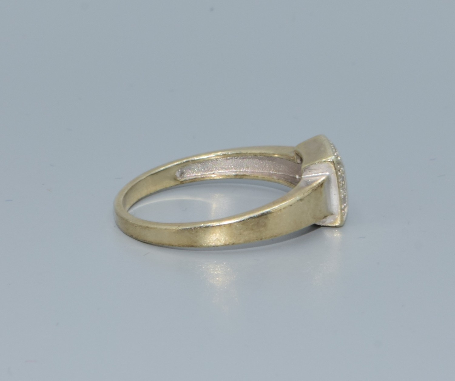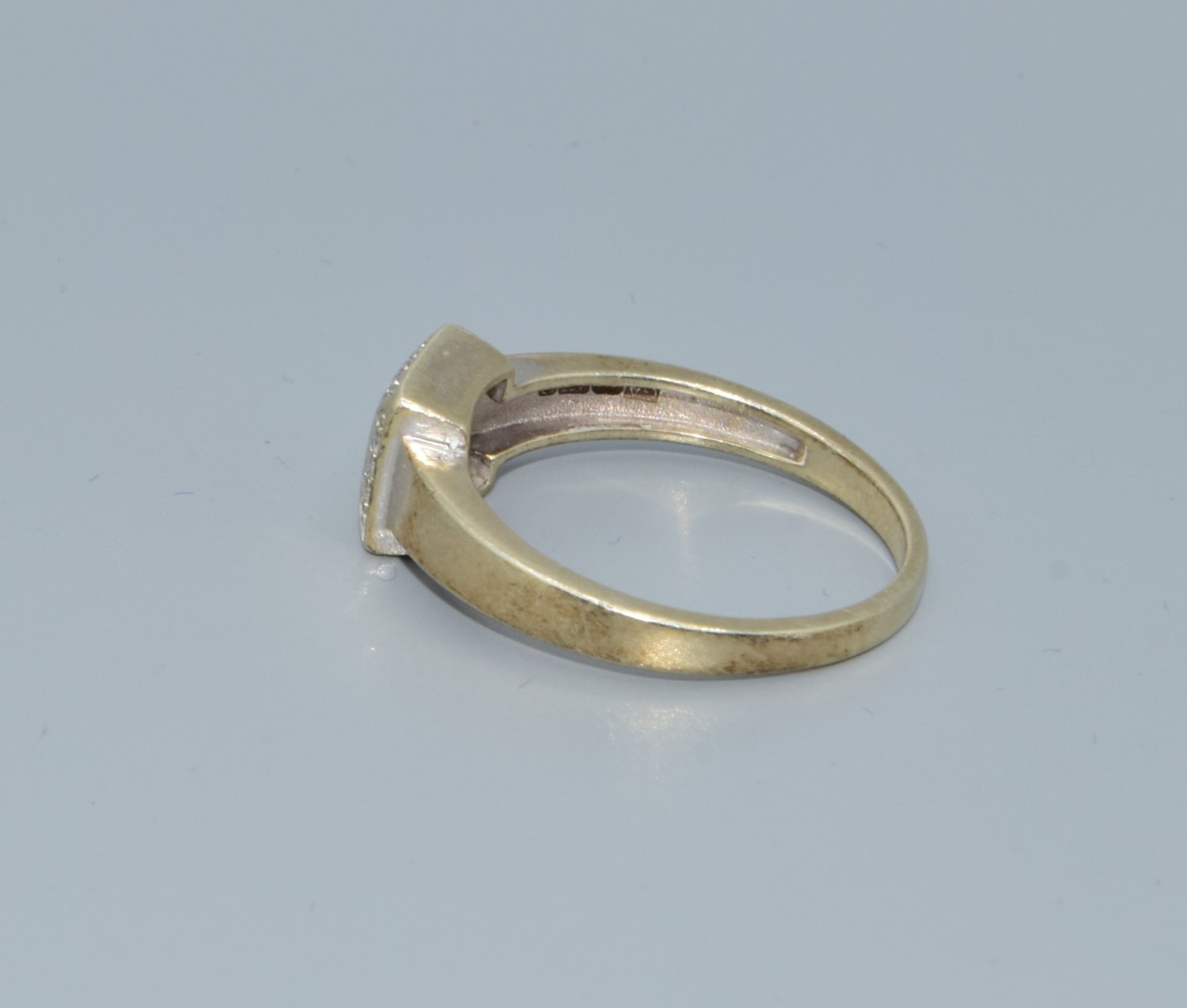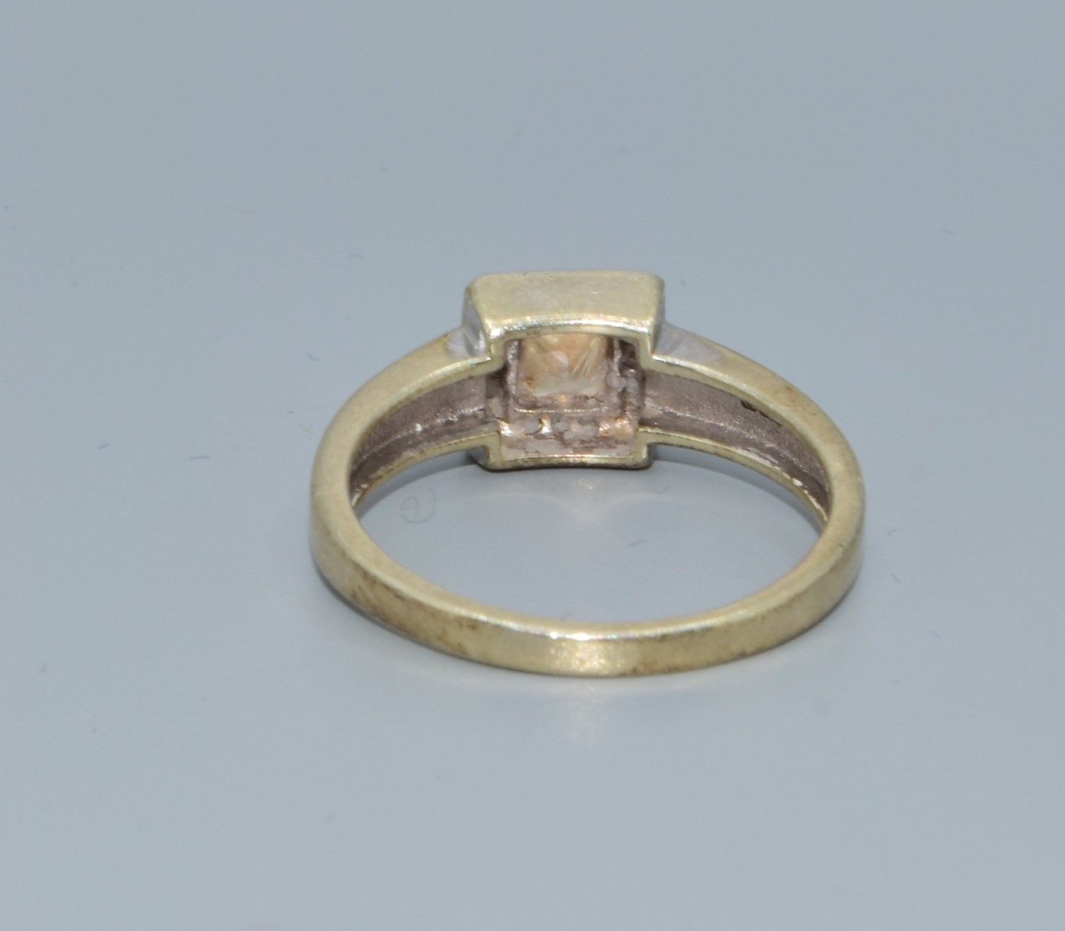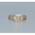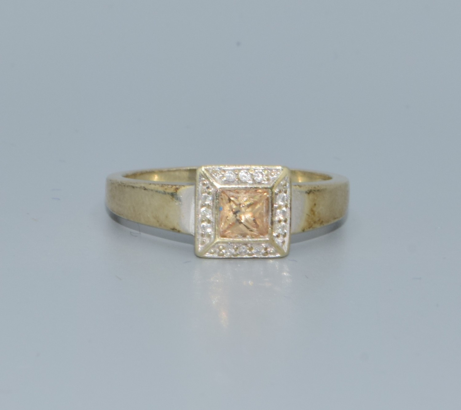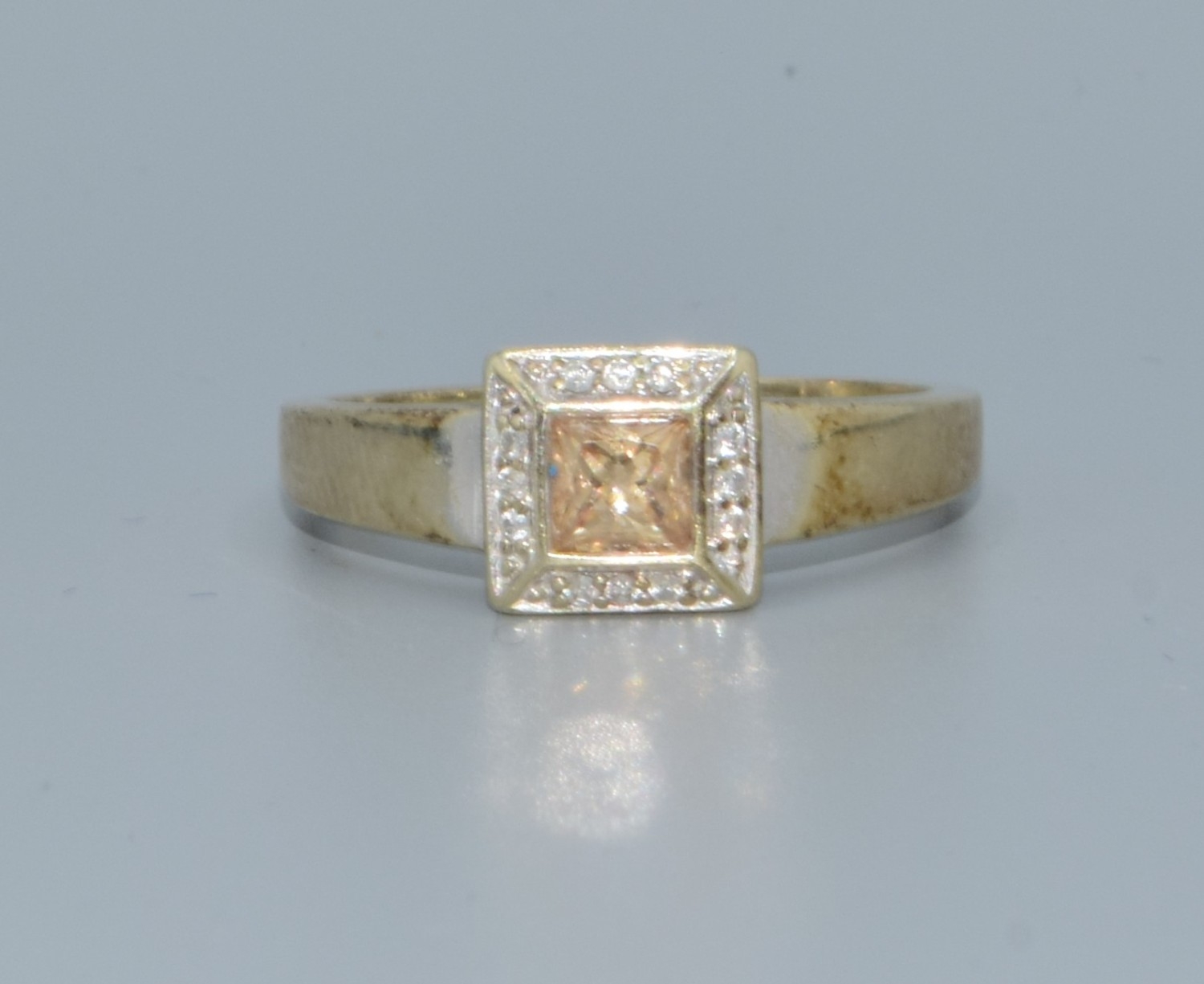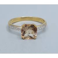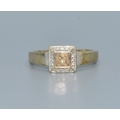 9ct two colour gold Citrine with a Diamond halo surround square face ring size P 3.1grms