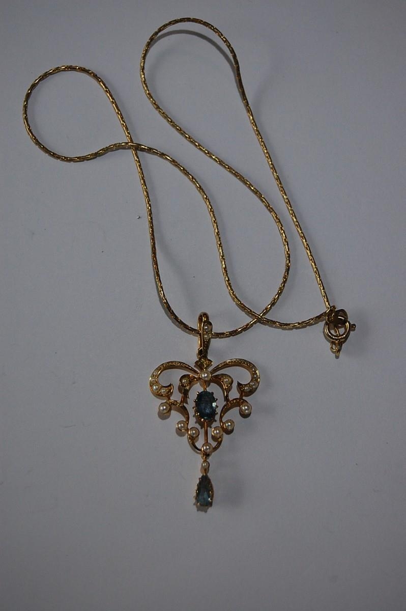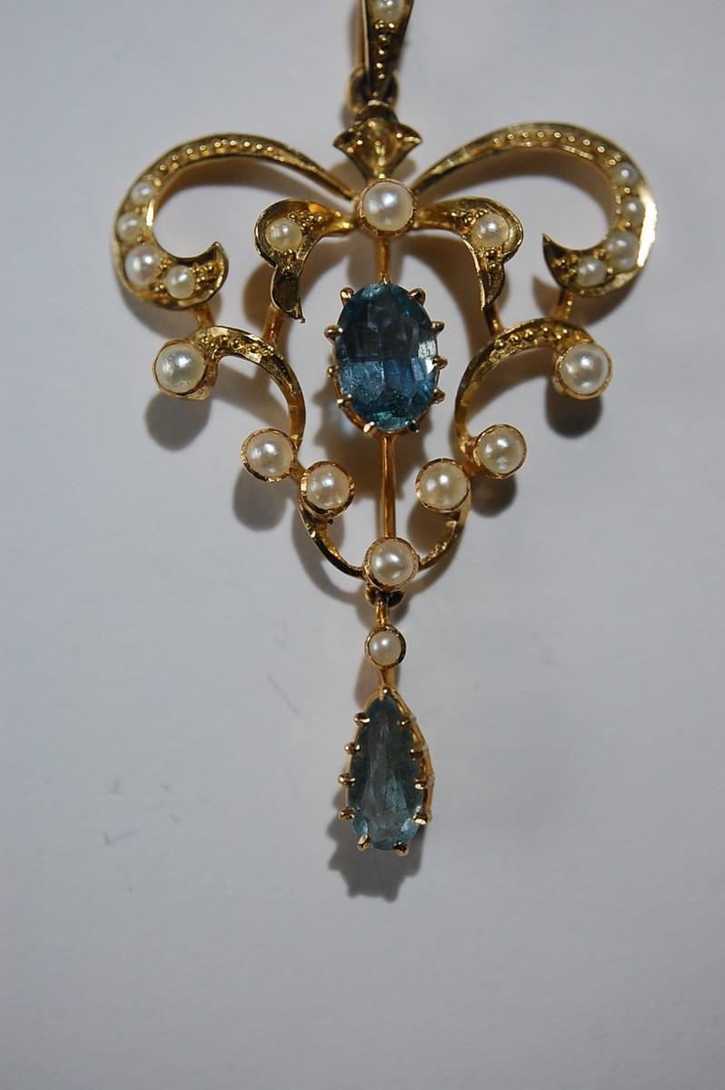 15 ct. gold aquamarine and pearl pendant - total weight 3 g