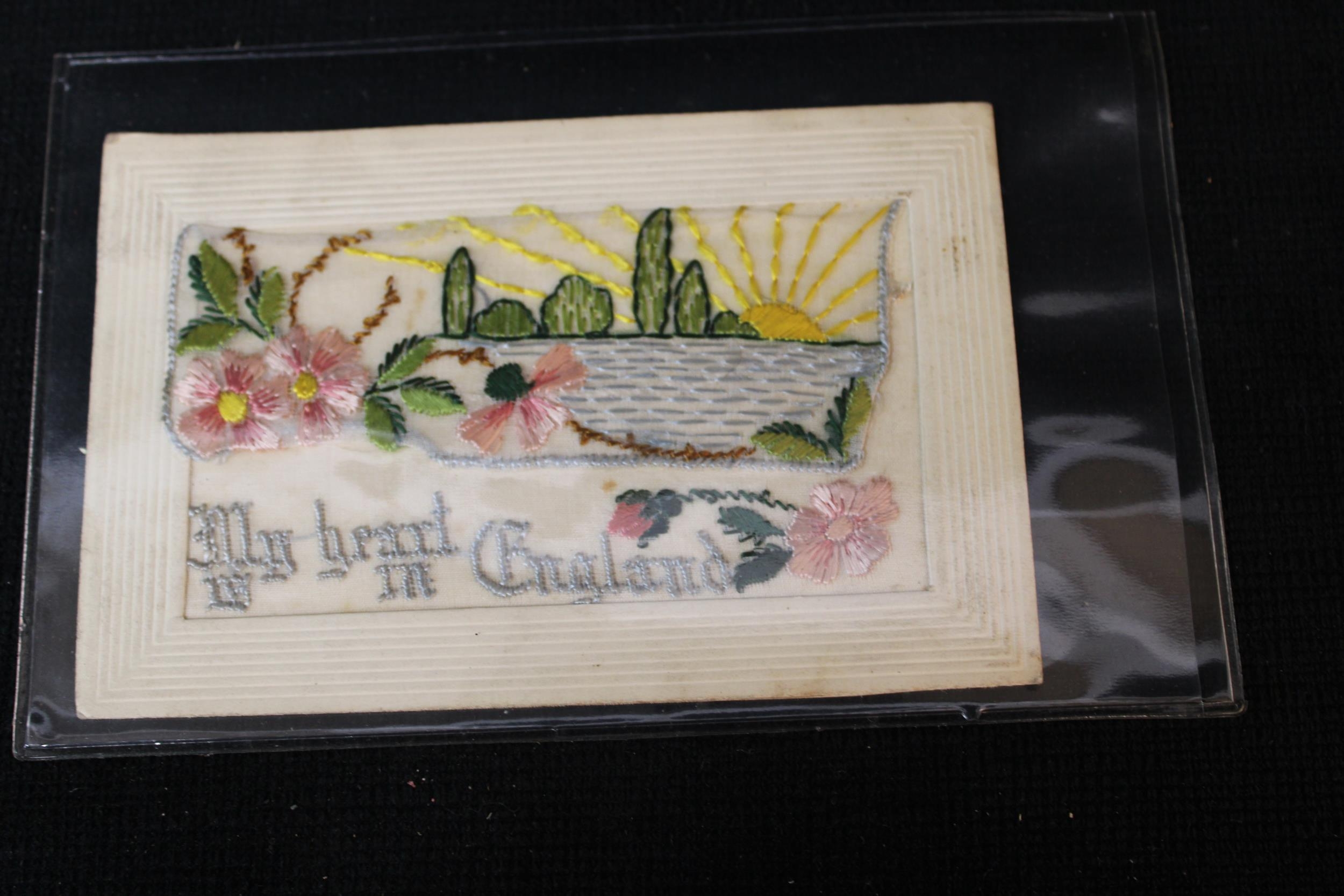 A First World War 'My heart is in England' embroidered postcard