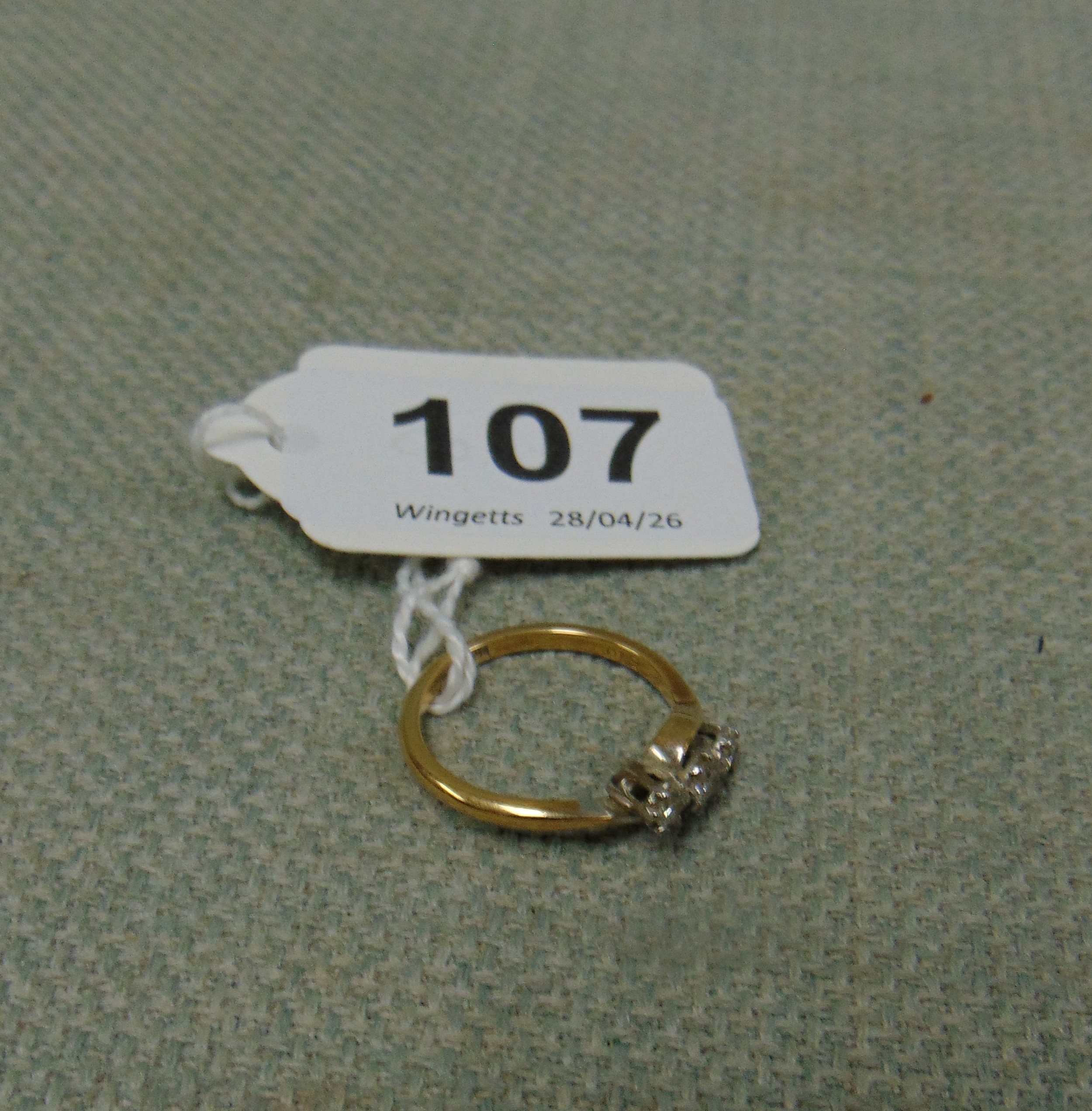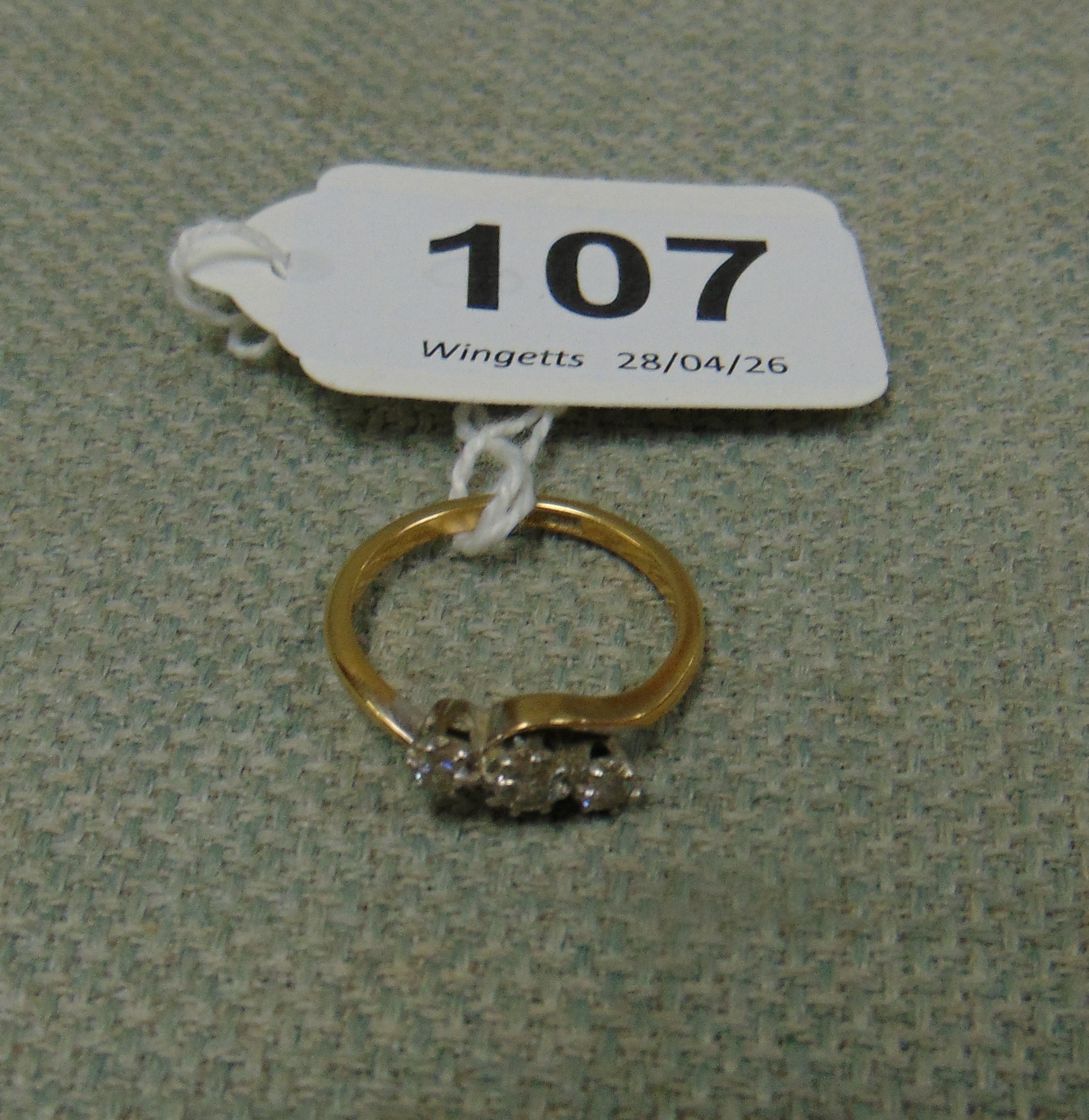 18ct plat three diamond stone ring, size P /Q , 3.5 gms.