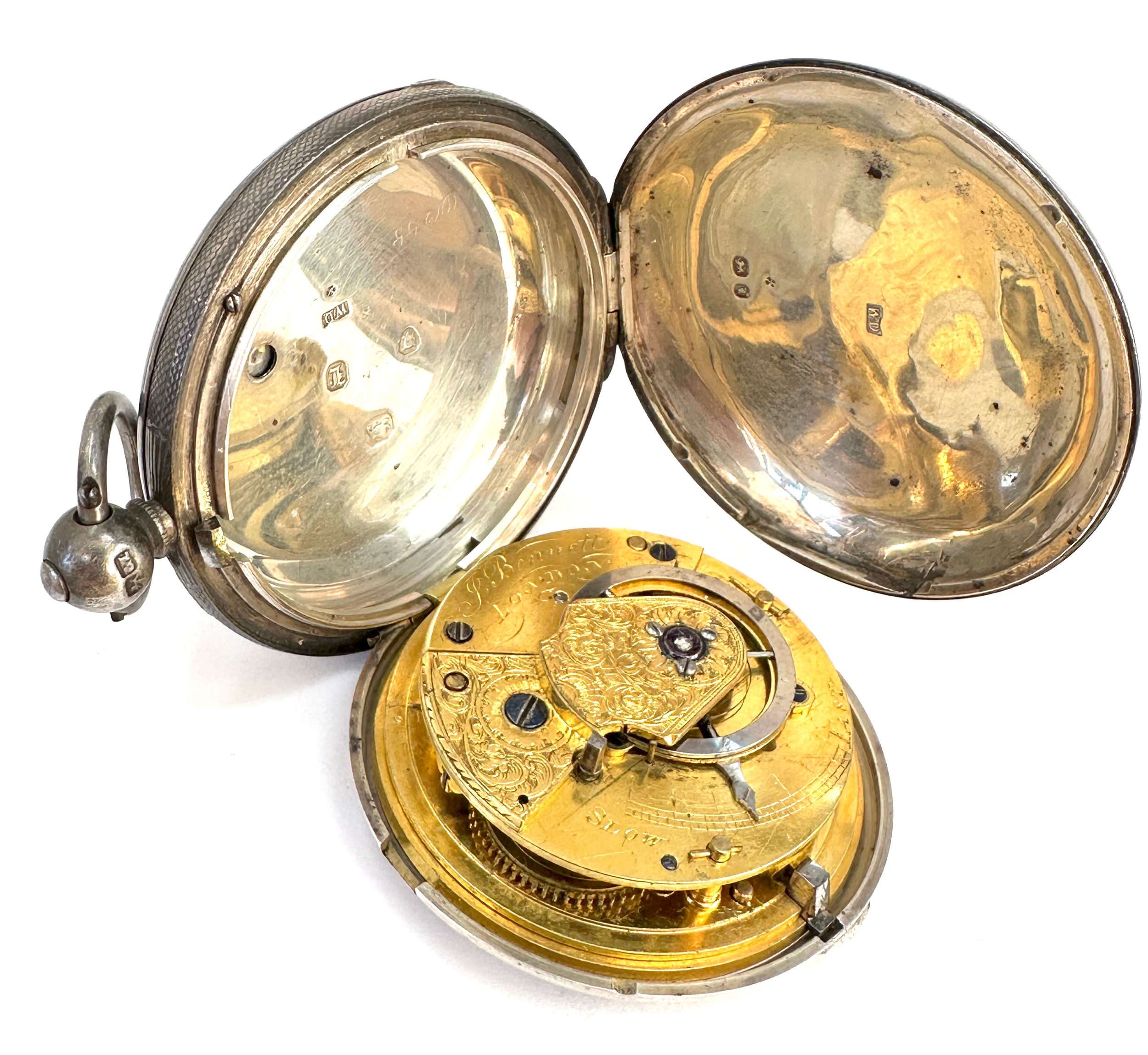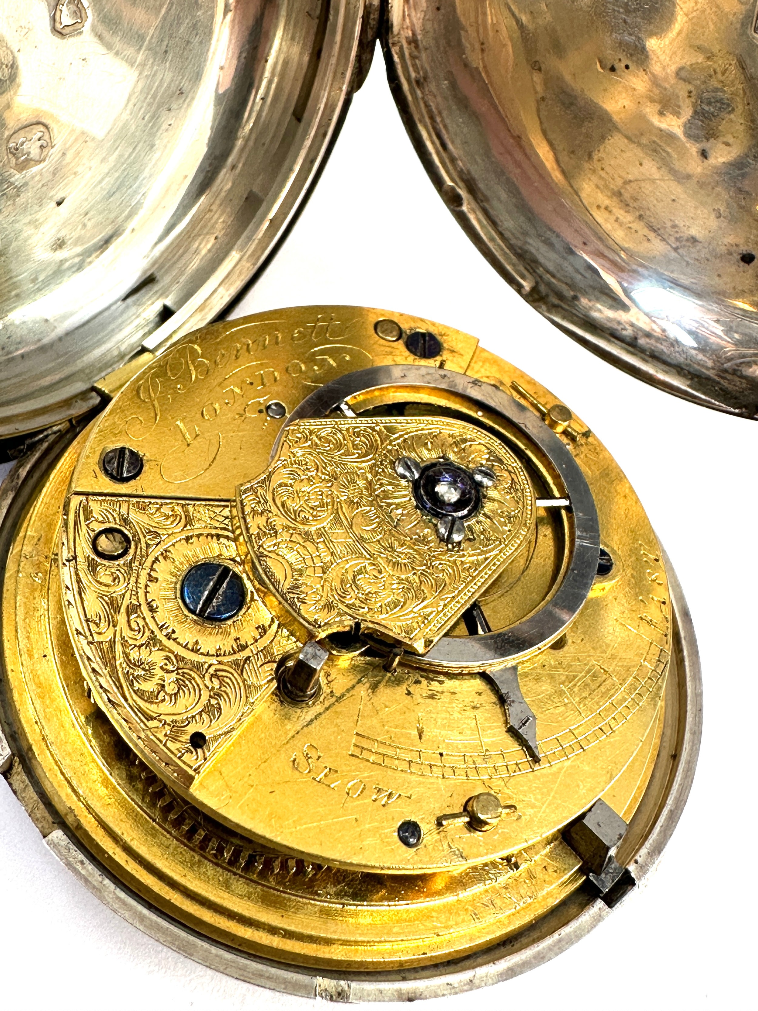 Antique silver full hunter cased verge fusee pocket watch by J.Bennett London the watch is not ticking weight 118g