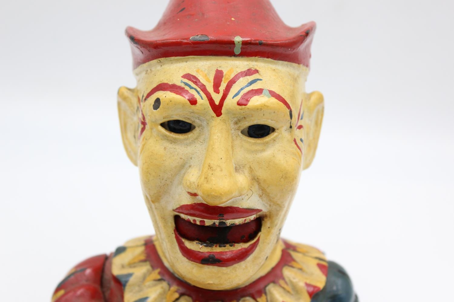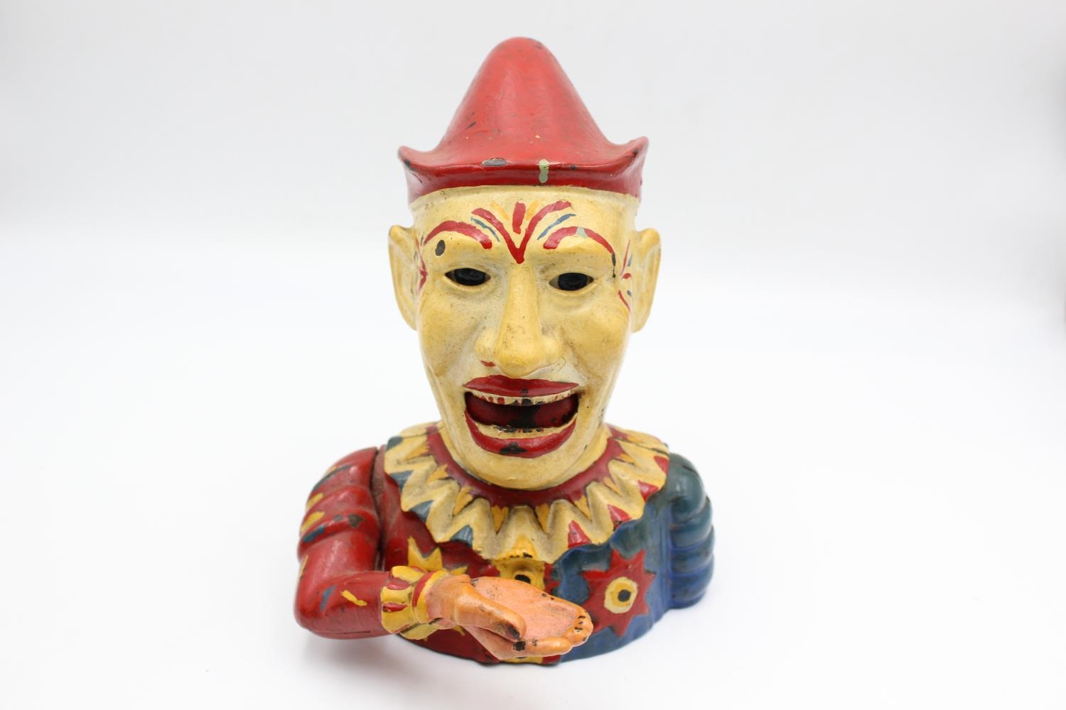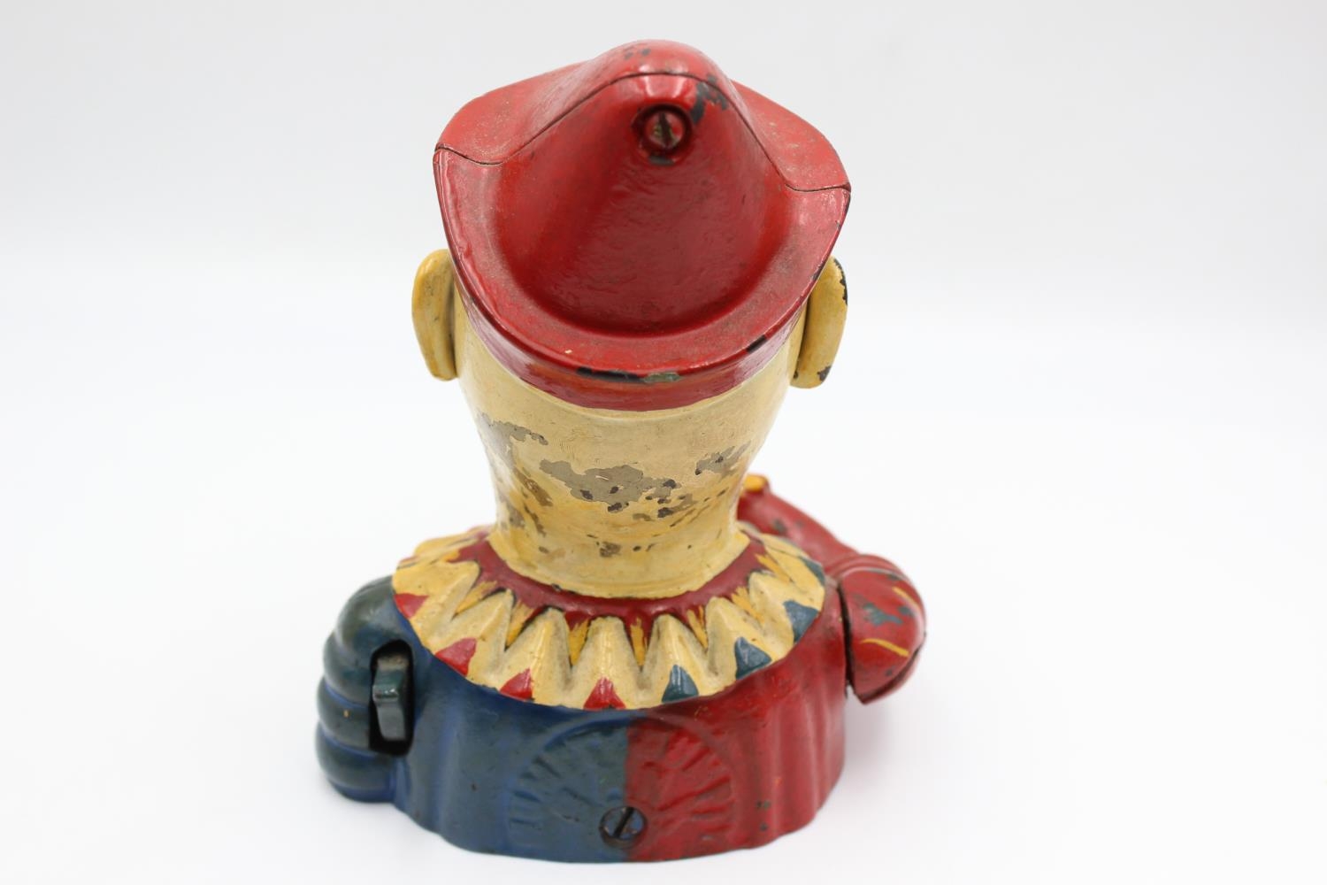 Vintage Heavy Cast Iron Novelty Clown MONEY BOX Stamped BUFFALO N.Y Working