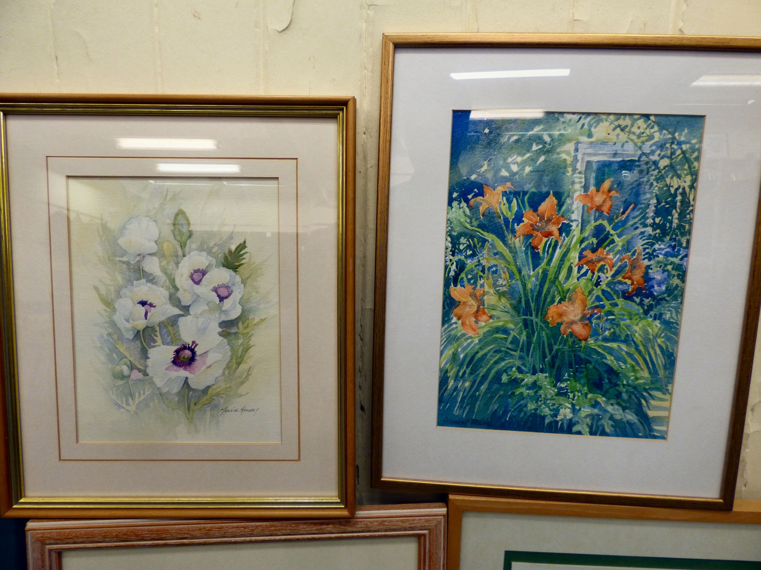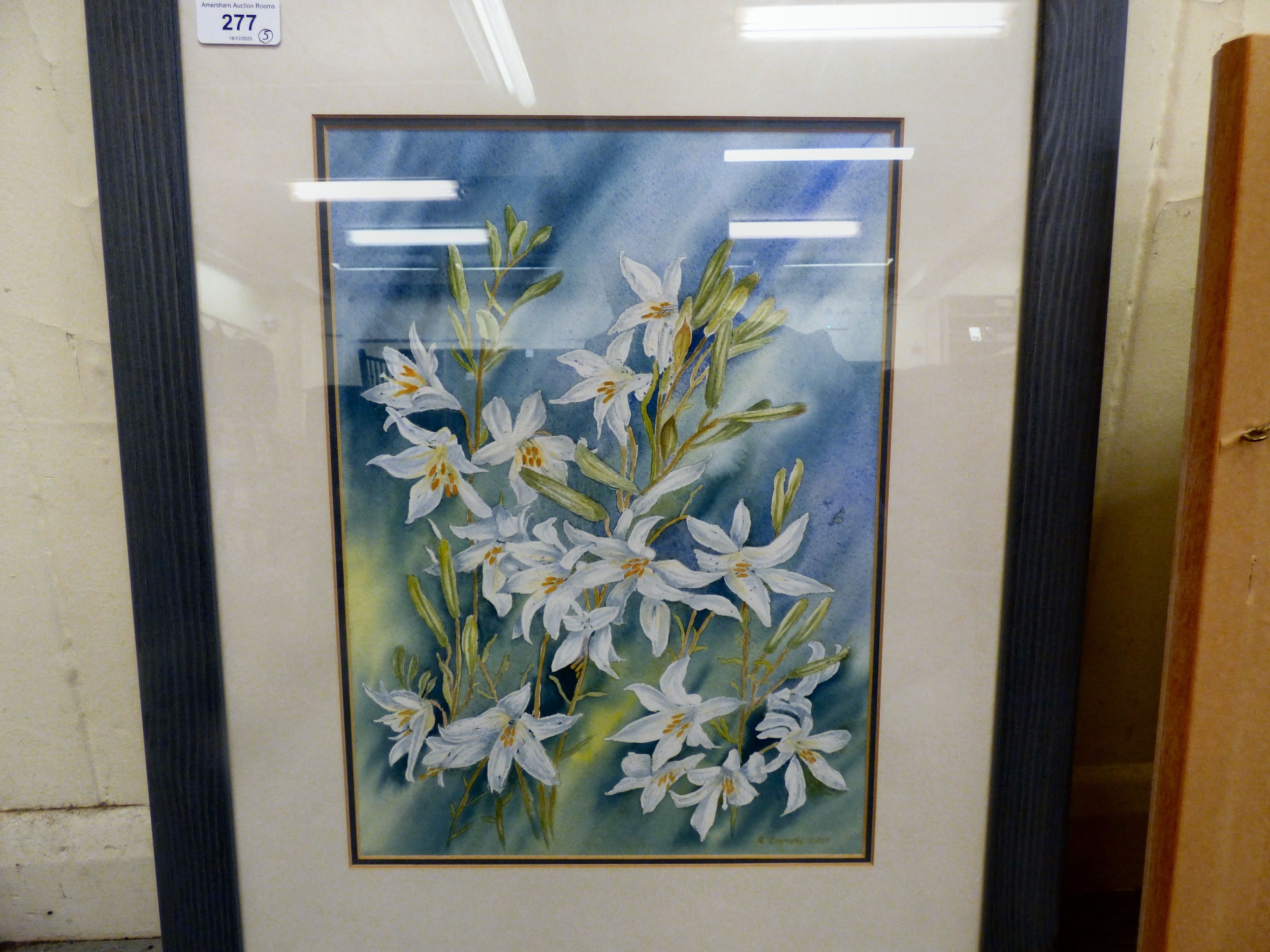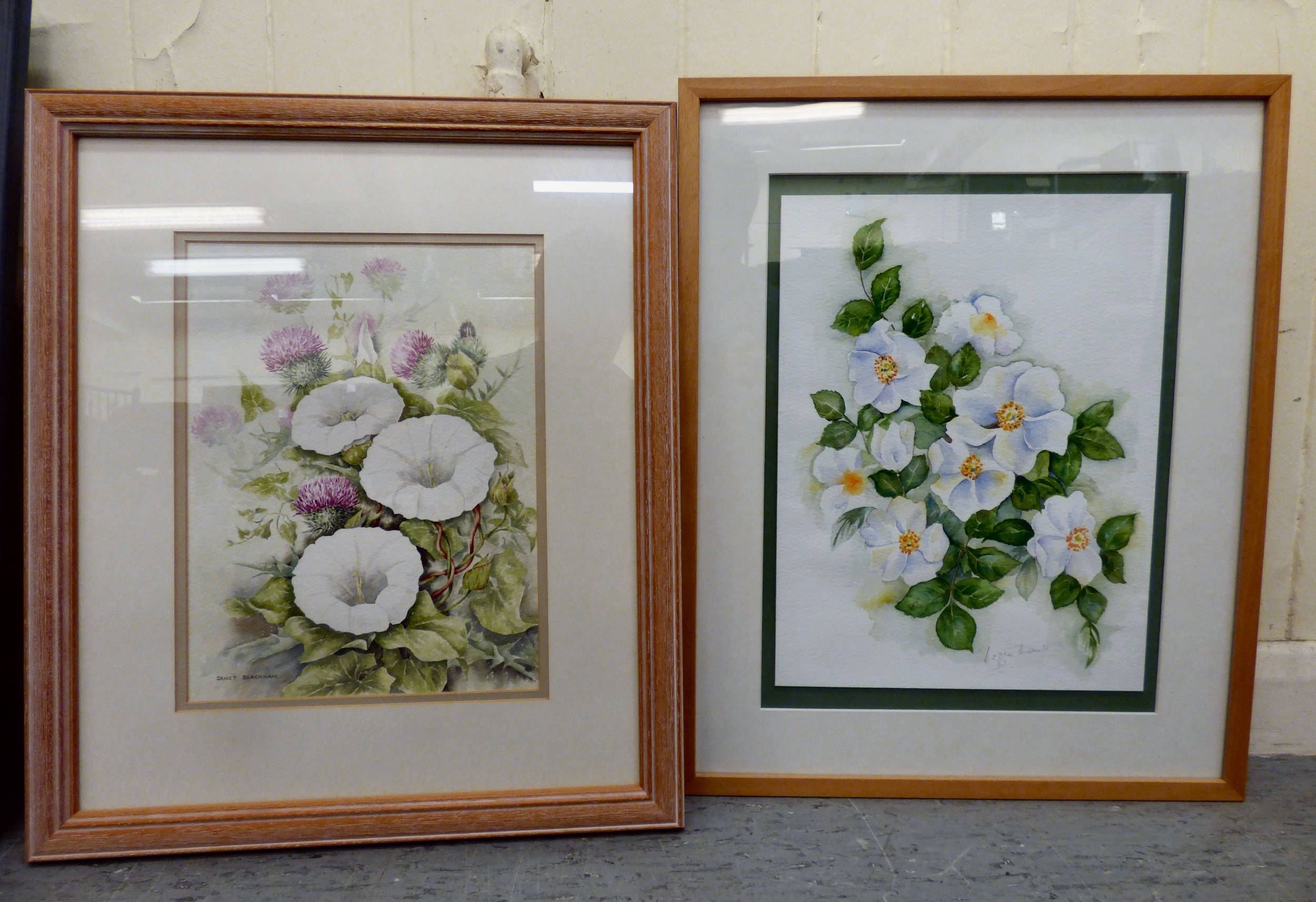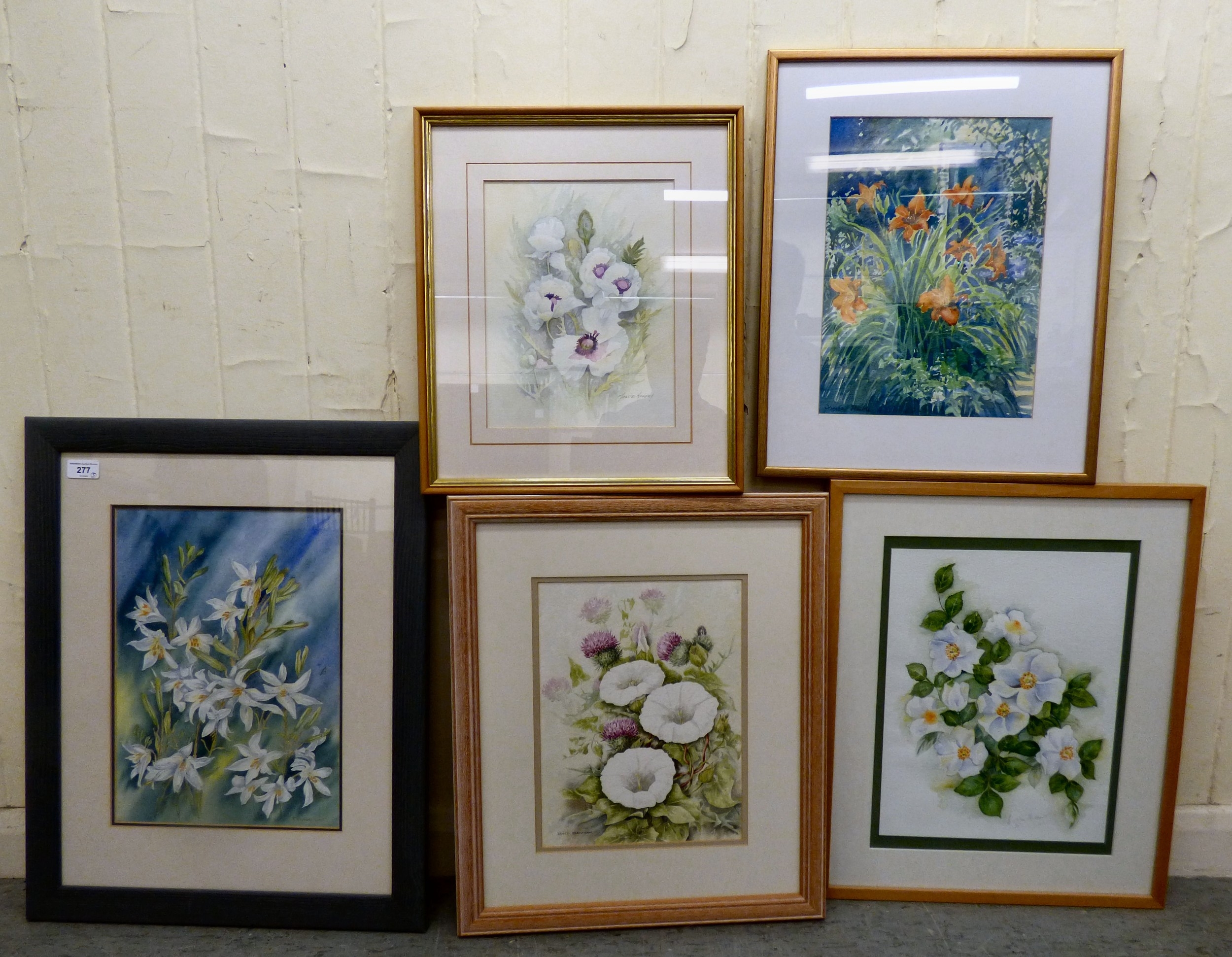 Watercolour floral studies: to include Lizzie Thompson - 'Roses' bears a pencil signature 10.5" x 14" framed; and Ron Carroll - 'Wild Lilies' bears a signature & dated 2001 10.5" x 14.5" framed