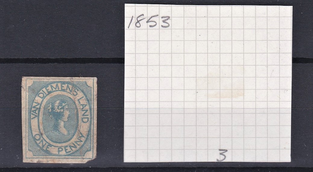 Australia (Tasmania) 1853 1d Pale Blue, SG3, light used, four margins, corner clip lower right clear of design, light crease. SG Cat £1,300