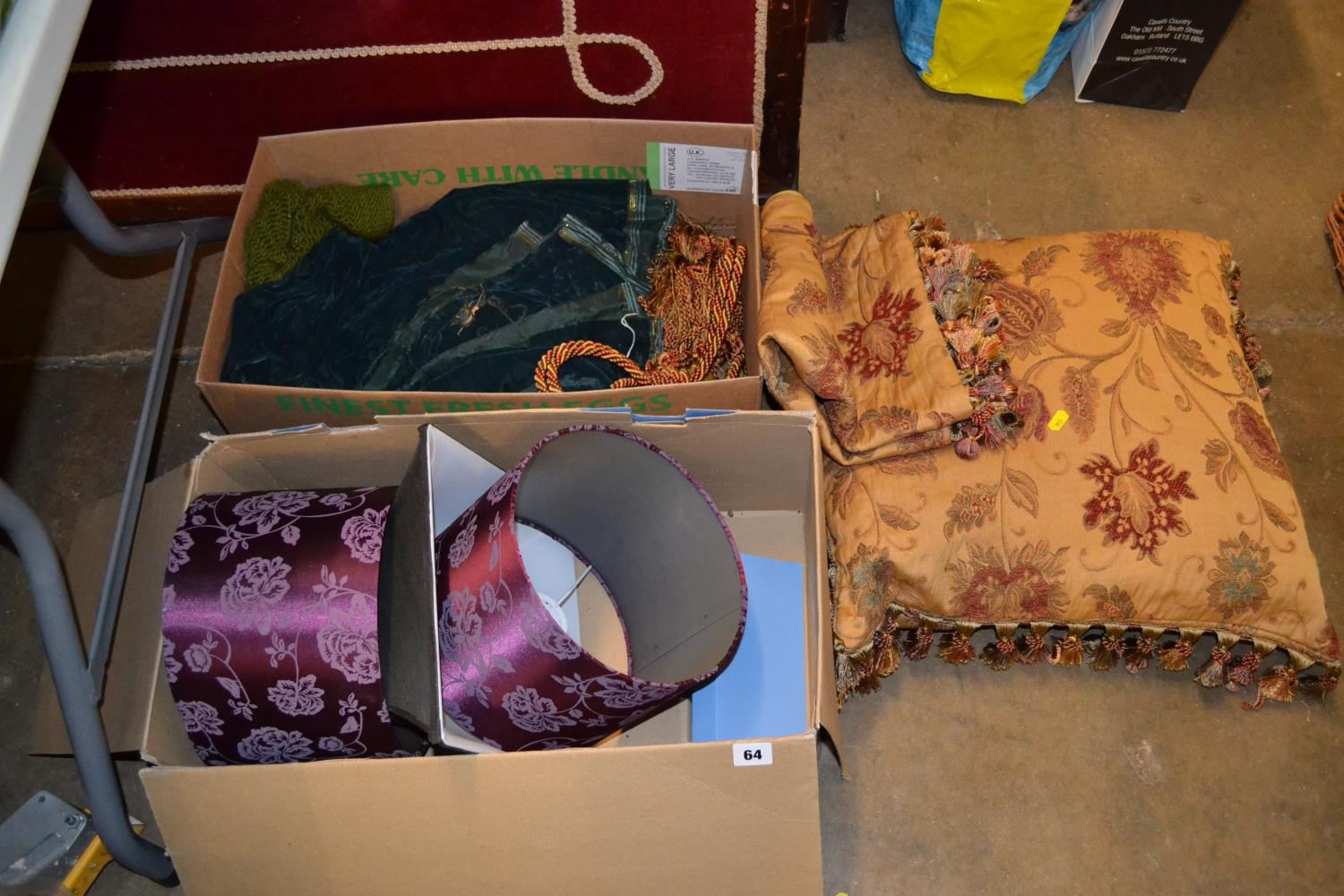 2 TAPESTRY CUSHION COVERS, LAMPSHADES, ETC