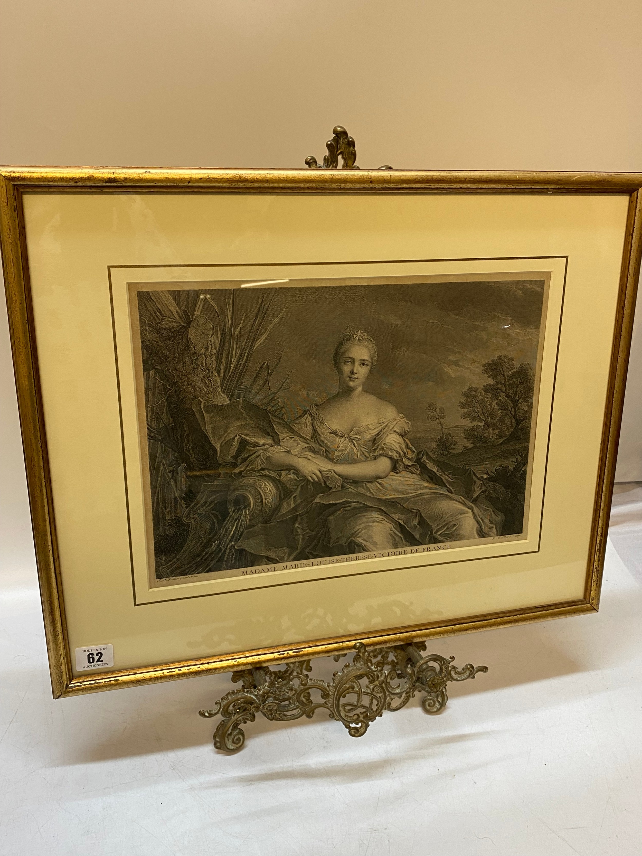 An 18th Century black and white engraving after J.M Nattier entitled 'Madame Marie Louse Therese Victoire De France, mounted, framed and glazed - 10 1/4in. x 14in.