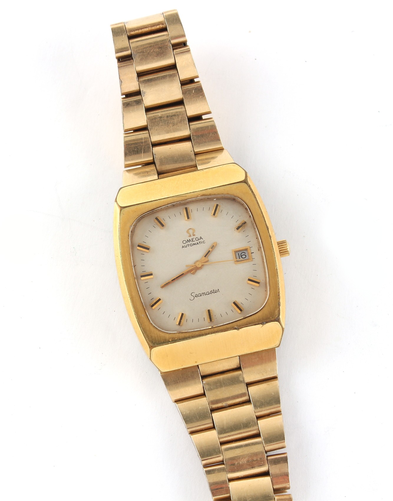Property of a deceased estate, a private collection of watches - a gentleman's Omega Seamaster automatic gold plated wristwatch, 37mm, appears to be working but no guarantees are given, on original gold plated bracelet strap with deployant clasp.