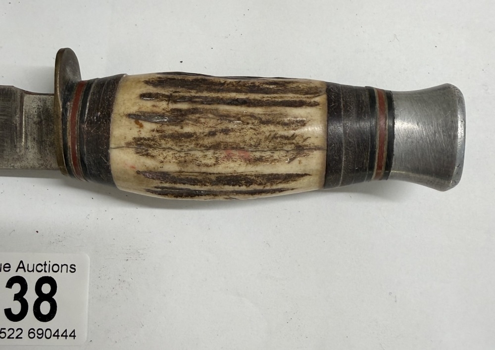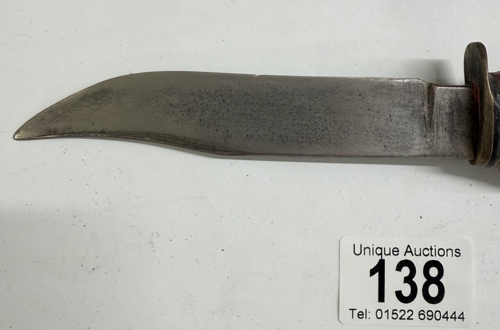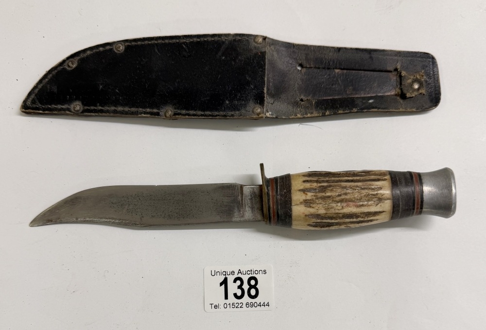 A vintage hunting knife with leather sheath