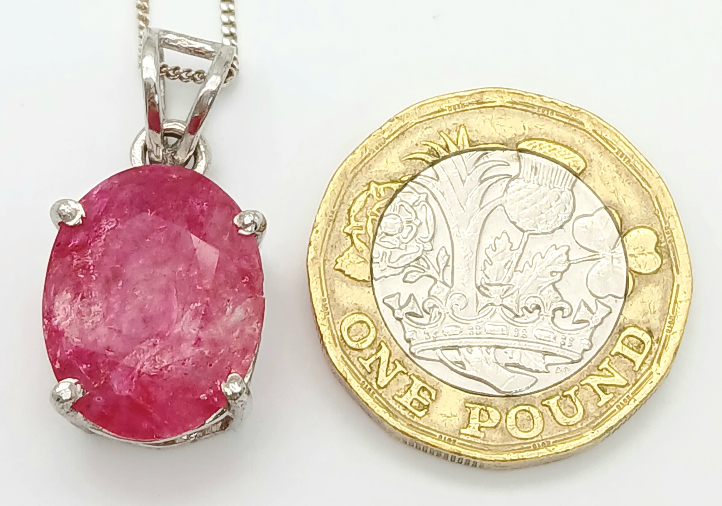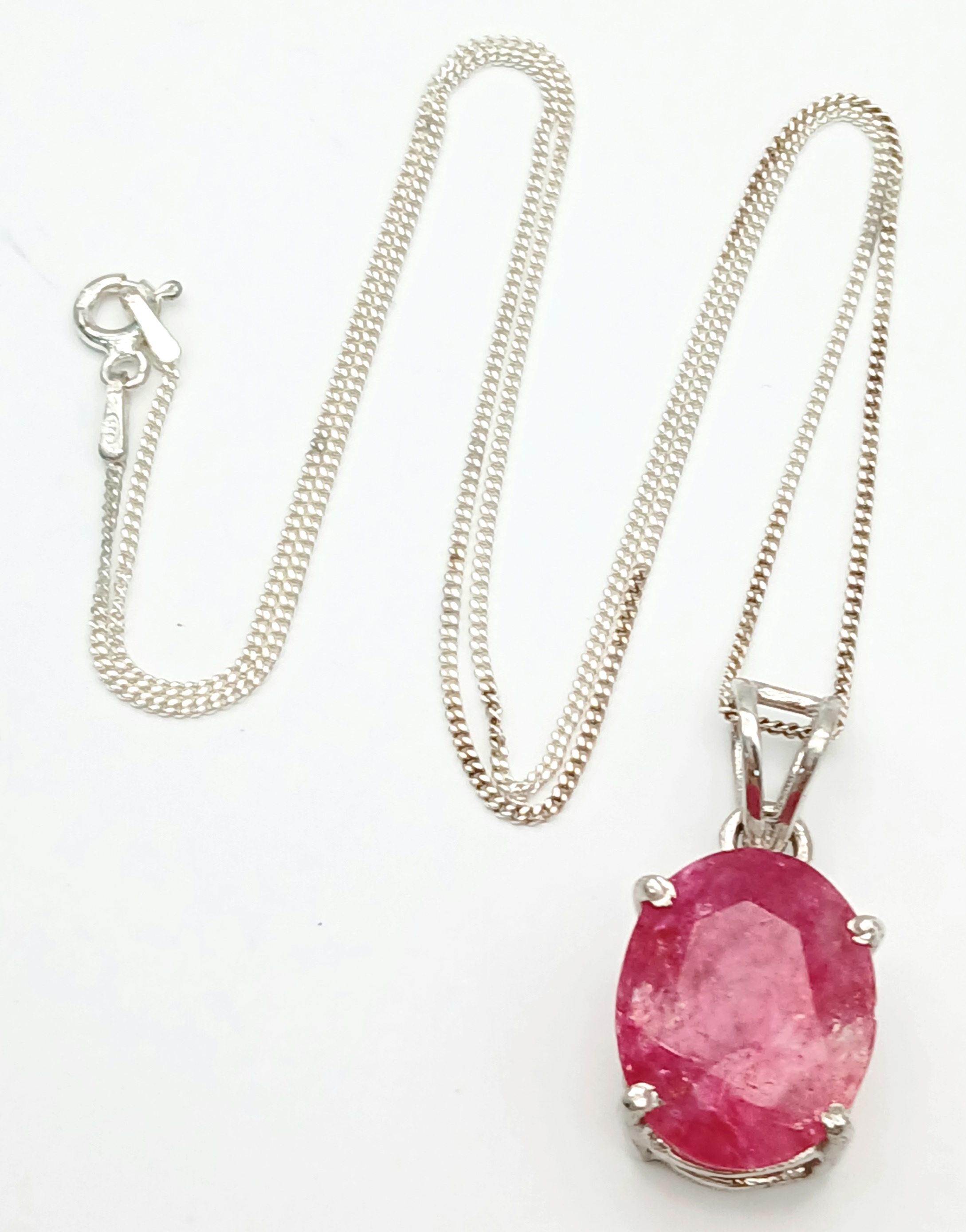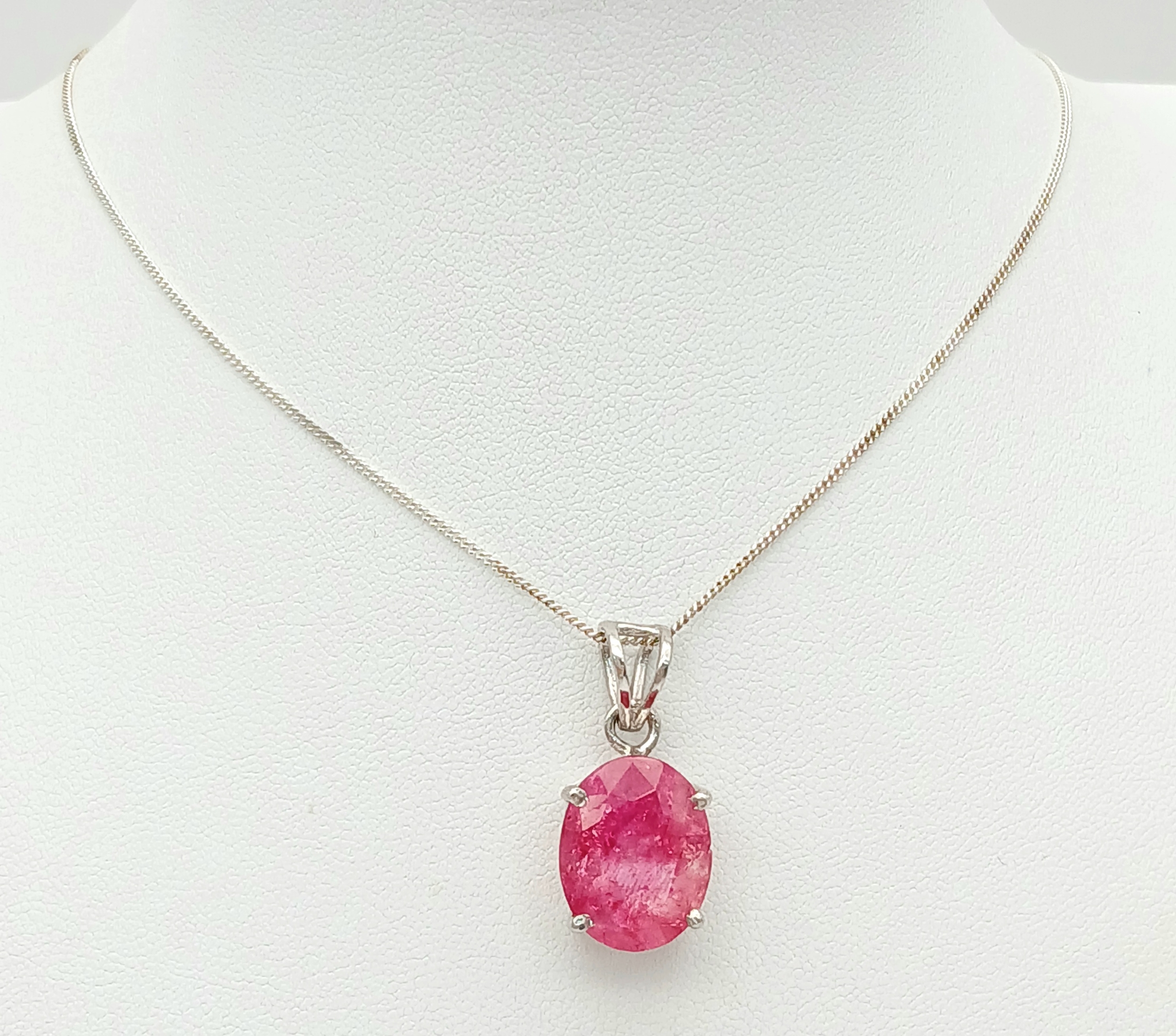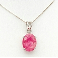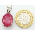 A Certificated Sterling Silver and 11 Carat Ruby Pendant Necklace-46cm Length Chain. The Pendant is set with a 15 x 12 x 8mm Oval Cut Ruby. Gross Weight 5.71 Grams. Comes with a Certificate of Authenticity.