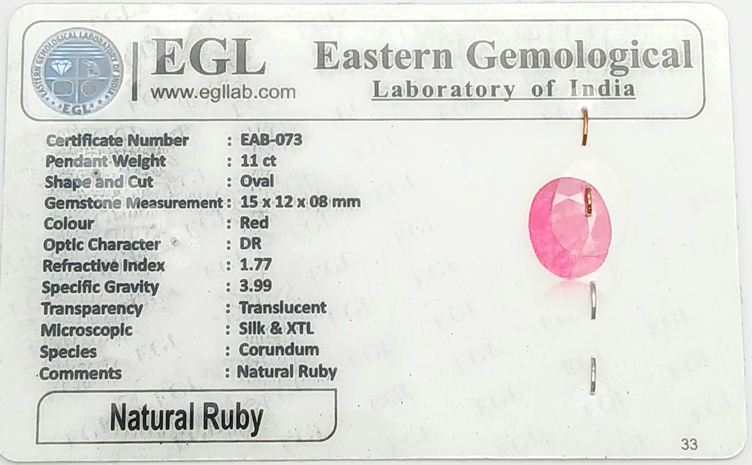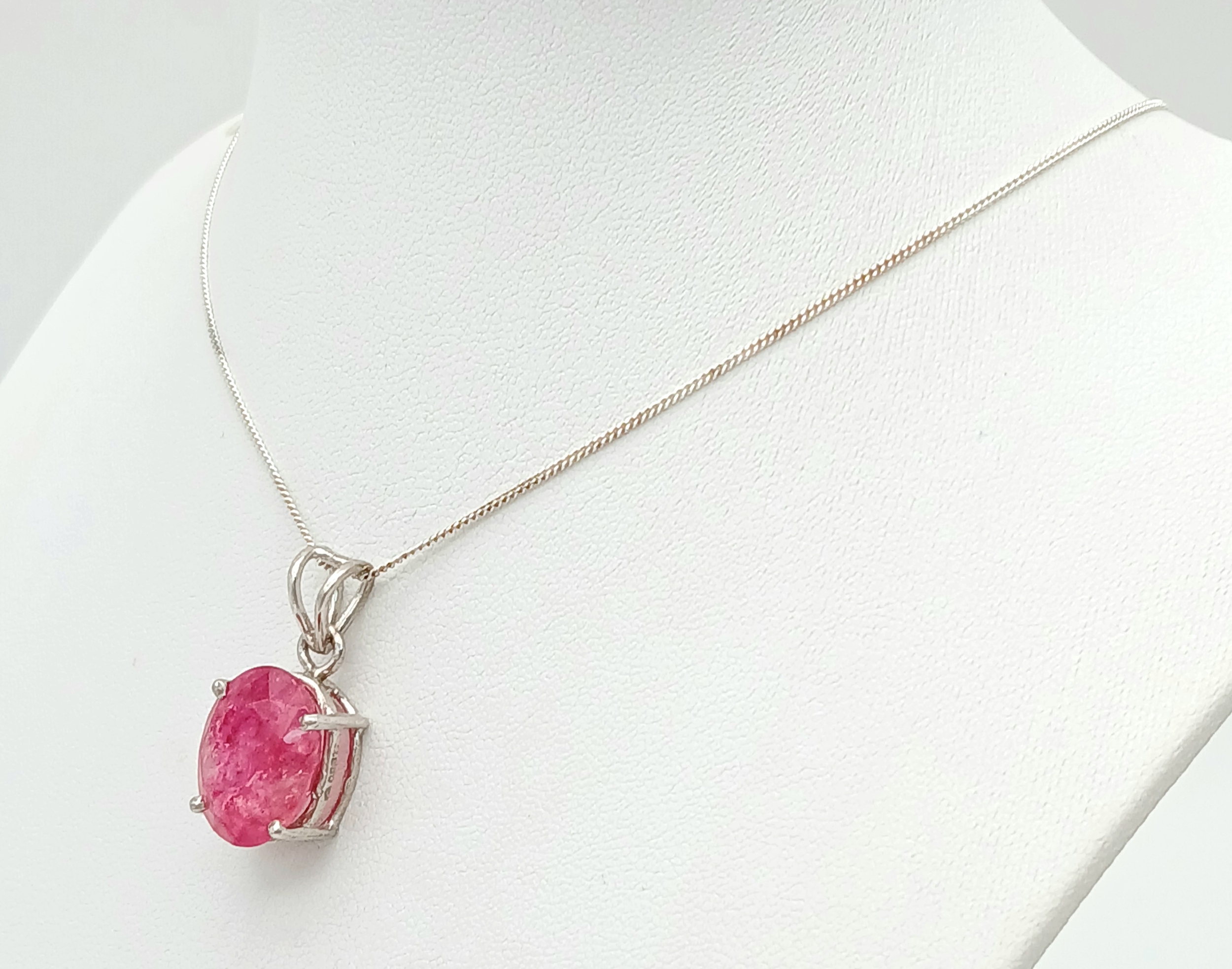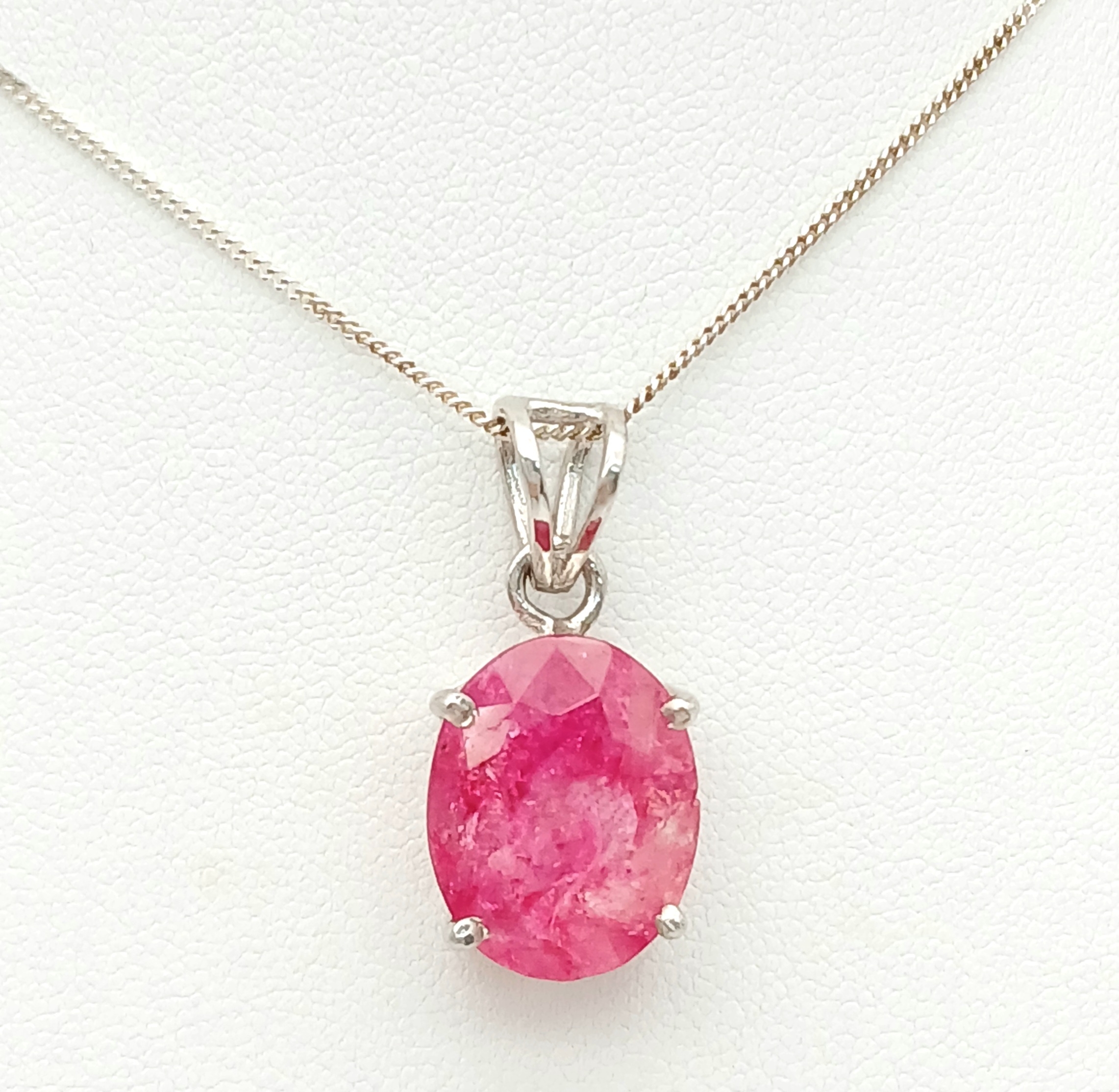 A Certificated Sterling Silver and 11 Carat Ruby Pendant Necklace-46cm Length Chain. The Pendant is set with a 15 x 12 x 8mm Oval Cut Ruby. Gross Weight 5.71 Grams. Comes with a Certificate of Authenticity.