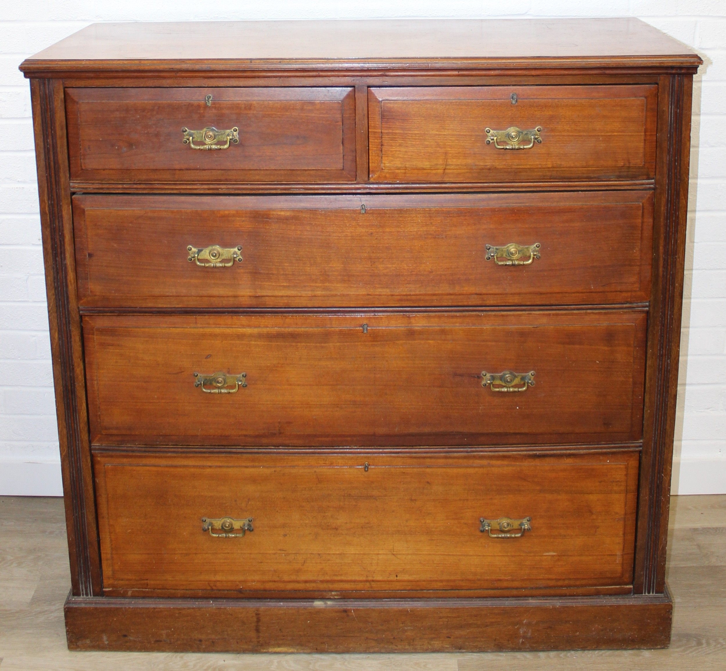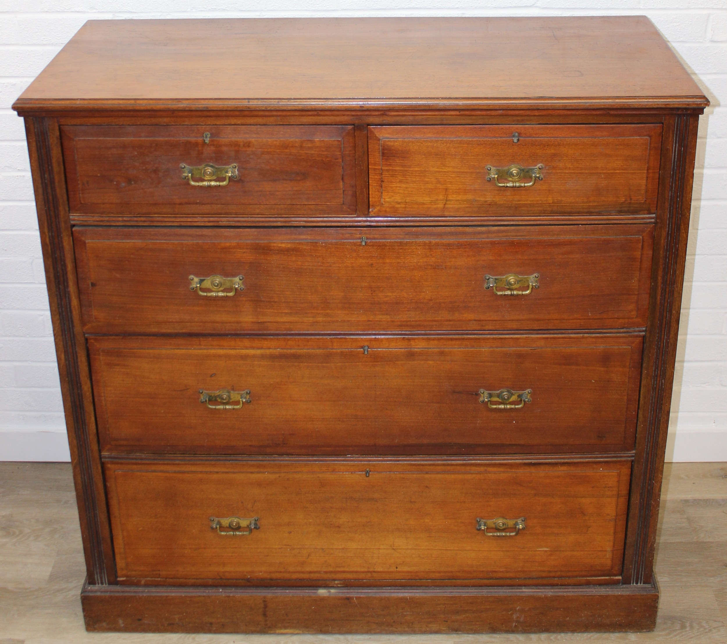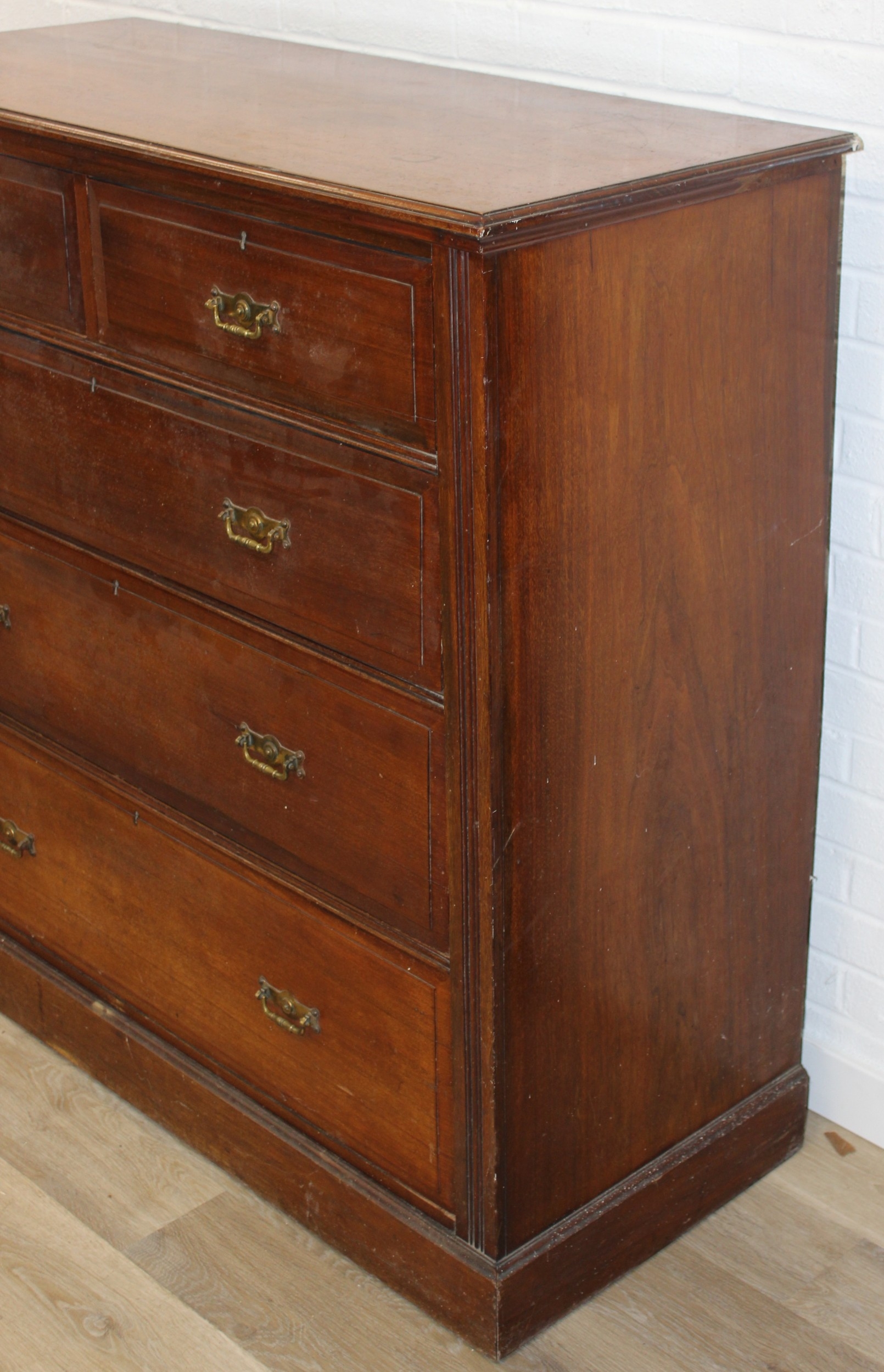 An antique mahogany two over three chest of drawers with brass handles, 121cm x 52cm x 122cm