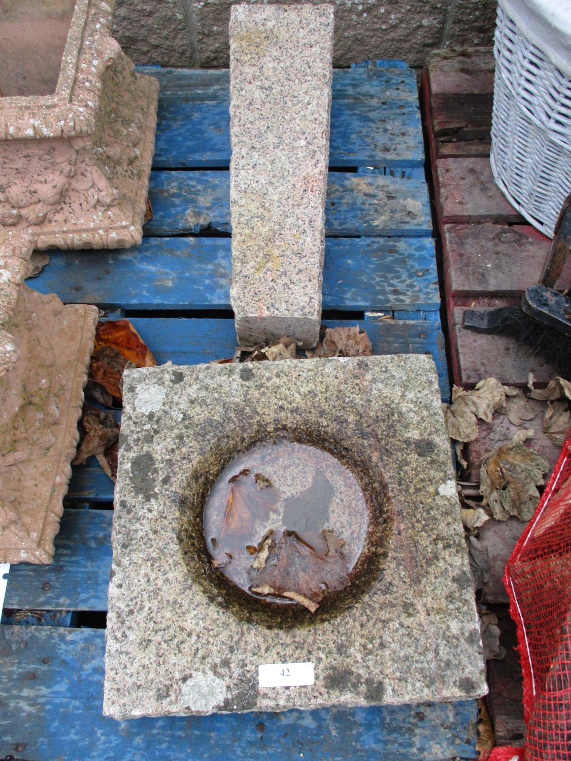 A granite bird bath