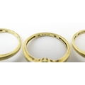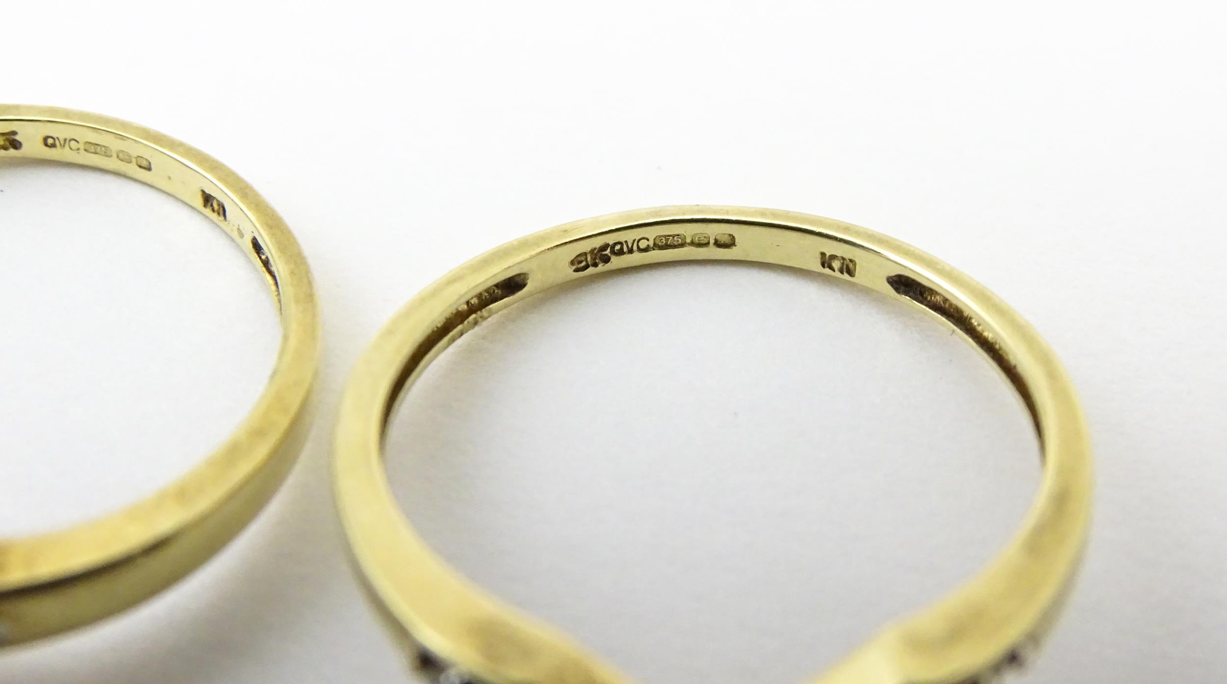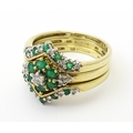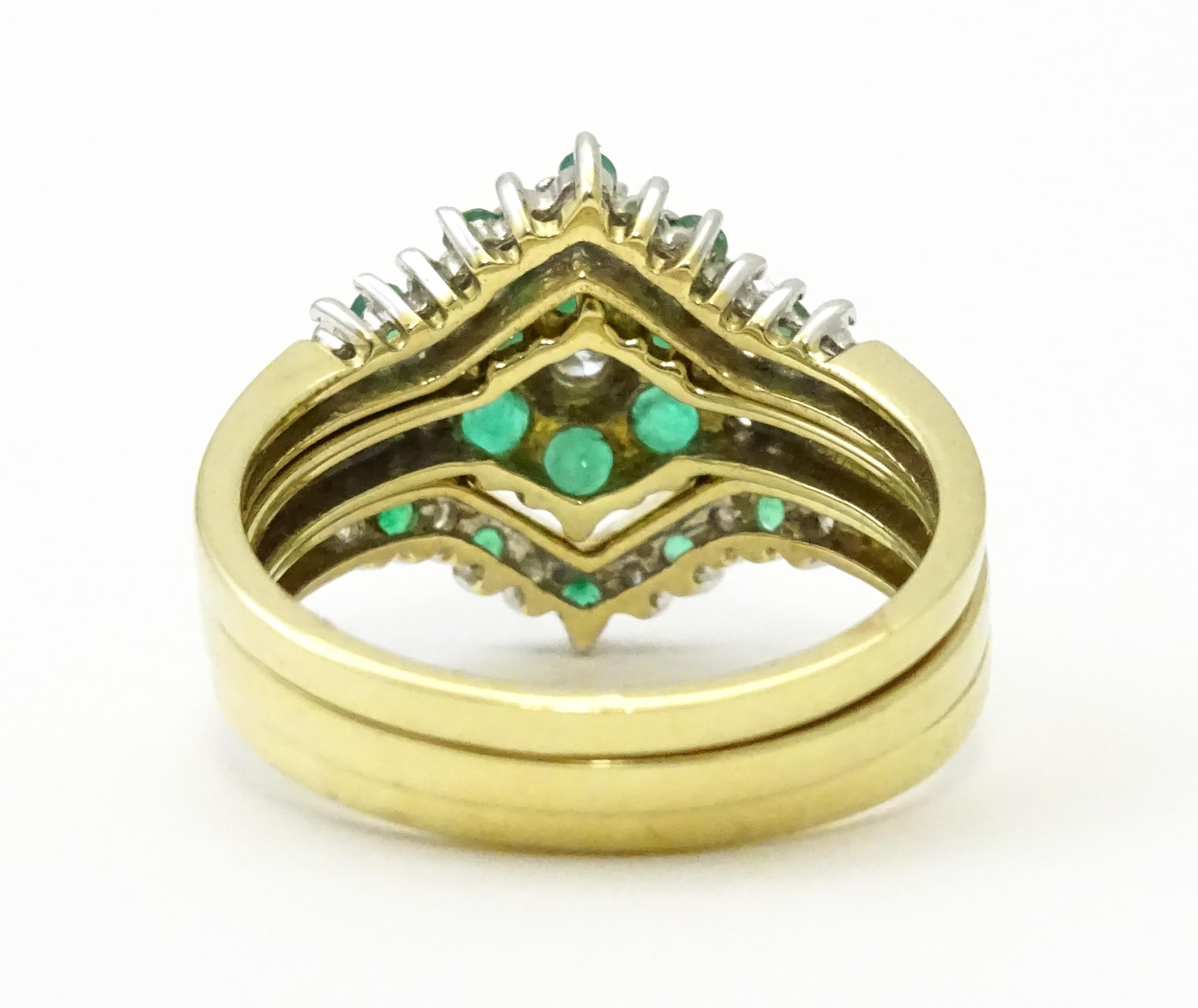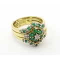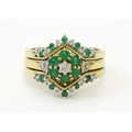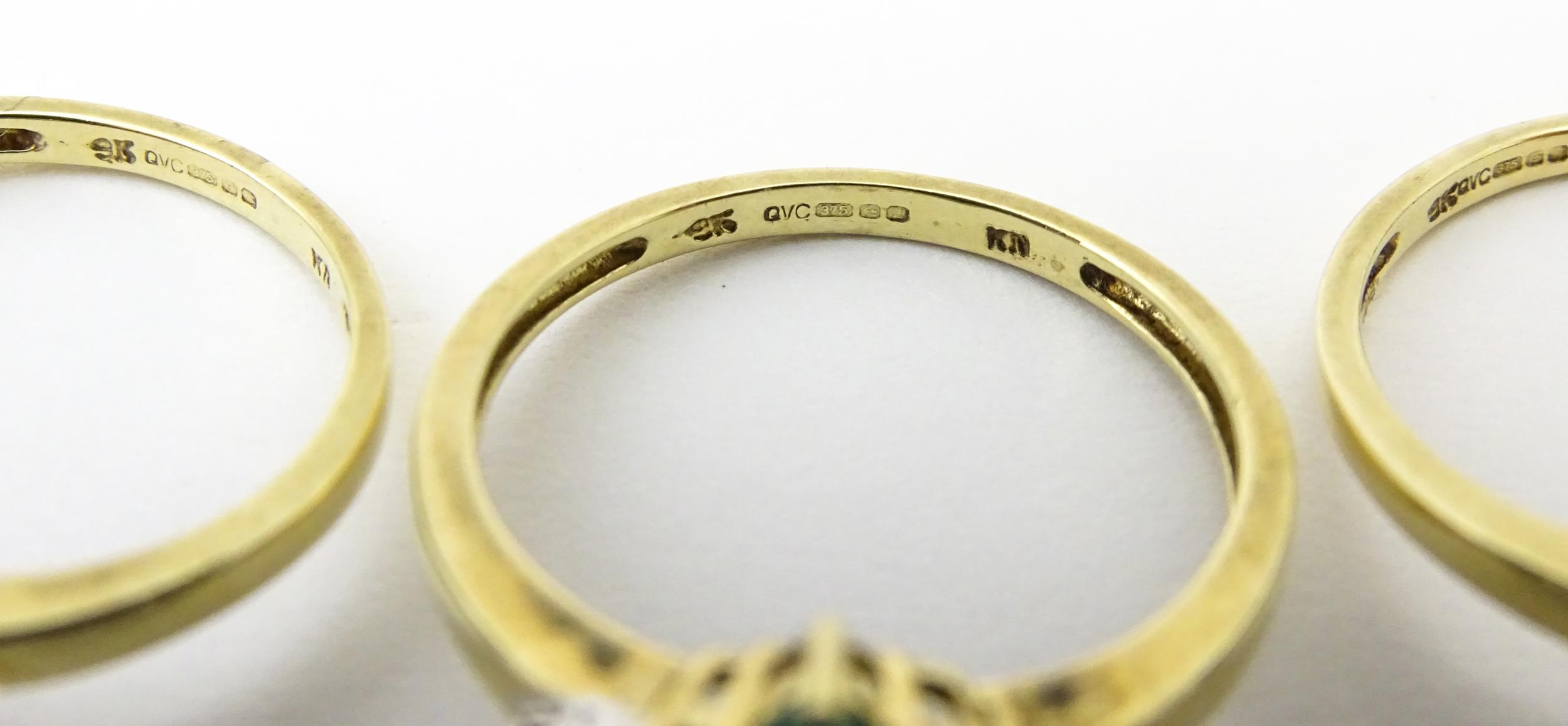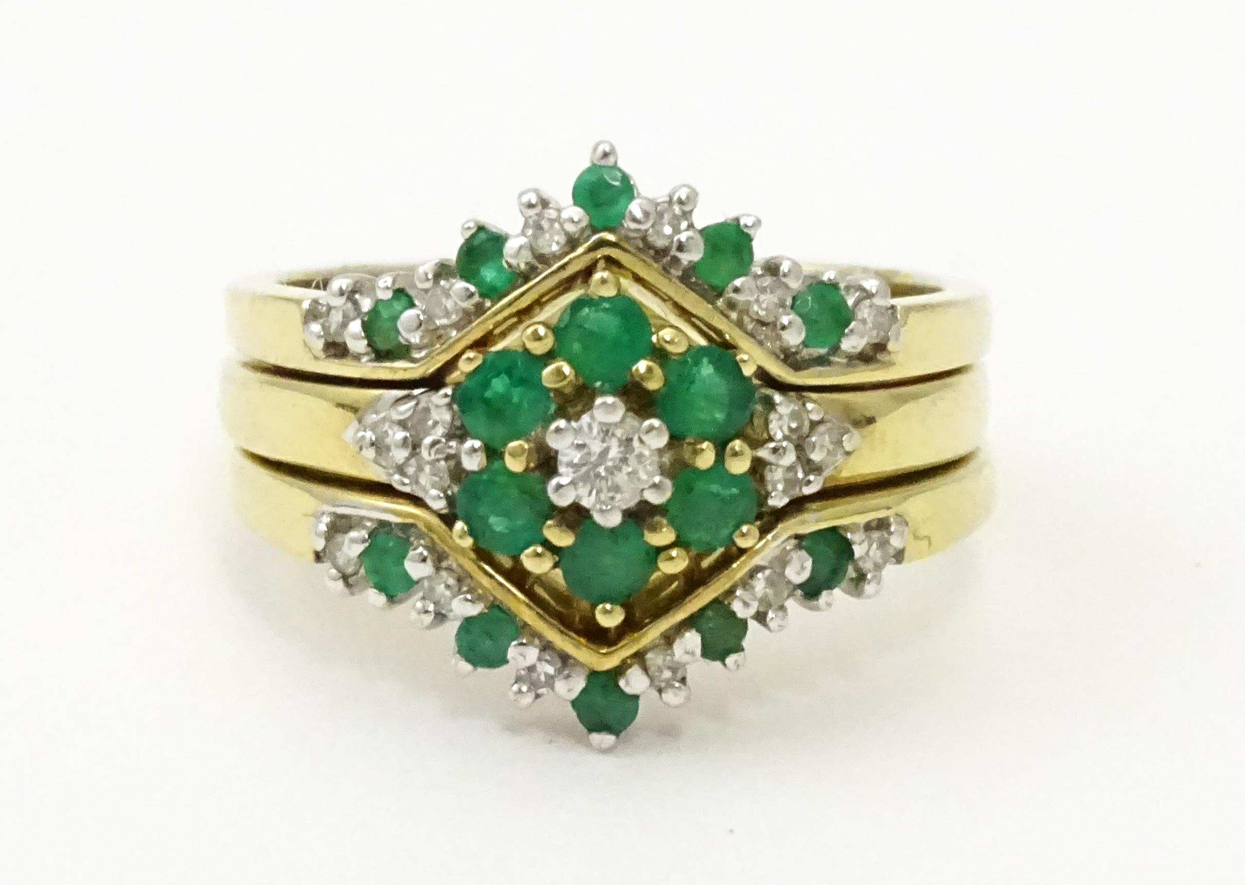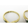 A set of three 9ct gold rings set with emeralds and diamonds. Ring size approx. P (3)