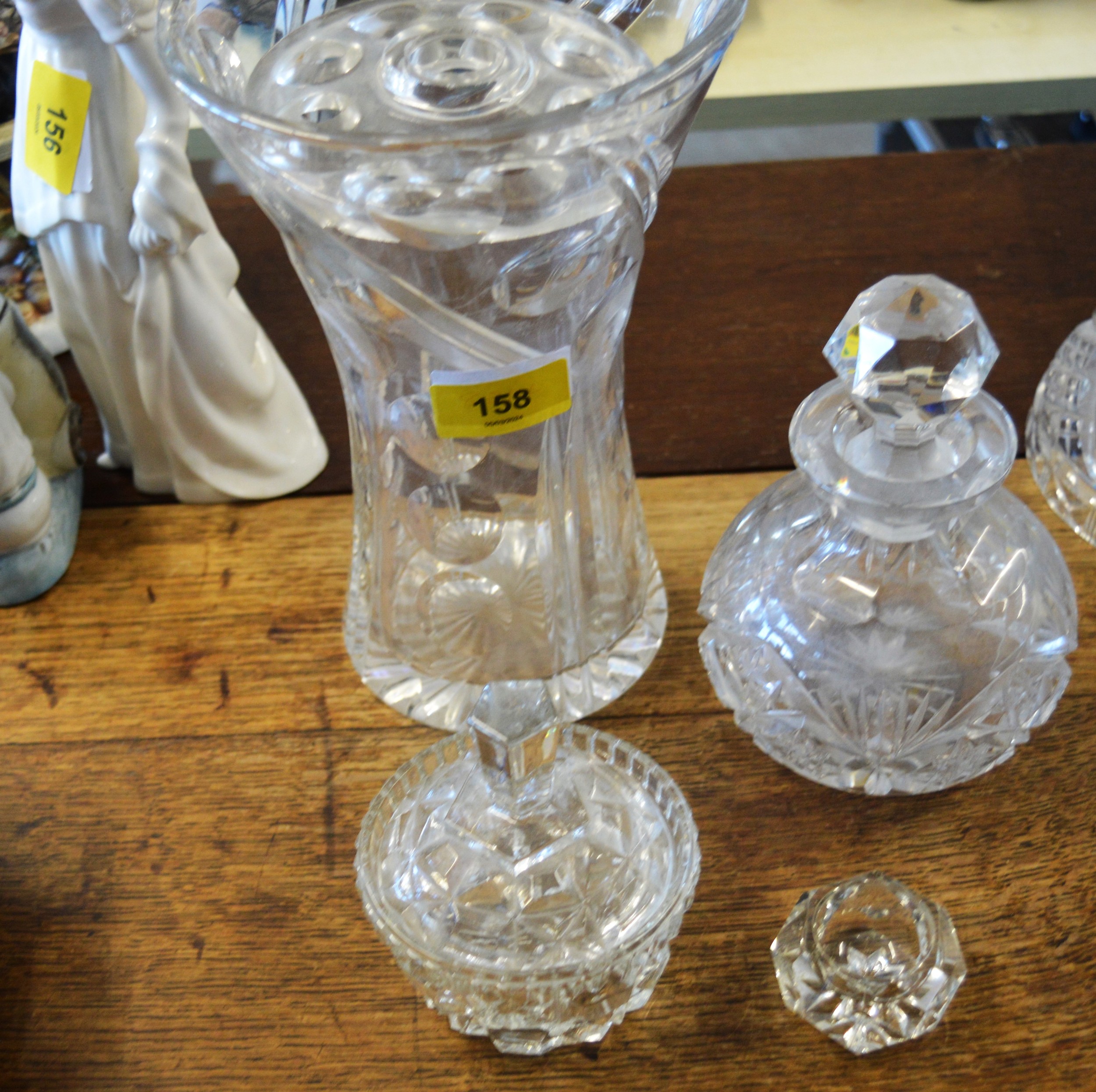 Four Good Quality Crystal/Pressed Glass Items: Vase, Jar wi...