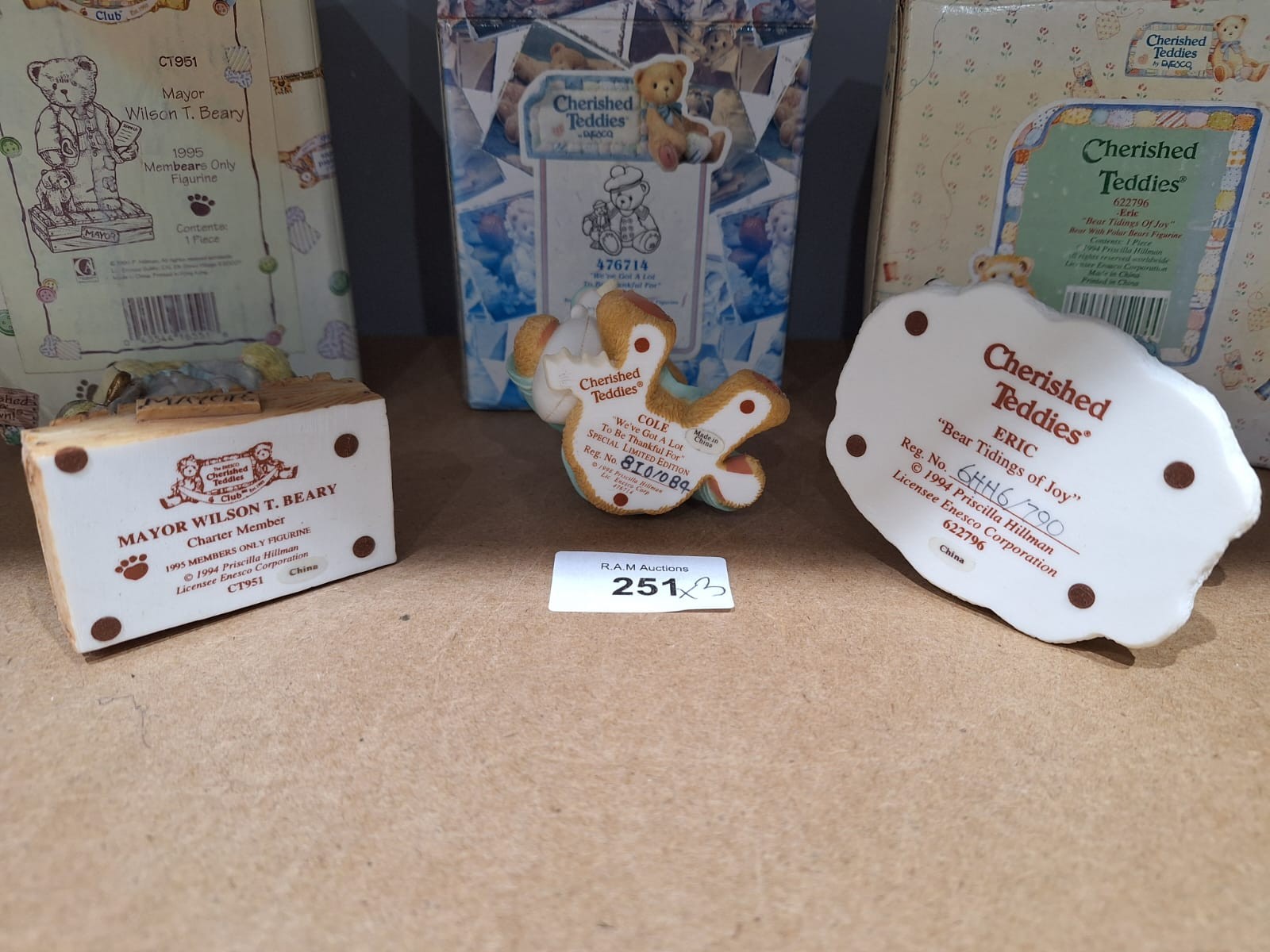 Boxed As New Cherished Teddies x3 With Certificates To Include a Rare Enesco