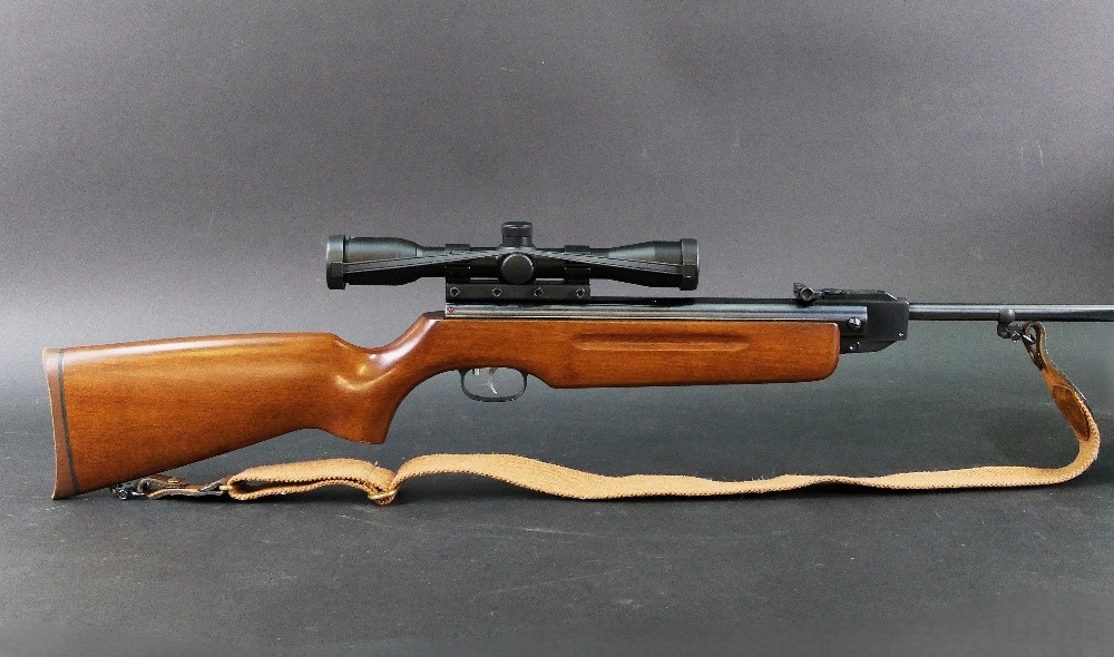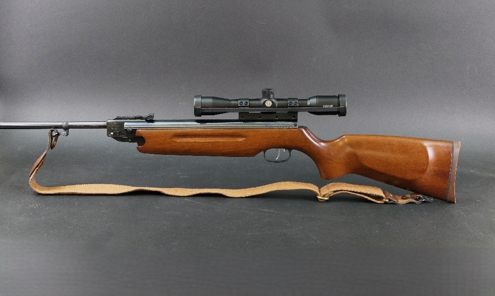 A Weihrauch HW35K break barrel cal 22 air rifle, fitted with a Hawke telescopic sight scope and rifle slip. Serial No. 1855880. WE CANNOT POST AIR GUNS TO PRIVATE ADDRESSES. POSTAGE TO REGISTERED FIREARMS DEALERS ONLY.