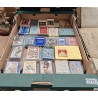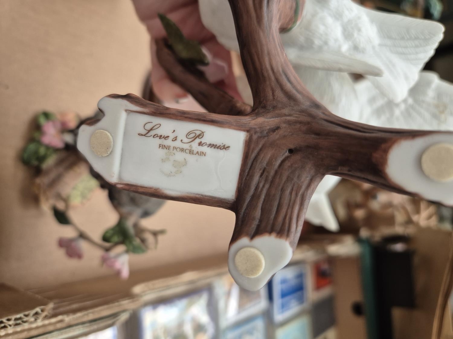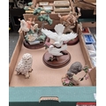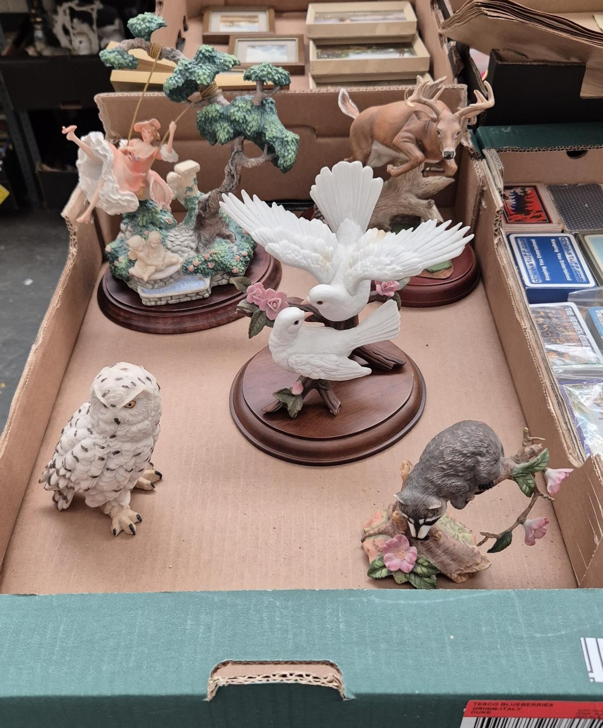 Box containing ornaments including an owl, racoon and Franklin Mint 'Girl On A Swing'
