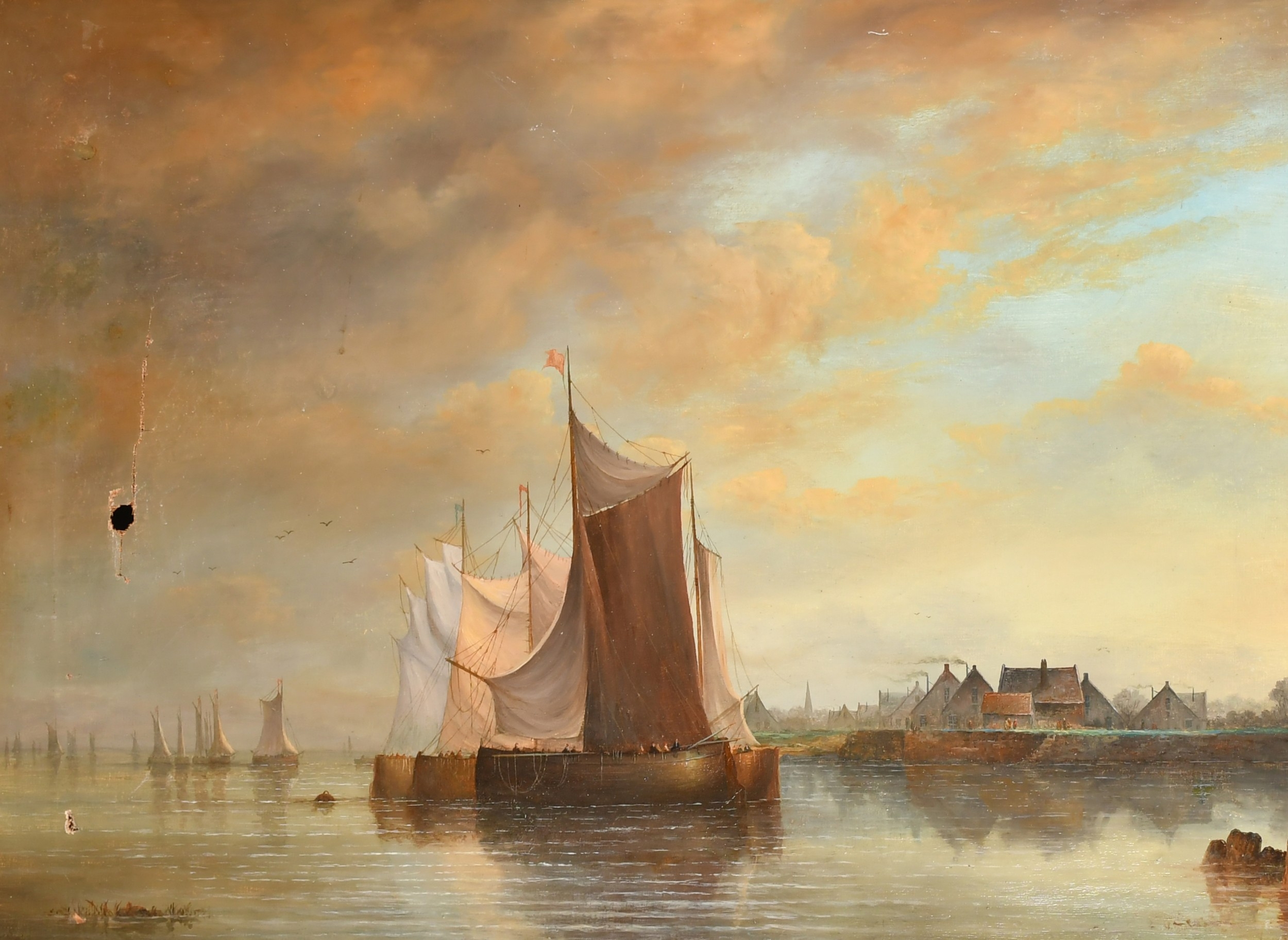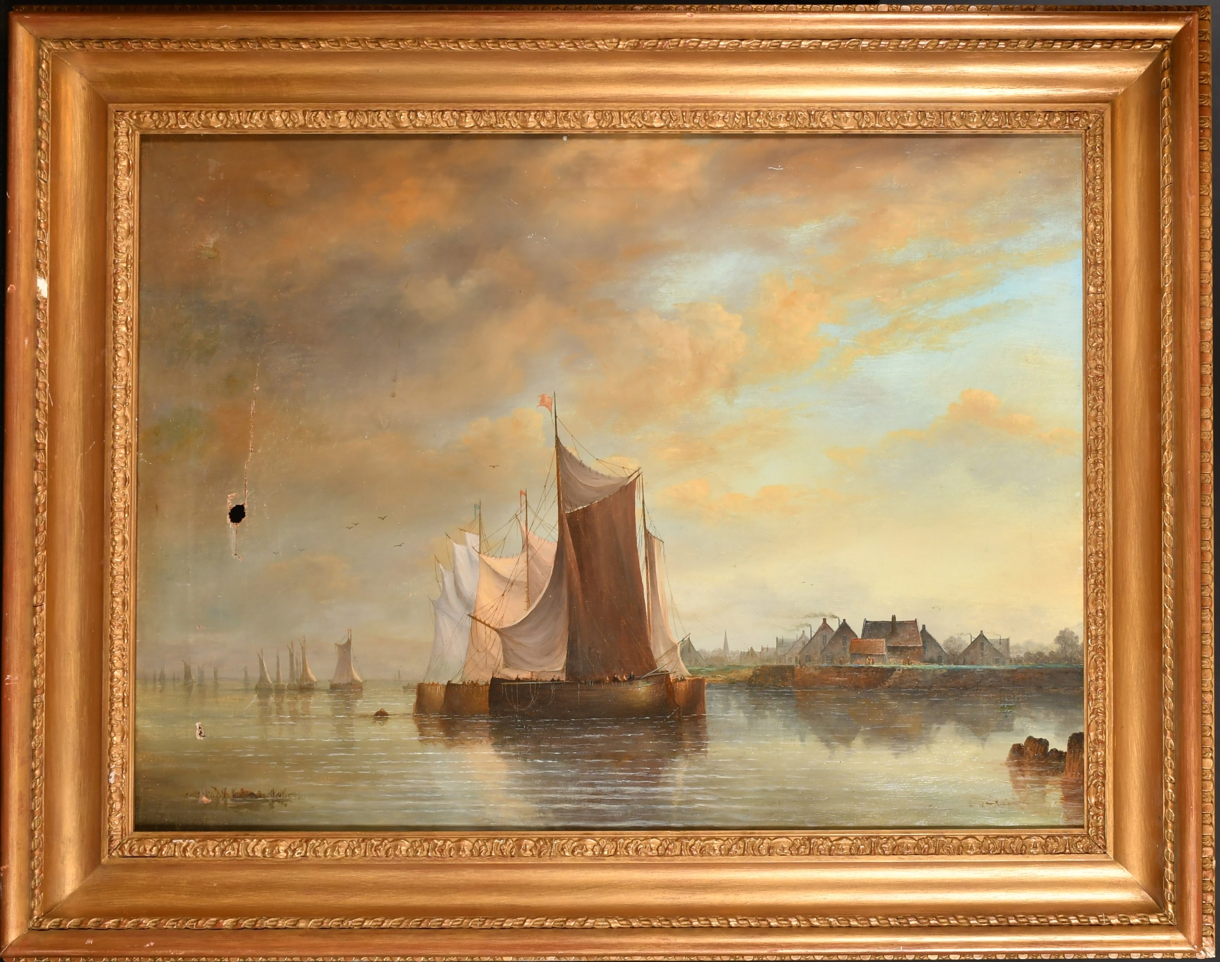 Circle of J J Everard (act.1845-1887) British. Sailing Boats off the Coast, Oil on canvas, 20" x 27" (50.8 x 68.6cm)