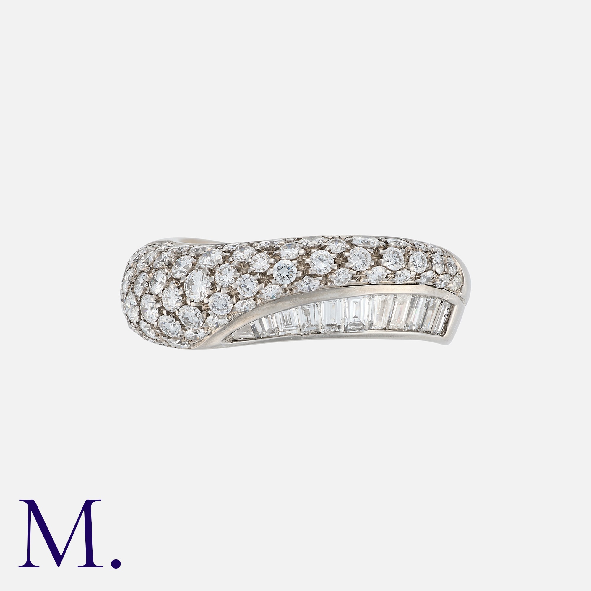 BOUCHERON. A Diamond Band in 18K white gold, set with round-cut and baguette-cut diamonds weighing approx. 1.5ct. Signed Boucheron and serial numbered. Marks for 18ct gold.
